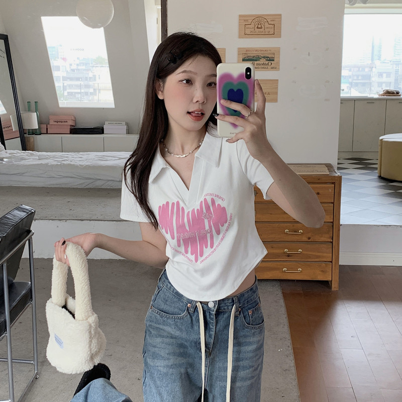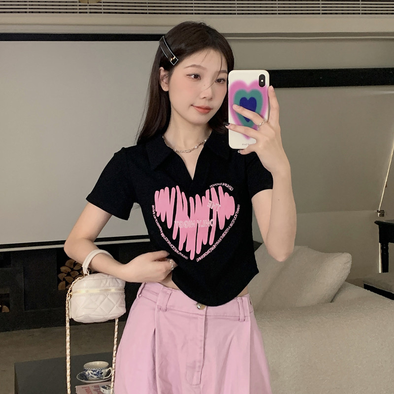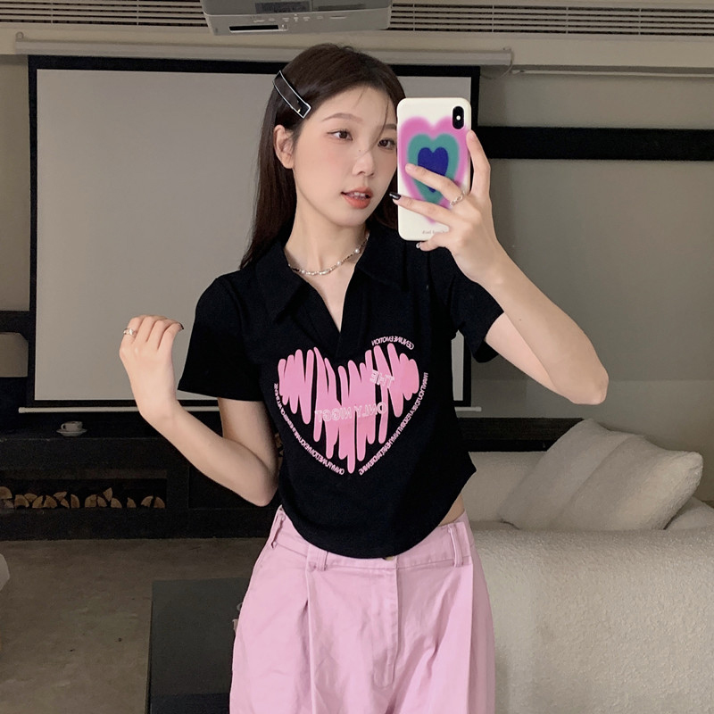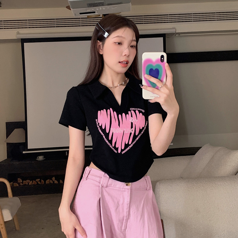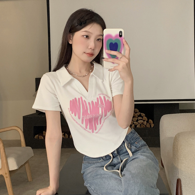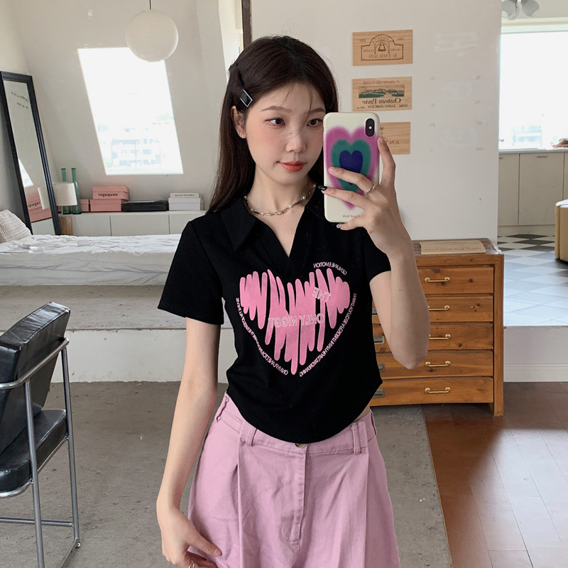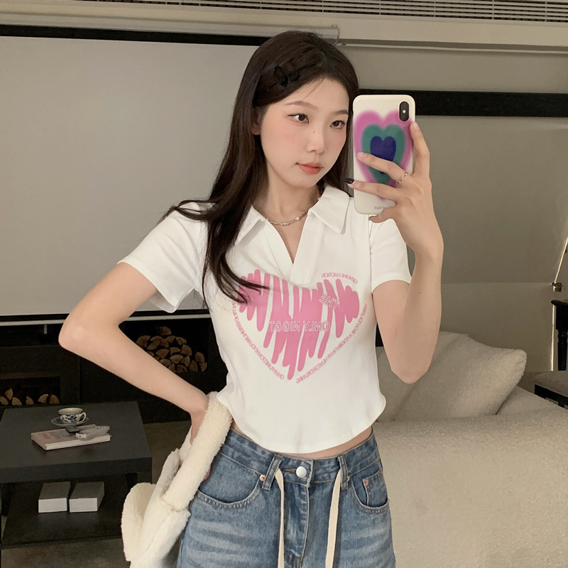 MY16979# 32支95棉5氨纶 polo领正肩短袖t恤女夏季女裝貨源服裝批發