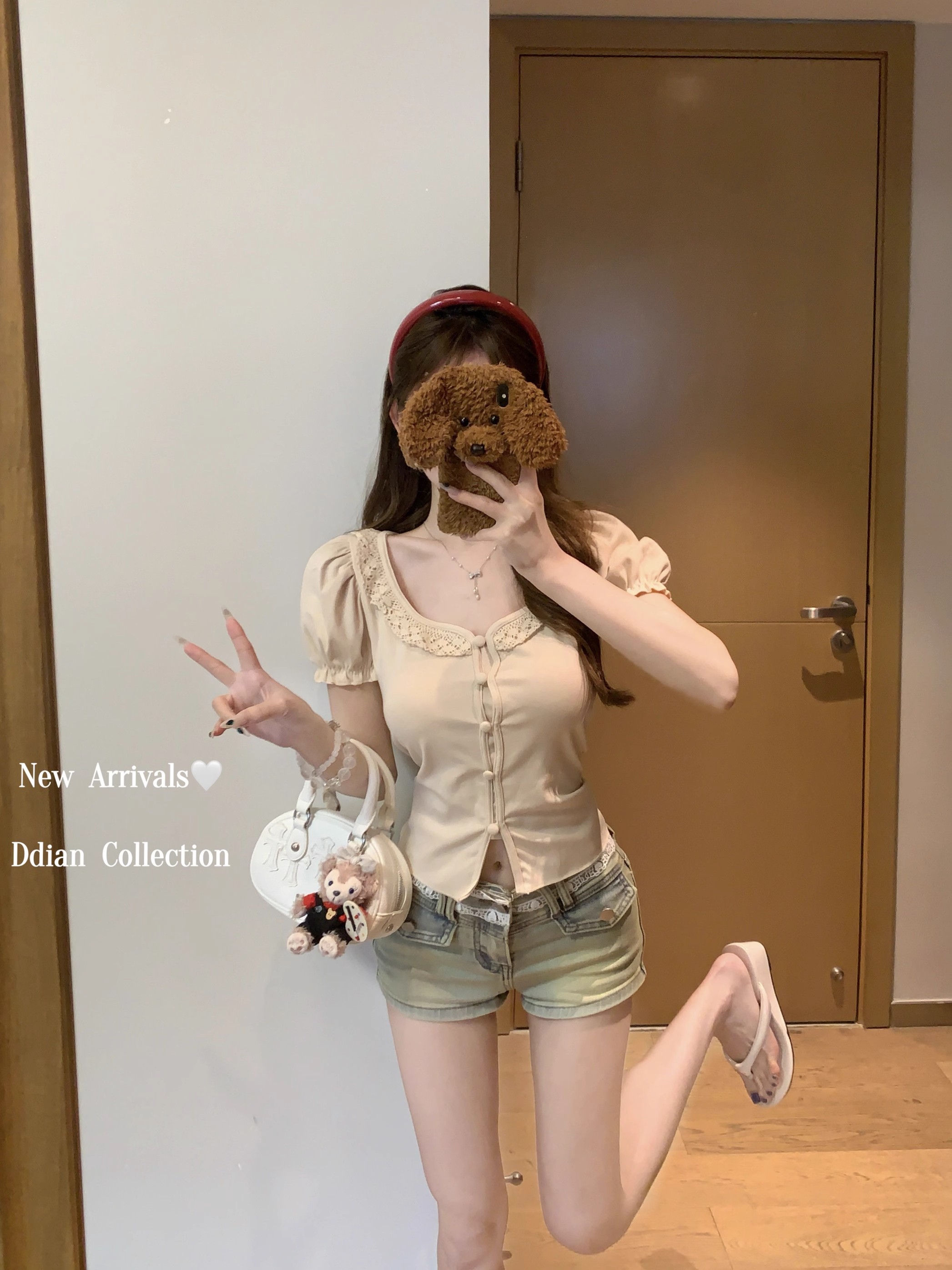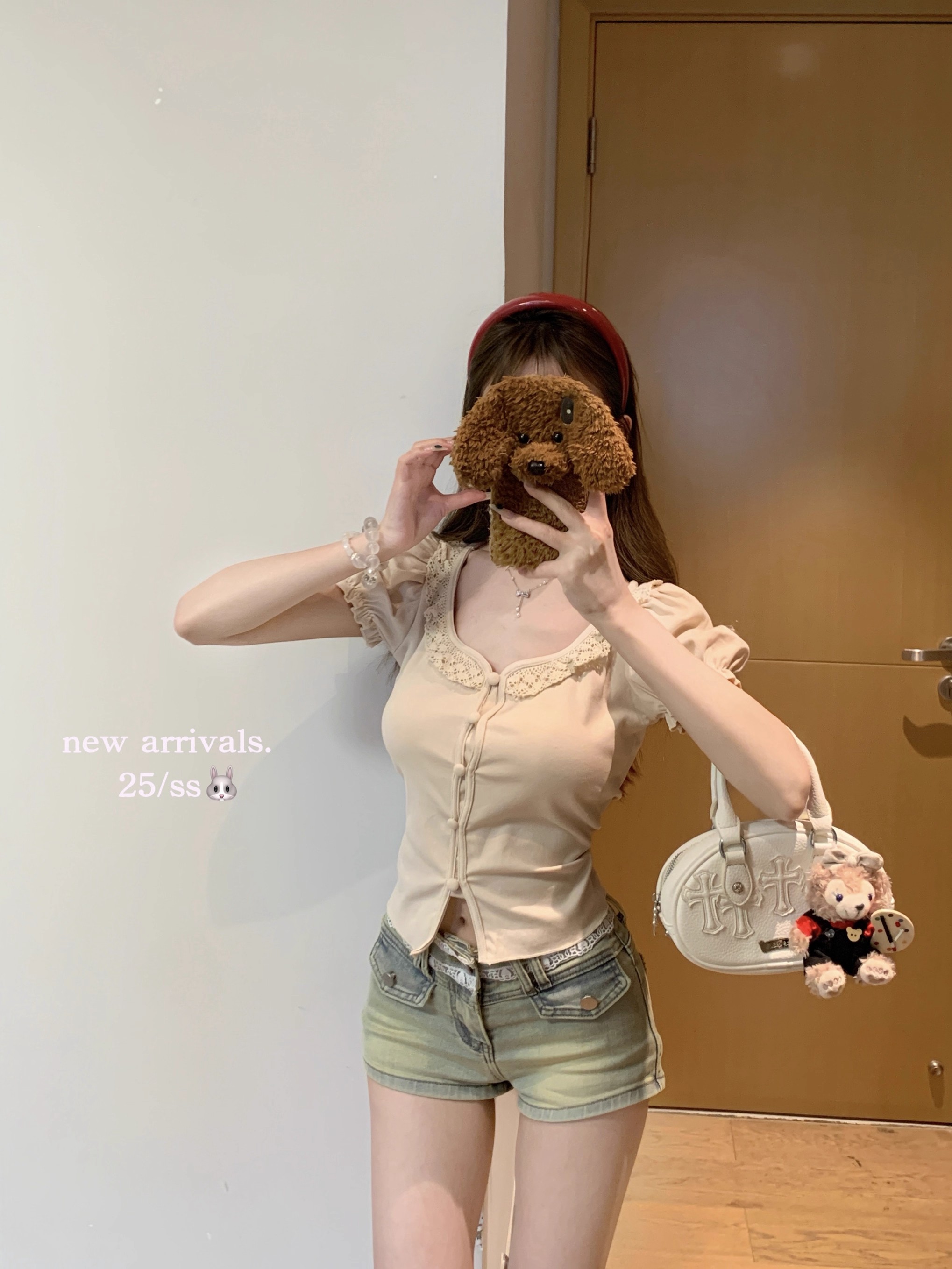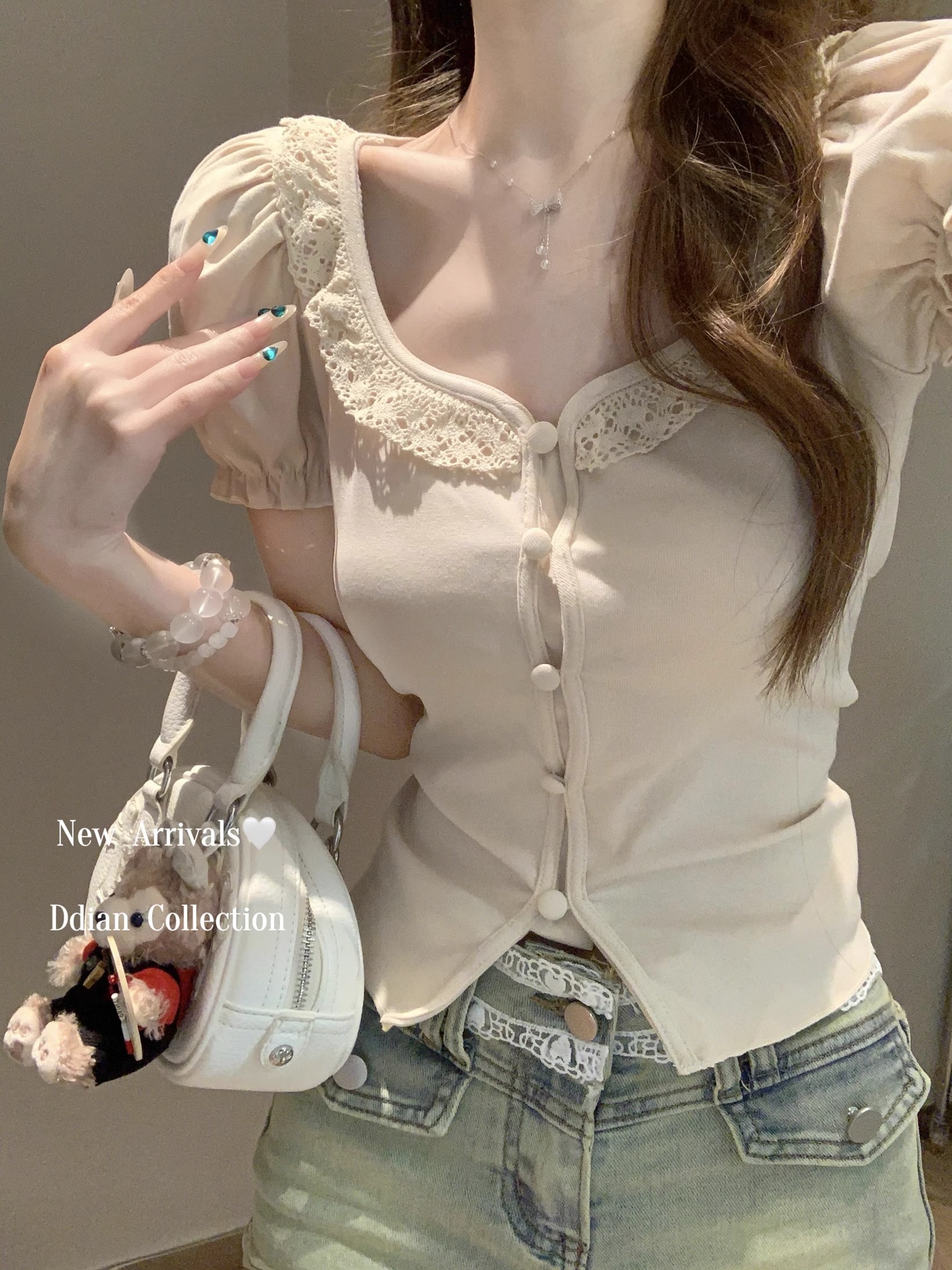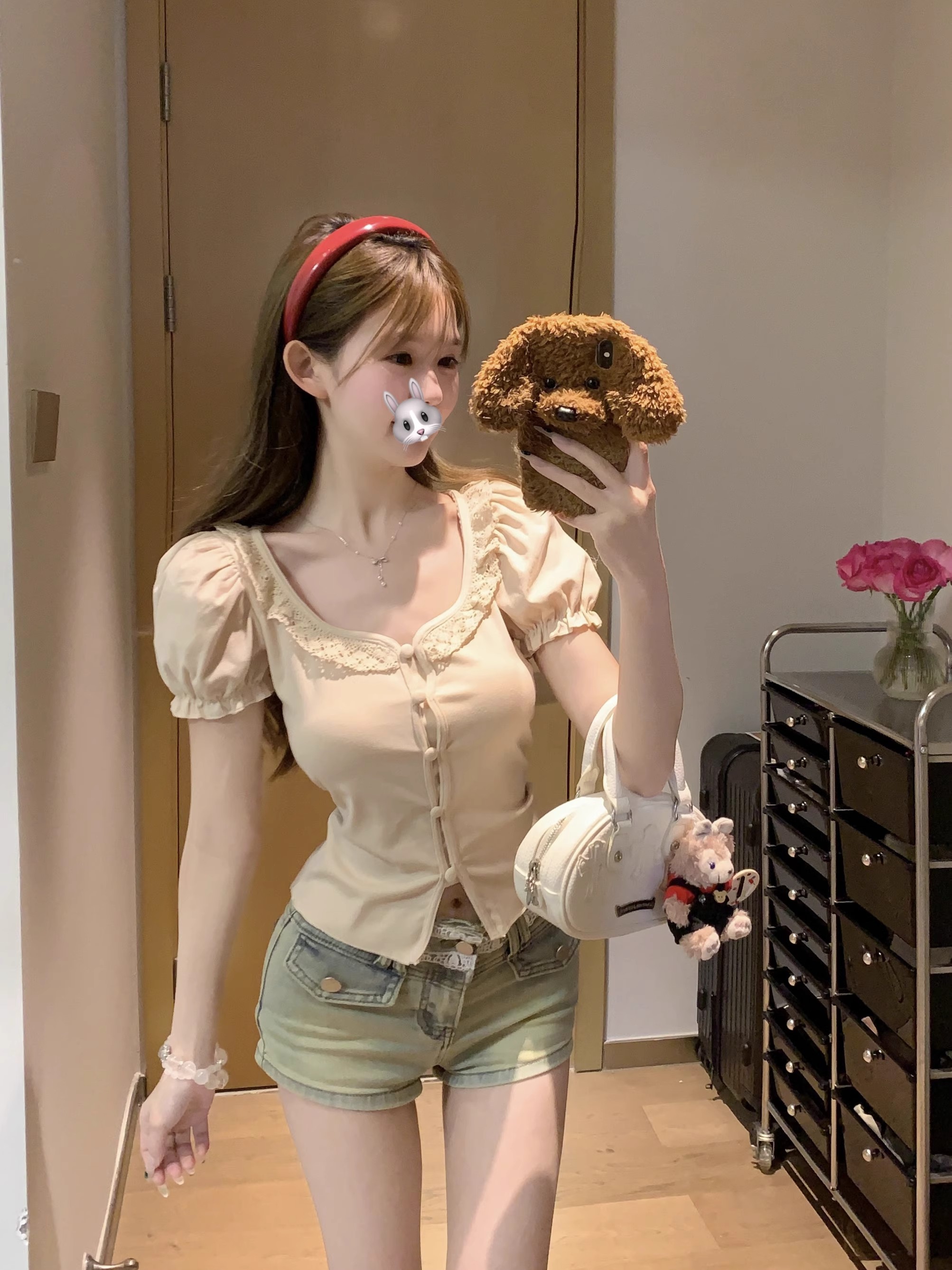 MY16982# 蕾丝拼接短袖T恤女正肩短款上衣女裝貨源服裝批發