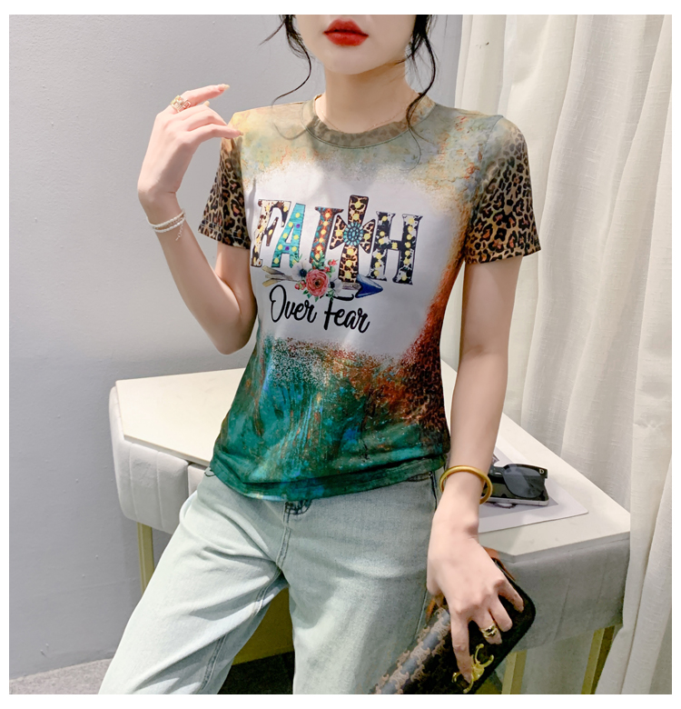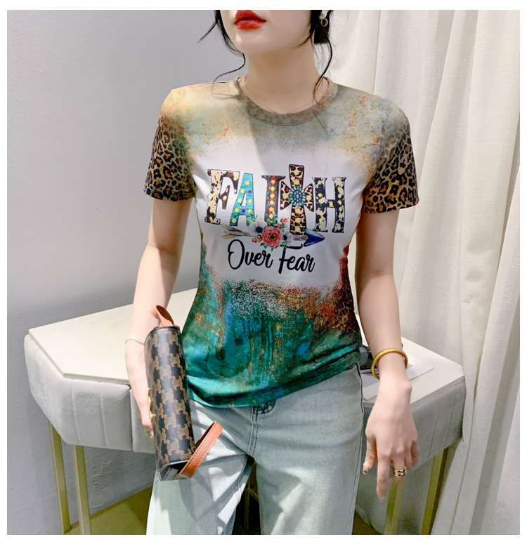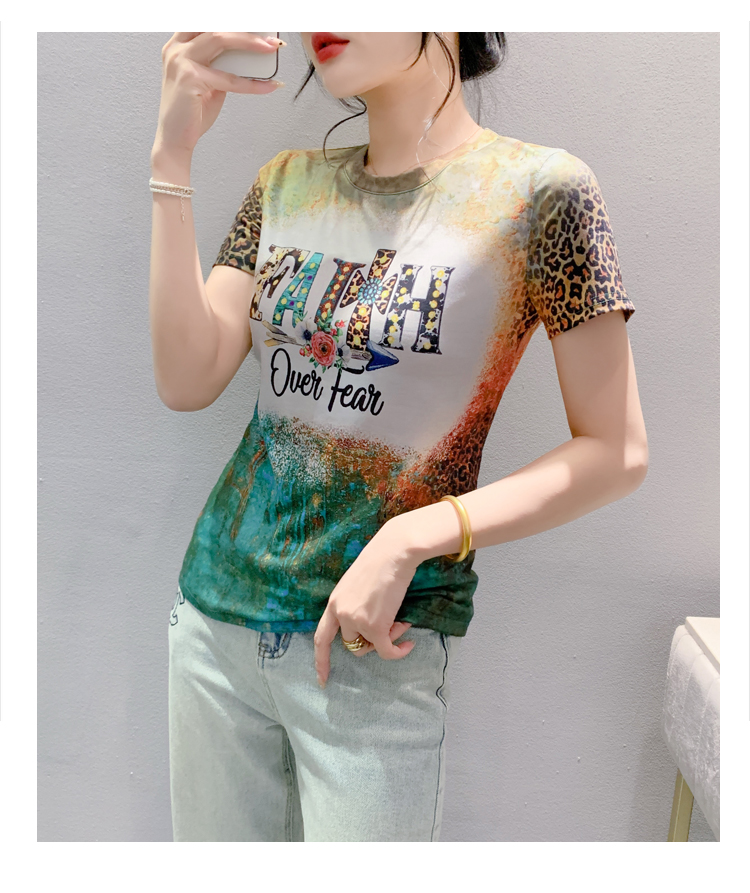 MY16989# 新款时尚定位印花字母短袖T恤打底衫修身上衣女女裝貨源服裝批發