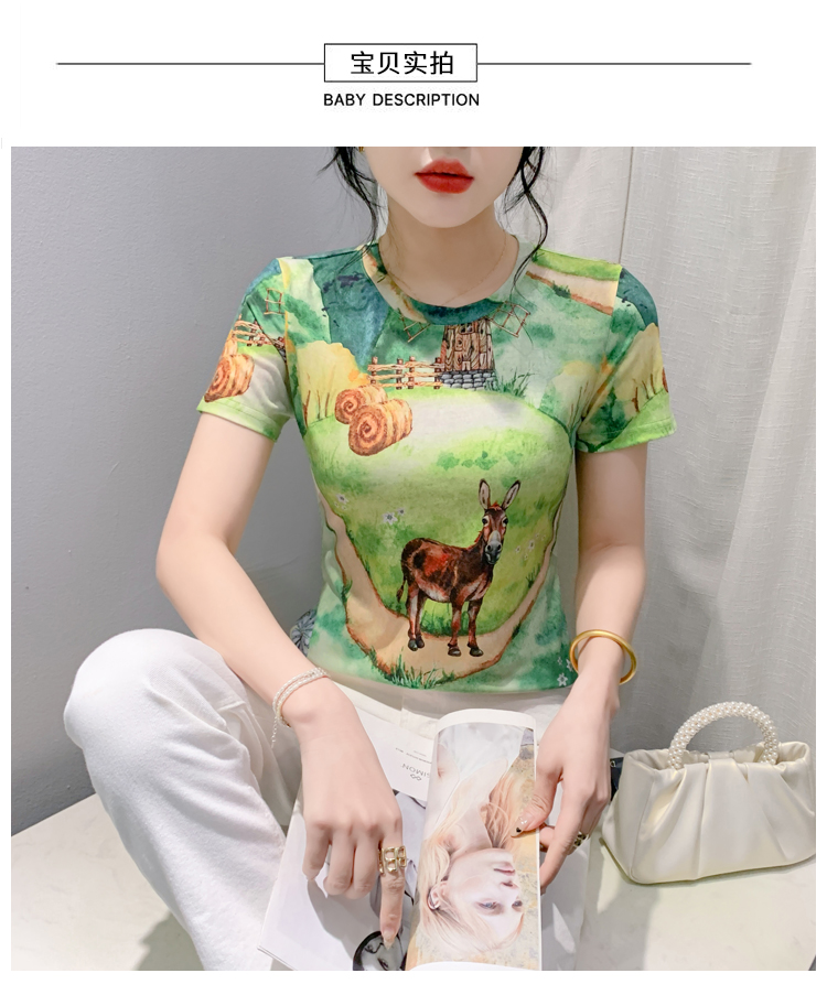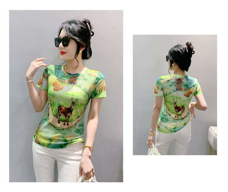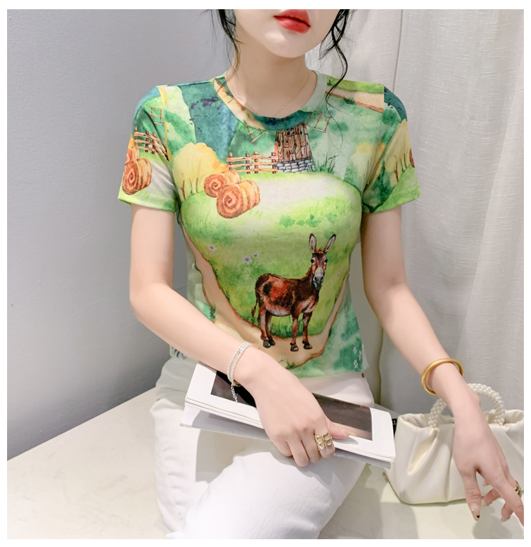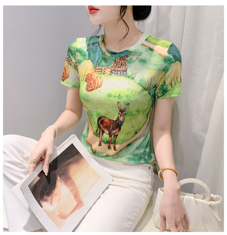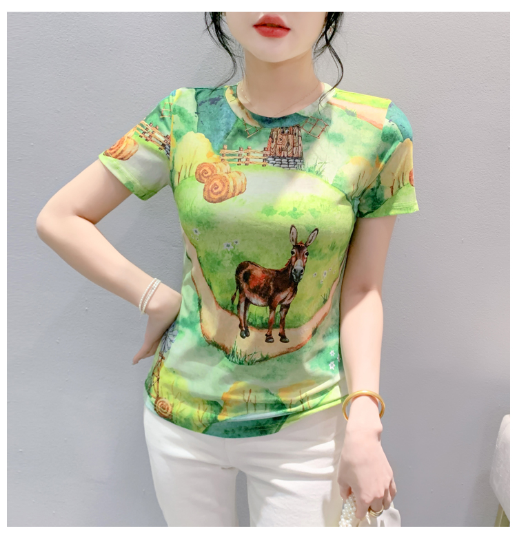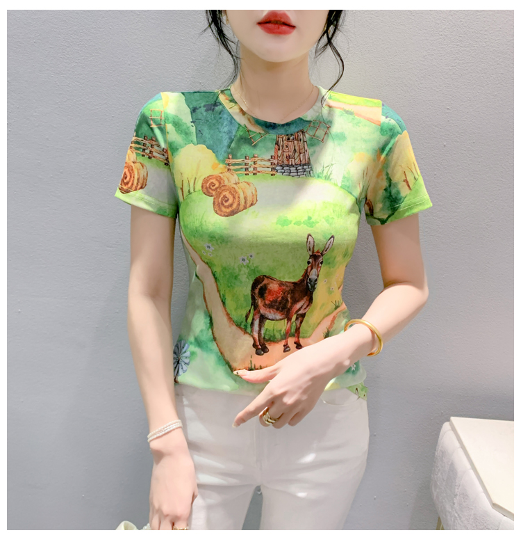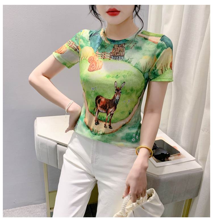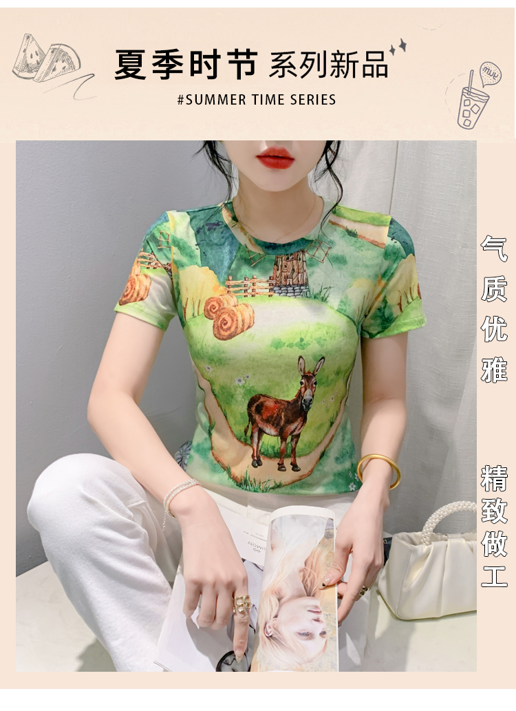 MY16992# 新款时尚定位印花短袖T恤打底衫修身上衣女女裝貨源服裝批發