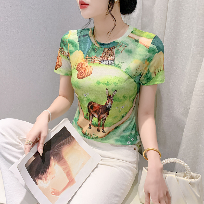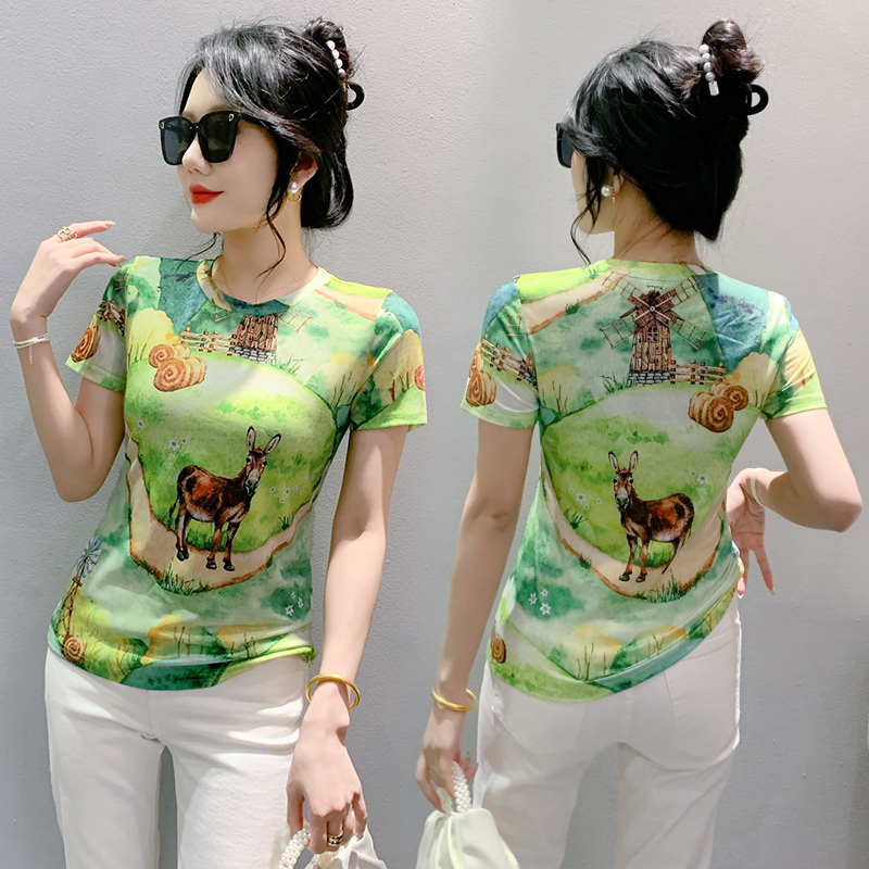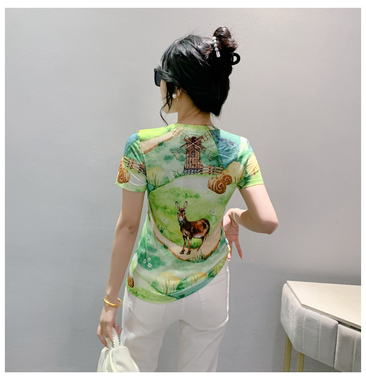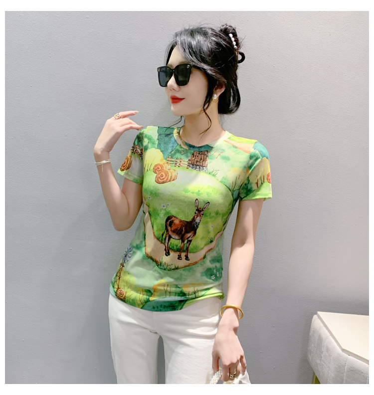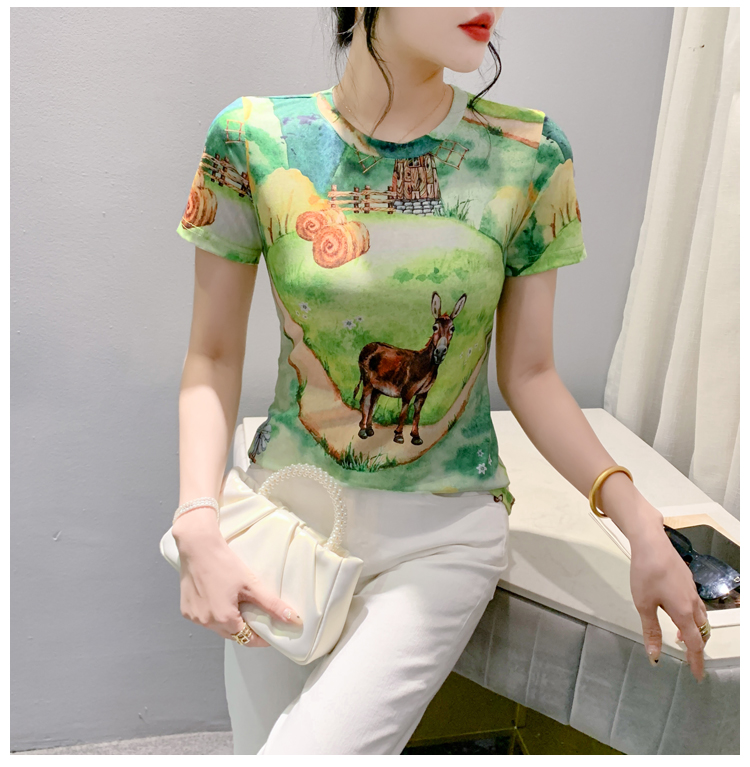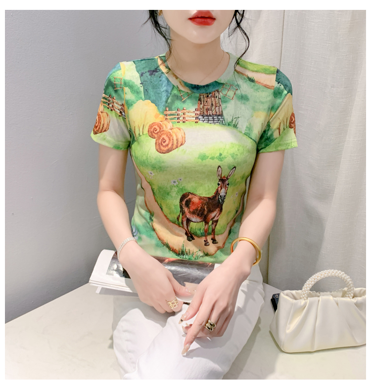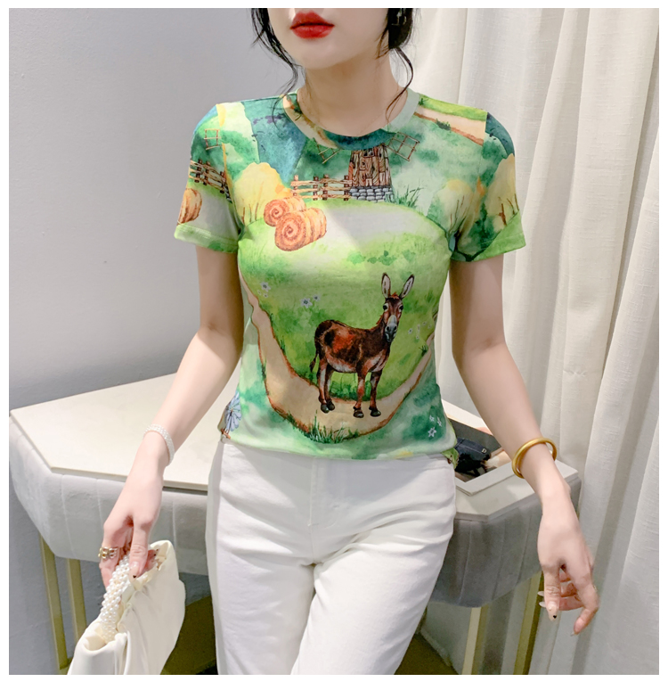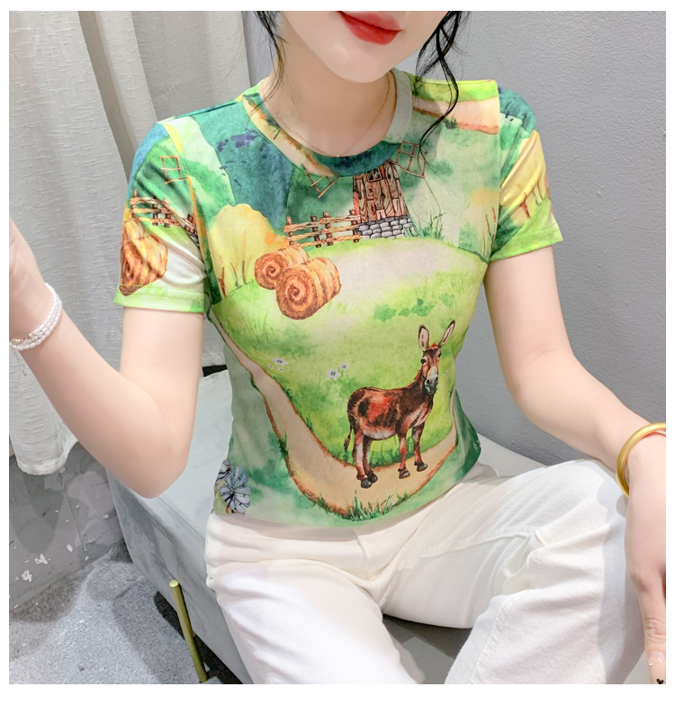 MY16992# 新款时尚定位印花短袖T恤打底衫修身上衣女女裝貨源服裝批發