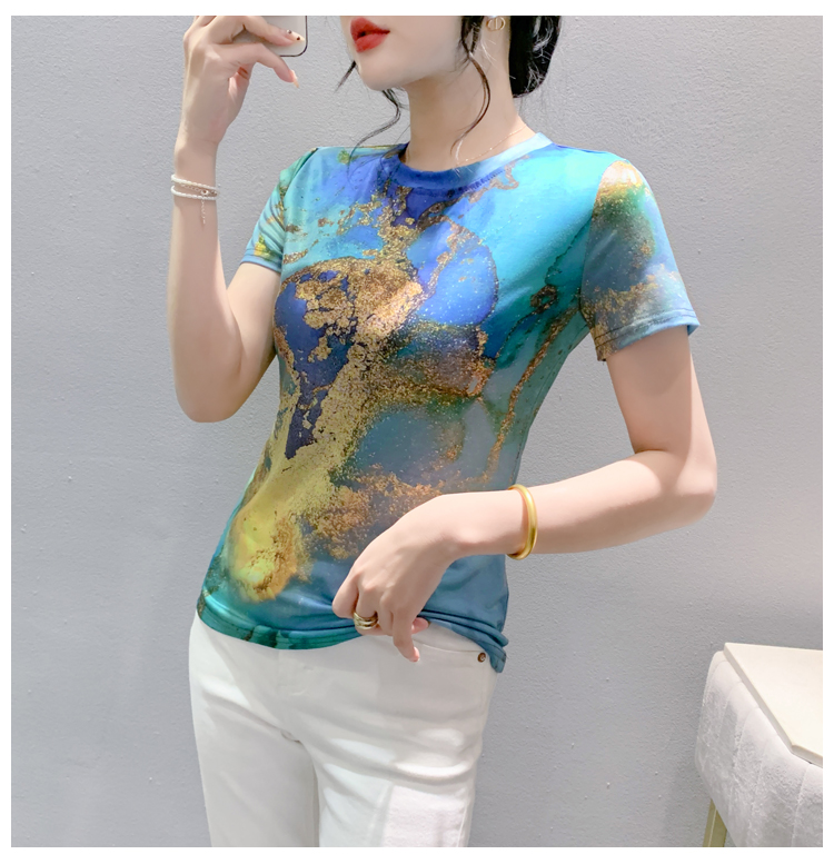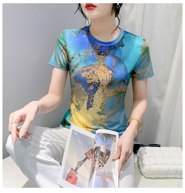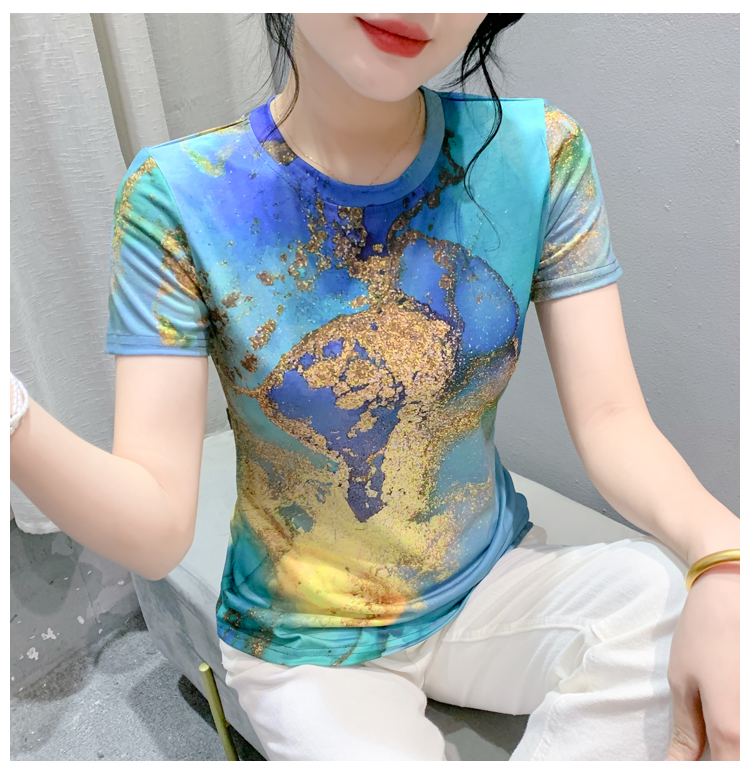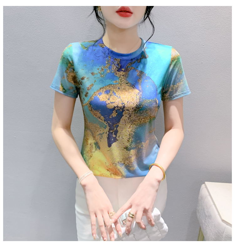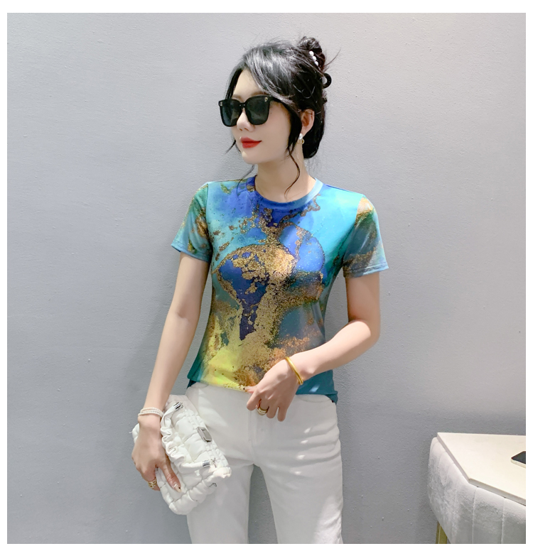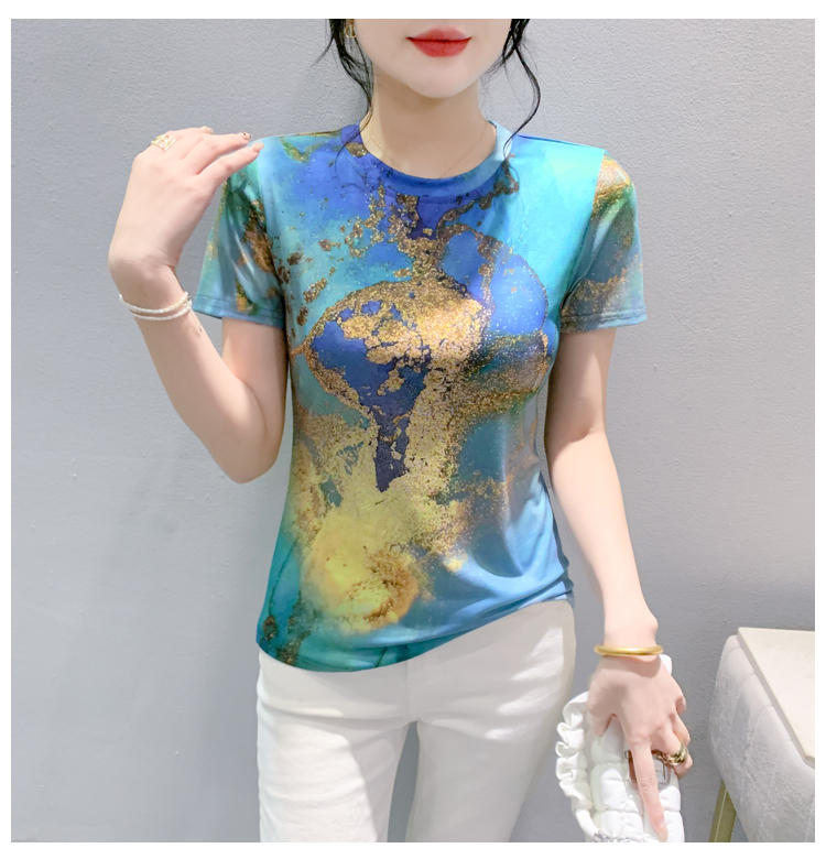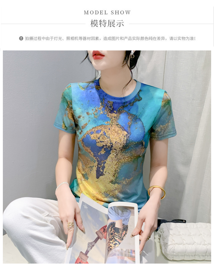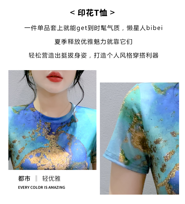 MY16995# 新款时尚定位印花短袖T恤打底衫修身上衣女女裝貨源服裝批發