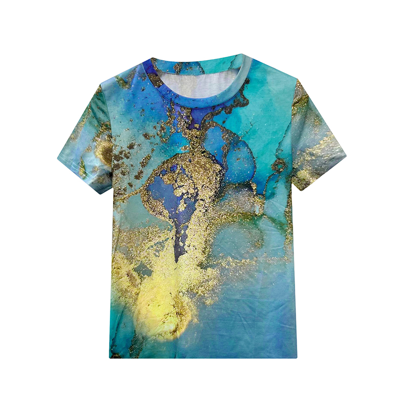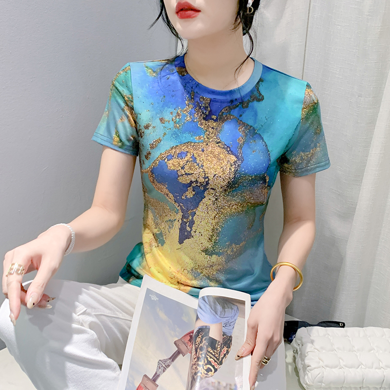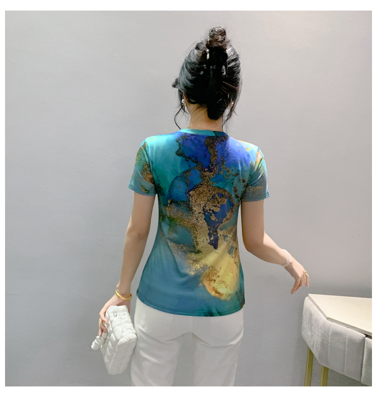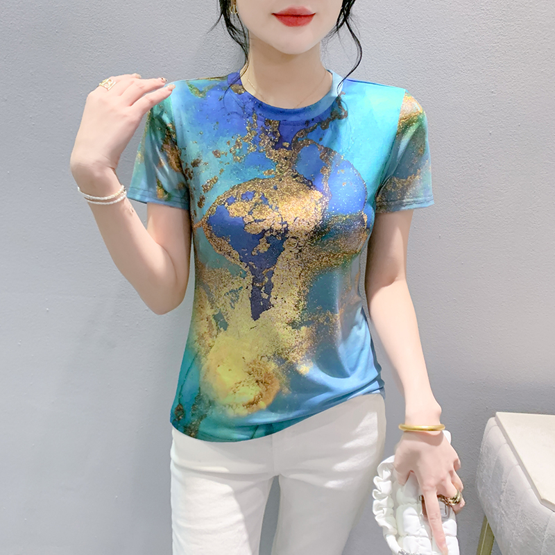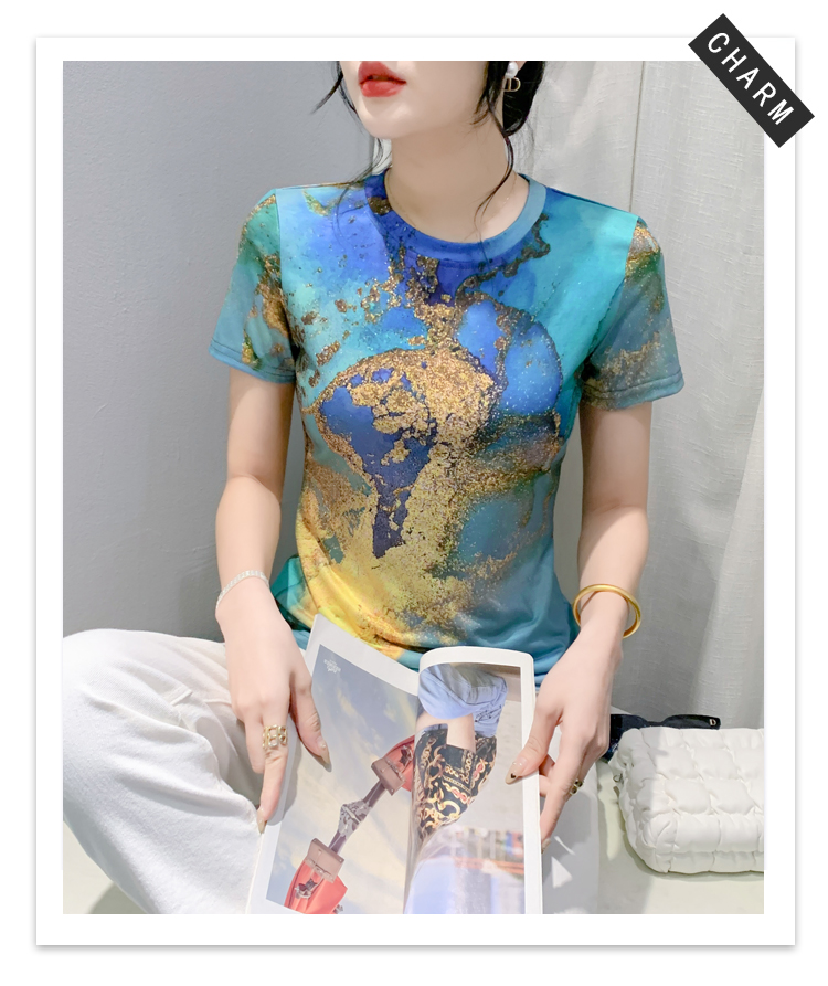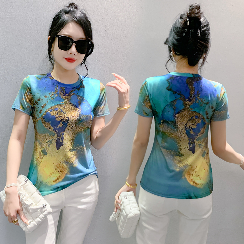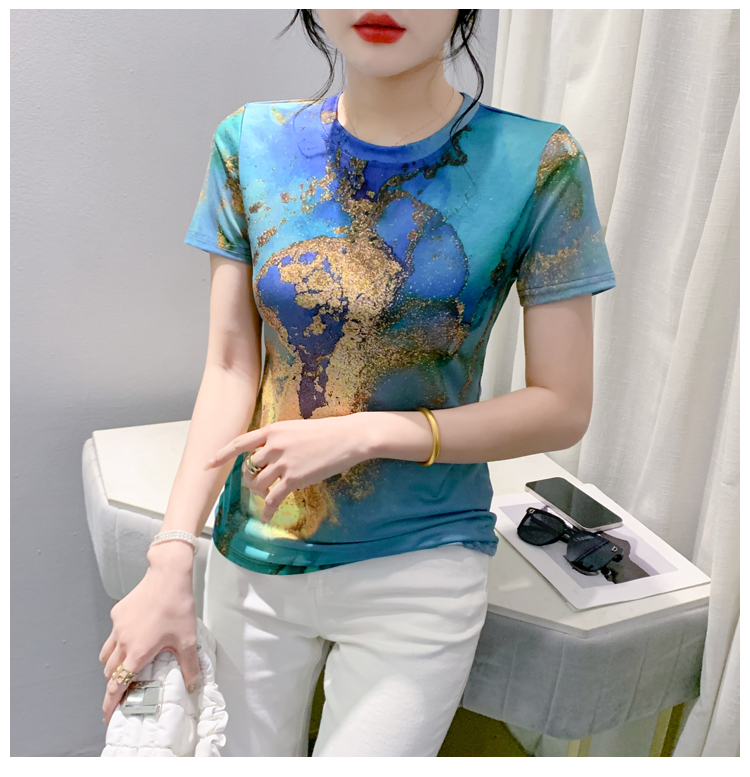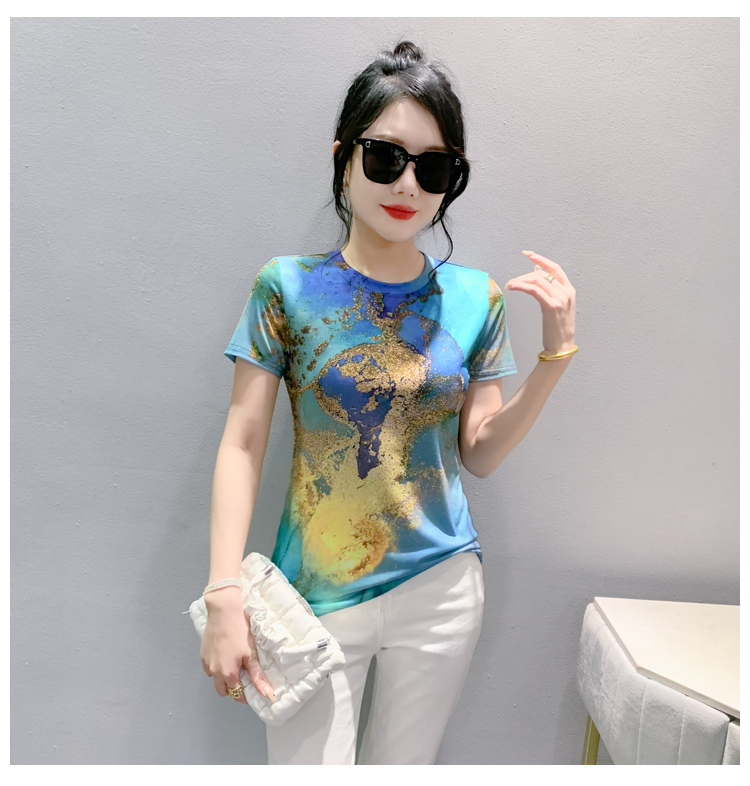 MY16995# 新款时尚定位印花短袖T恤打底衫修身上衣女女裝貨源服裝批發