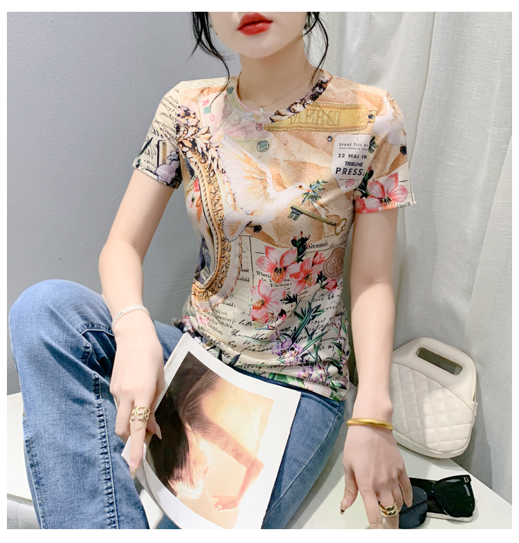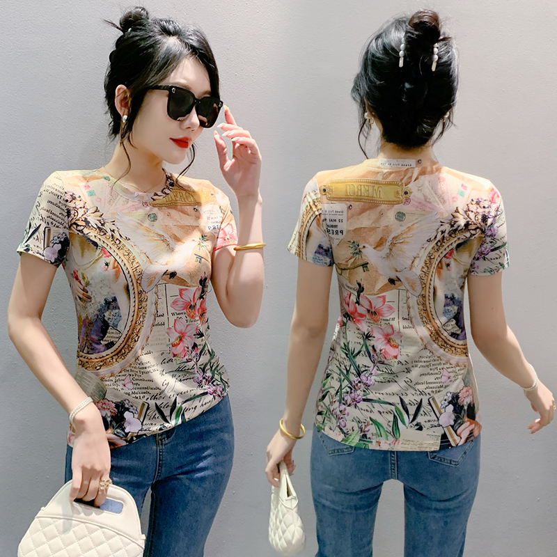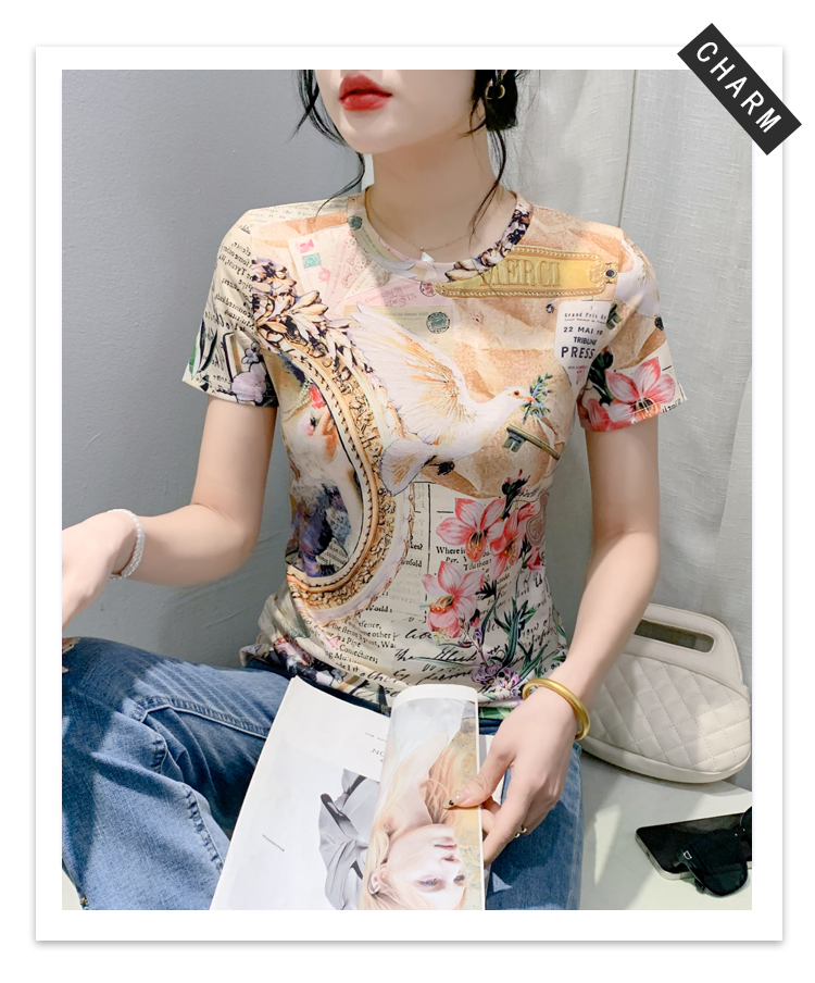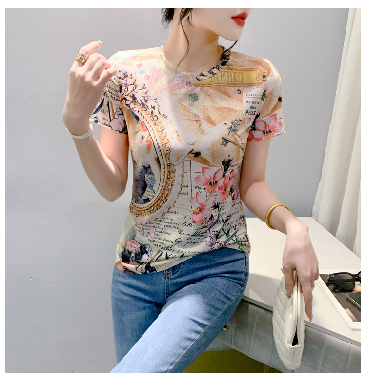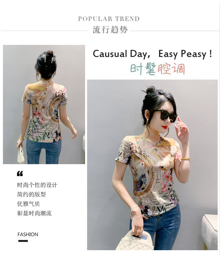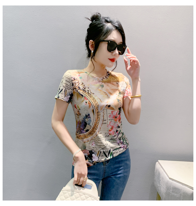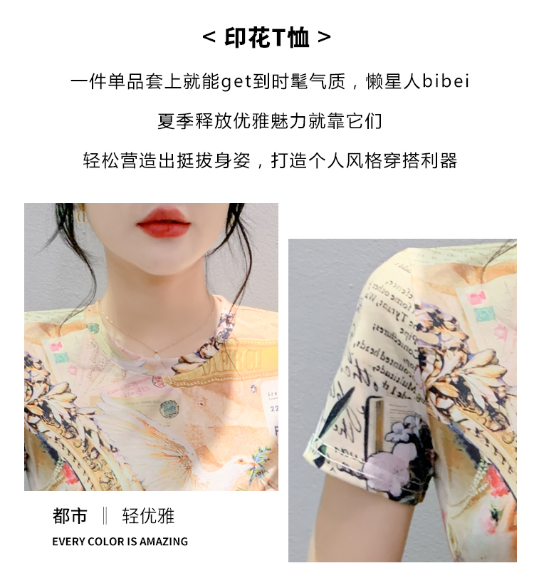 MY16996# 夏季新款时尚定位印花短袖T恤打底衫修身上衣女女裝貨源服裝批發