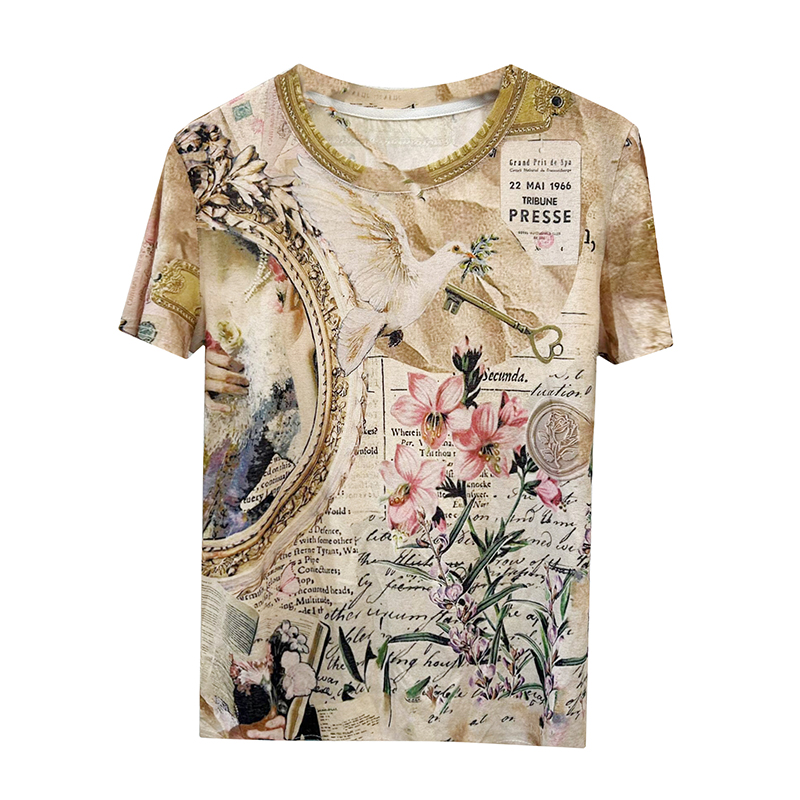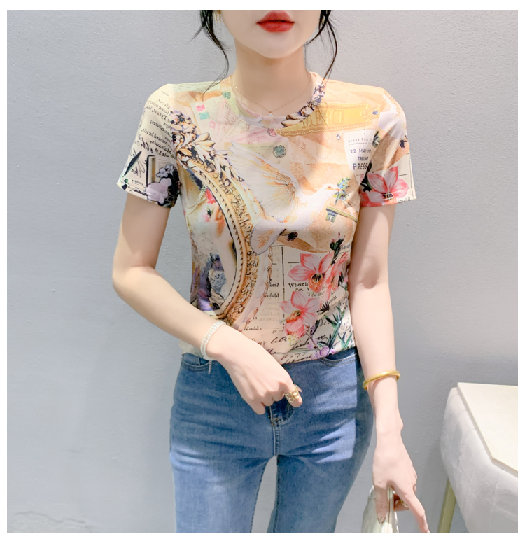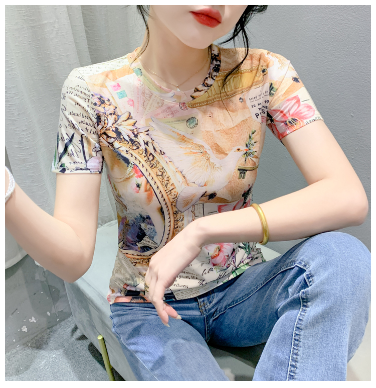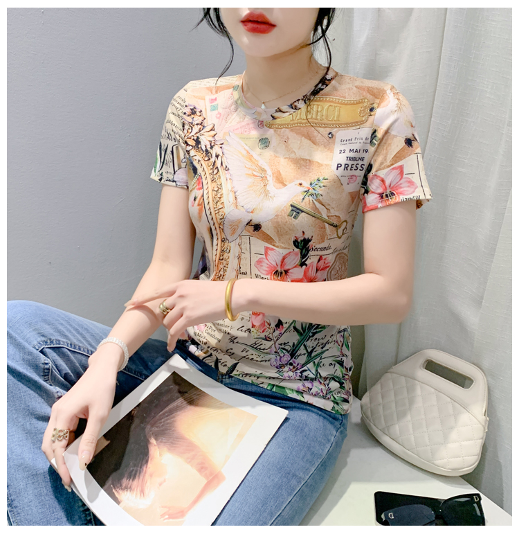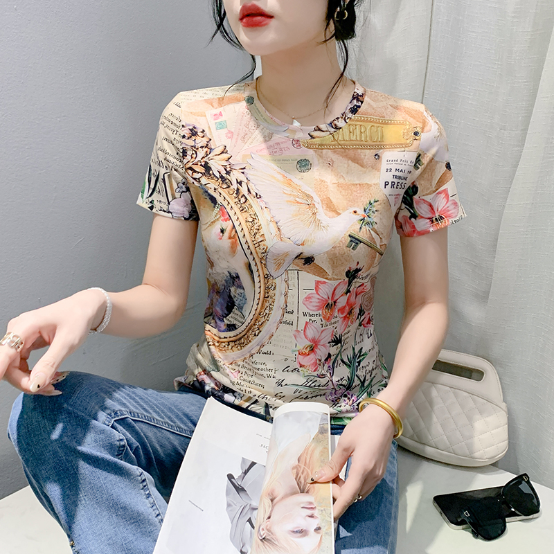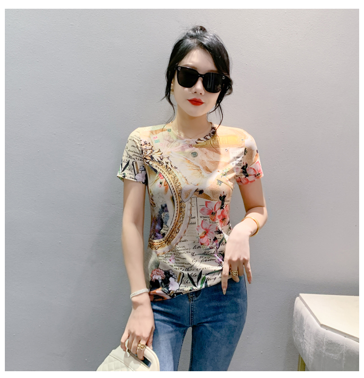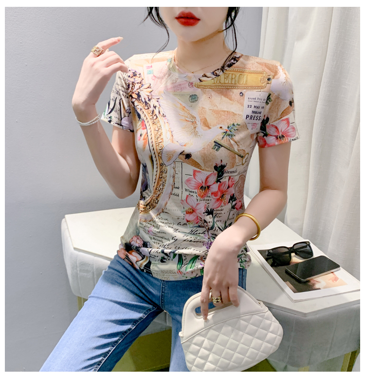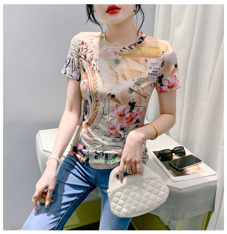 MY16996# 夏季新款时尚定位印花短袖T恤打底衫修身上衣女女裝貨源服裝批發