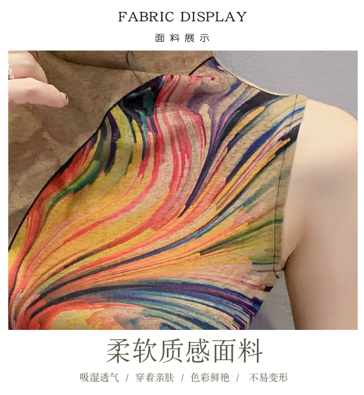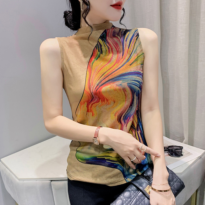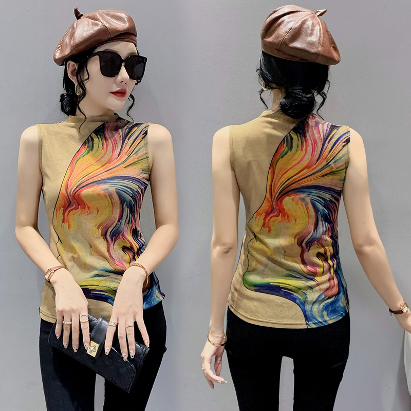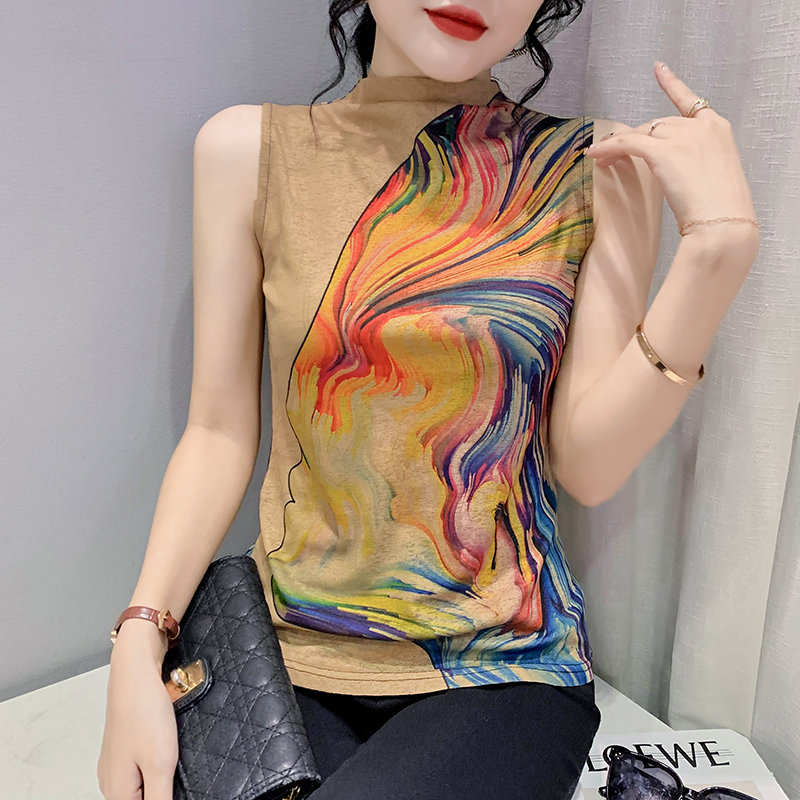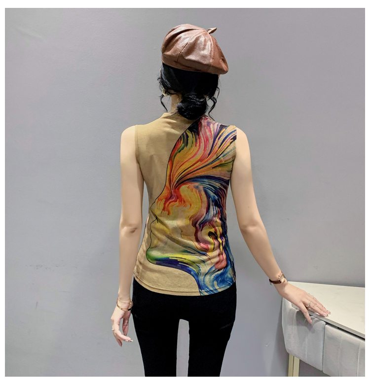 MY16998# 新款时尚印花字母无袖半高领T恤女修身气质上衣显瘦女女裝貨源服裝批發