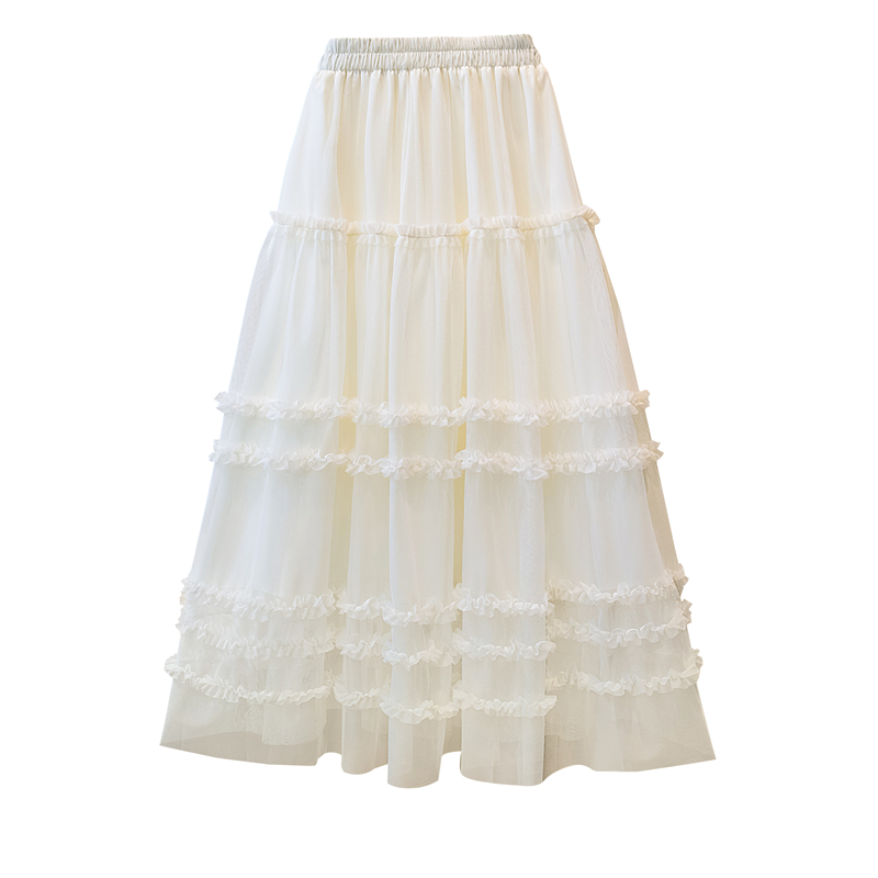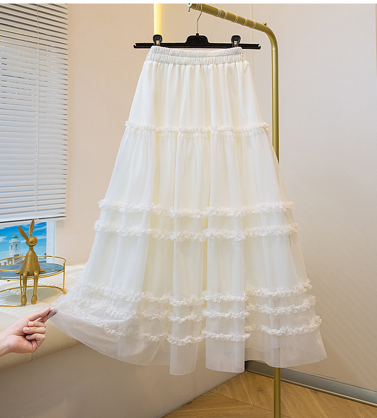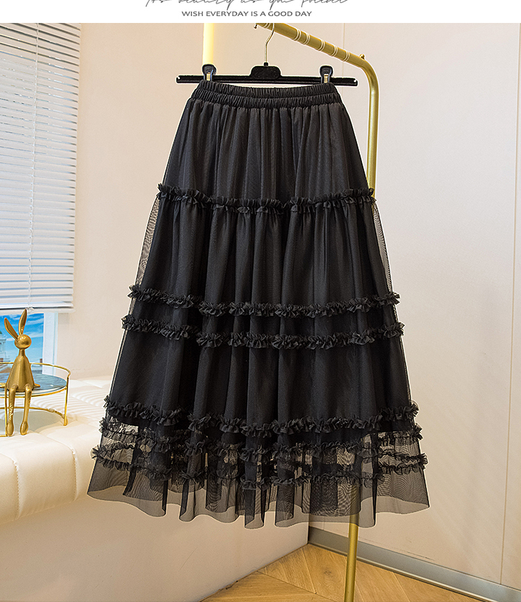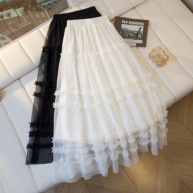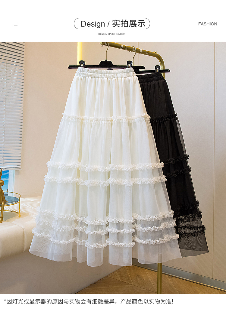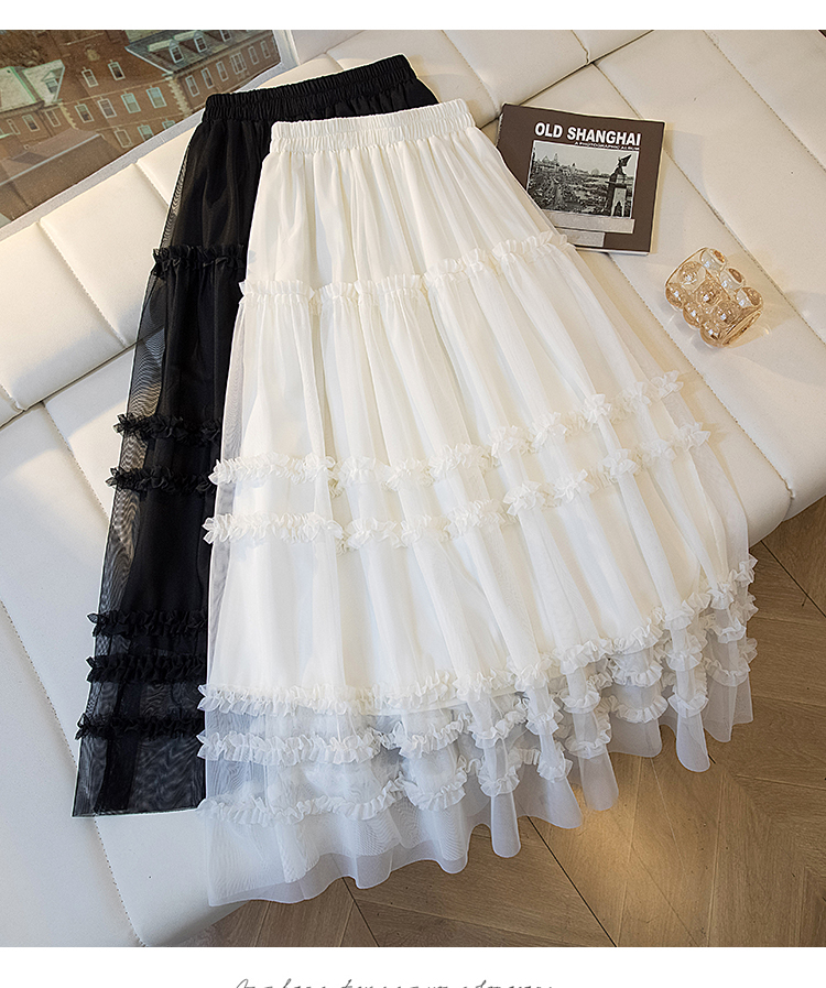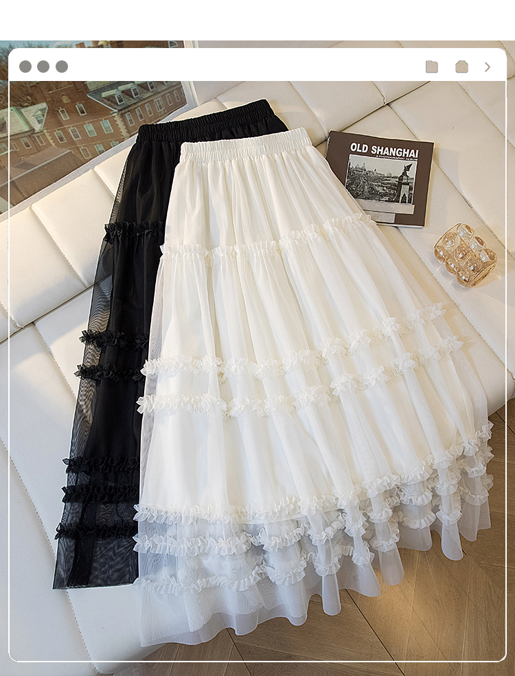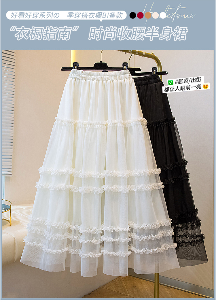 MY17259# 大码胖MM甜美木耳边网纱蕾丝半身裙大摆遮胯a字蓬蓬蛋糕裙女裝貨源服裝批發