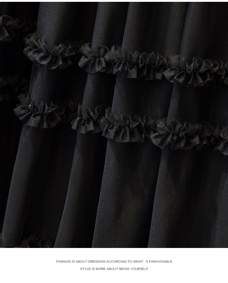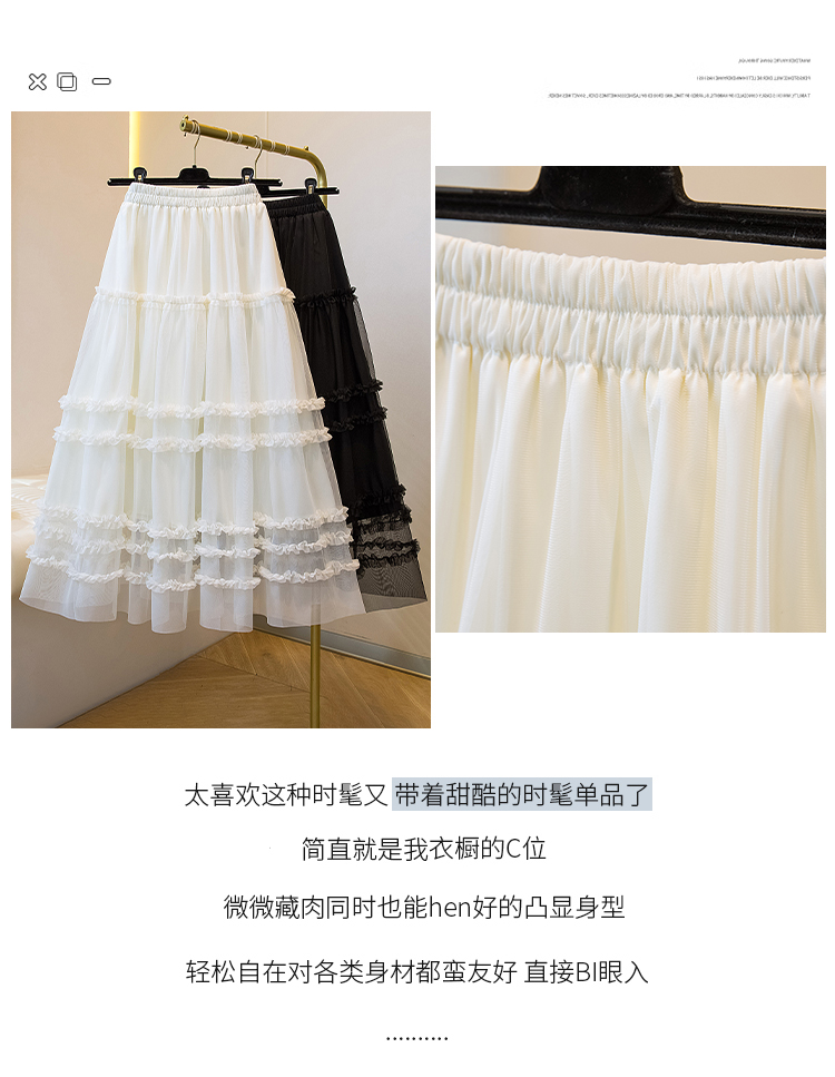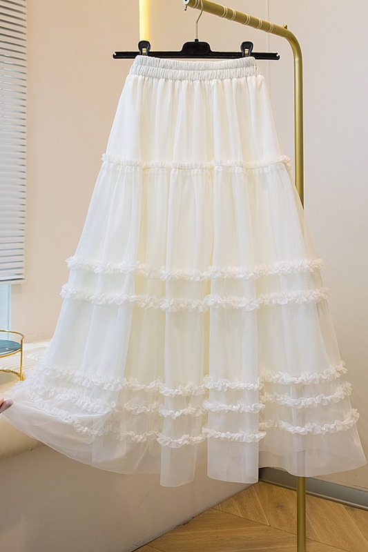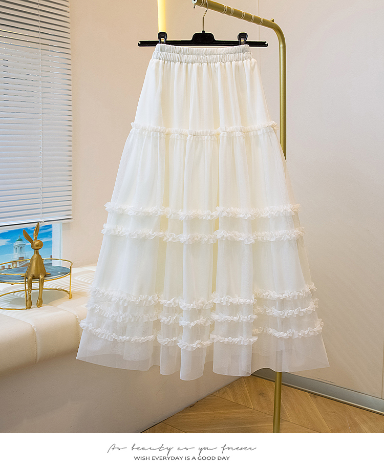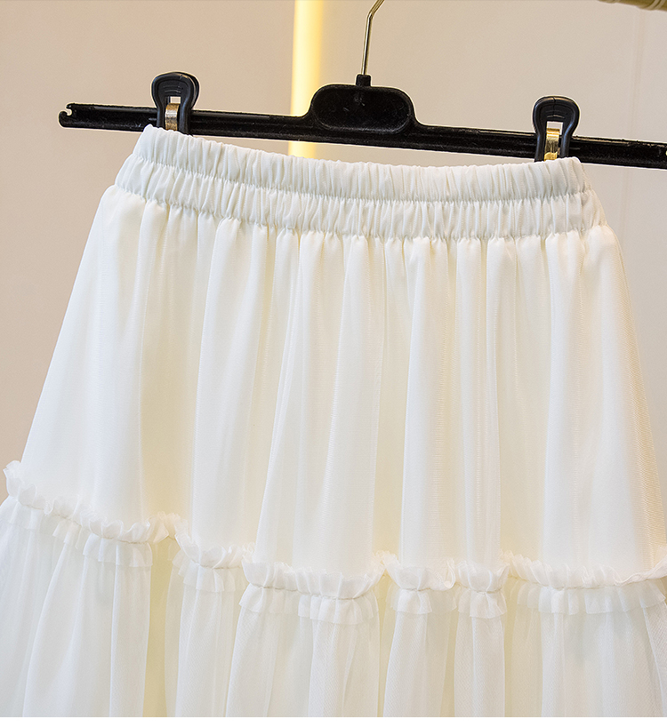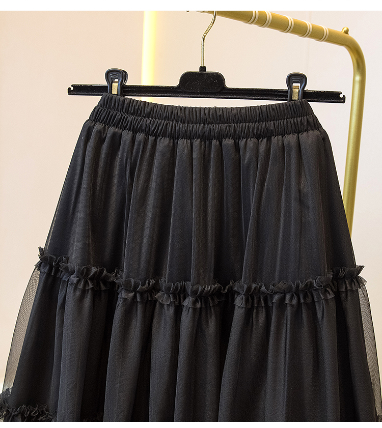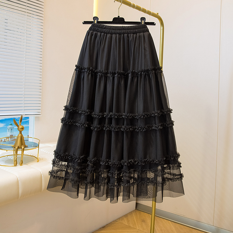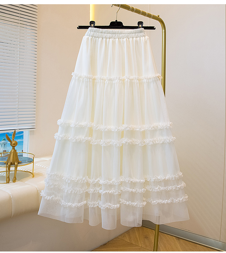 MY17259# 大码胖MM甜美木耳边网纱蕾丝半身裙大摆遮胯a字蓬蓬蛋糕裙女裝貨源服裝批發