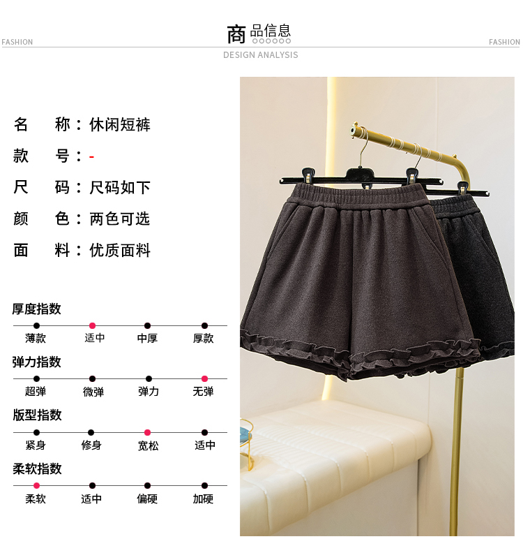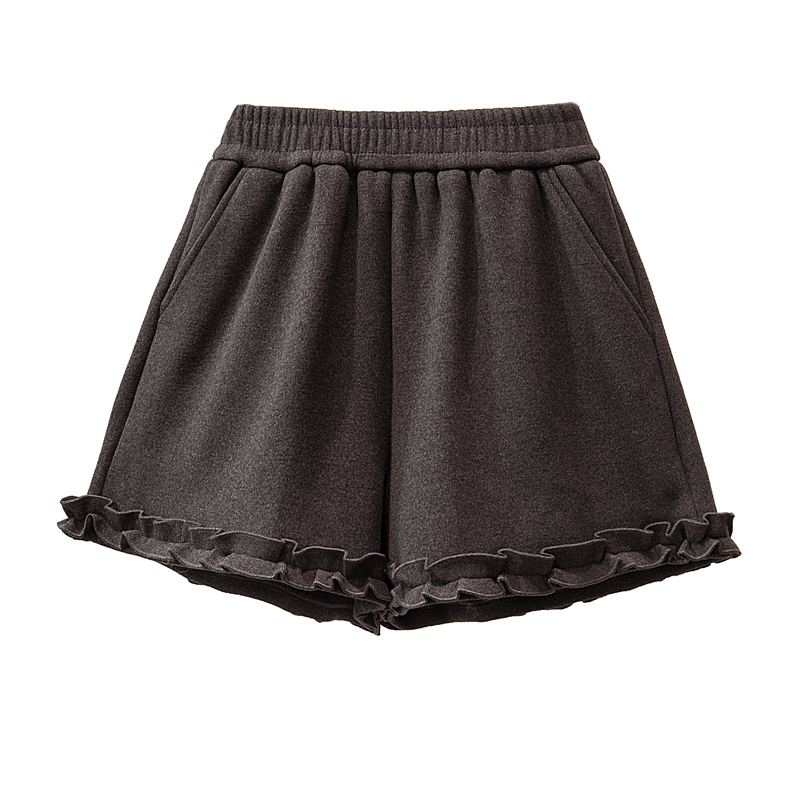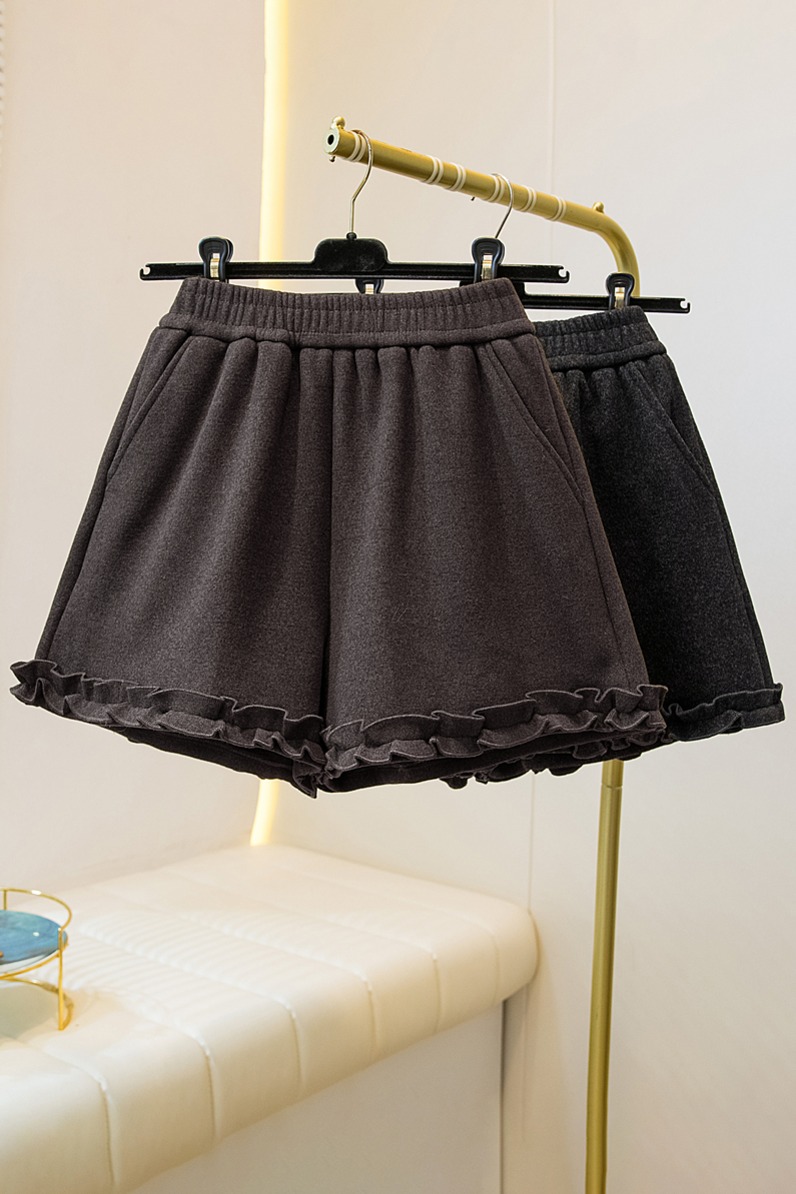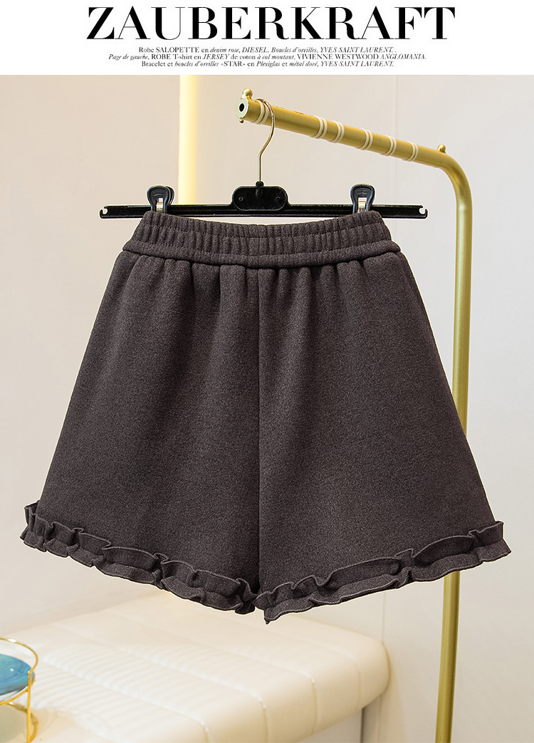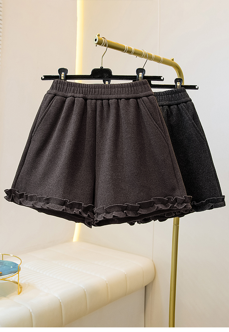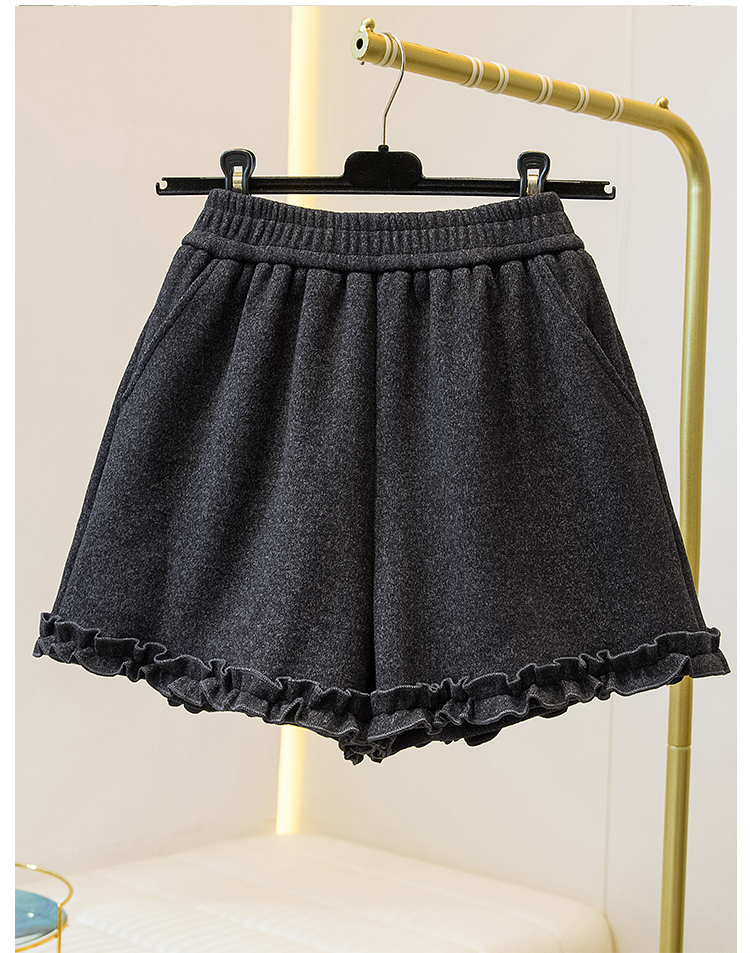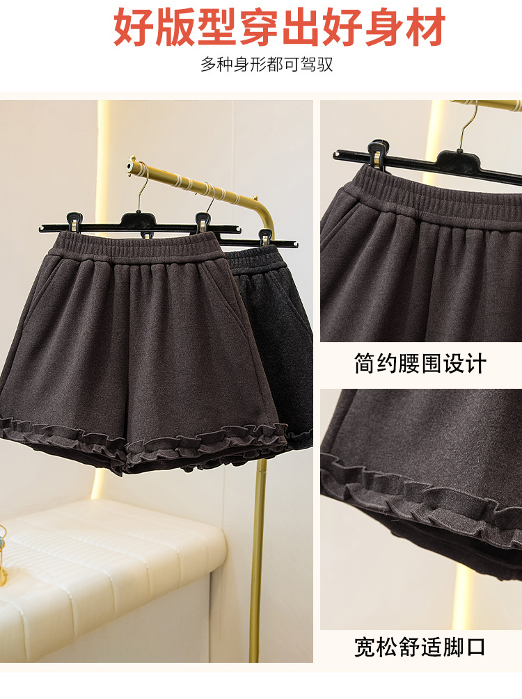 MY17260# 大码胖MM新款木耳花边毛呢加绒短裤女百搭显瘦休闲a字靴裤女裝貨源服裝批發