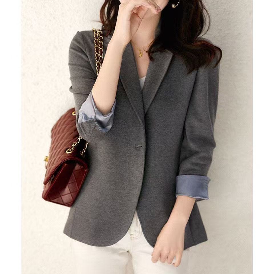 MY17274# 西装外套新款宽松显瘦一粒扣弹力西服短款小个子上衣女裝貨源服裝批發