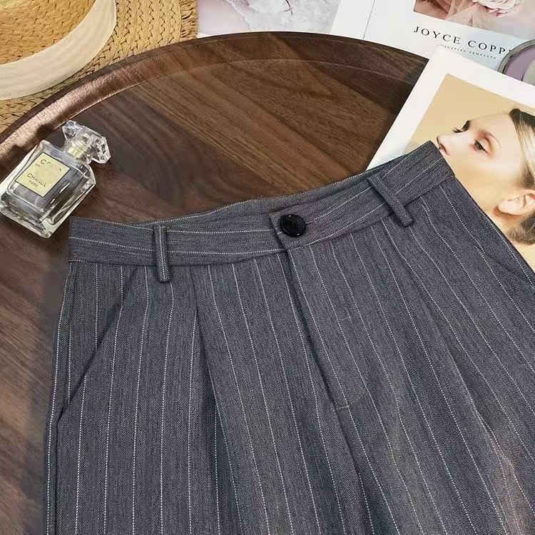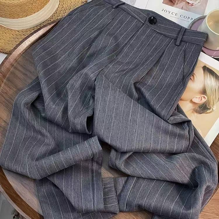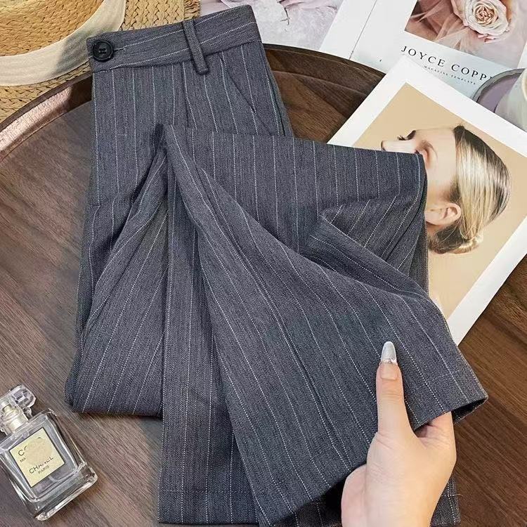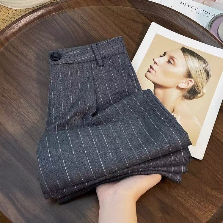 MY17276# 法式小个子宽松慵懒风休闲裤今年流行格雷系灰色西装直筒阔腿裤女女裝貨源服裝批發
