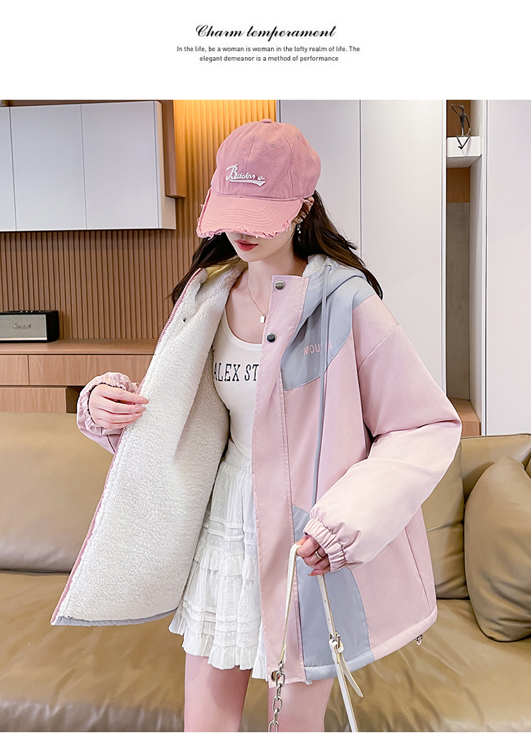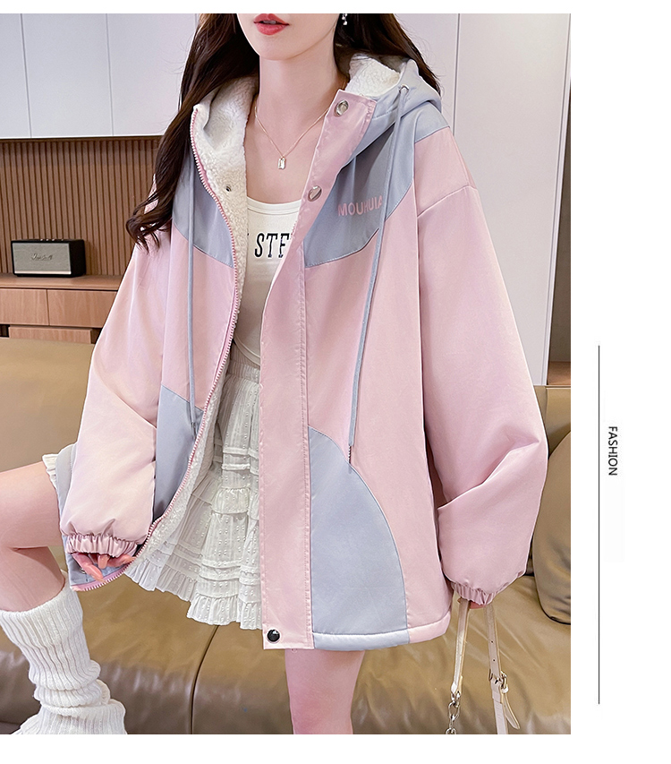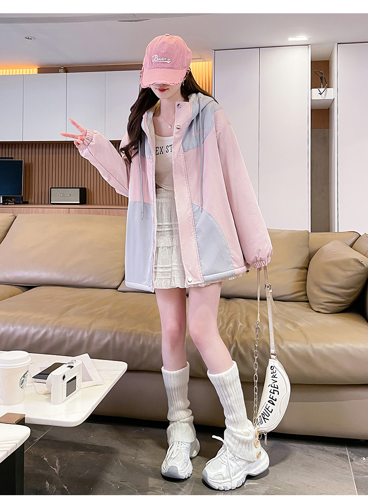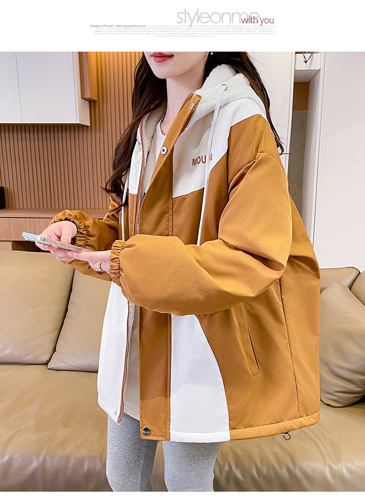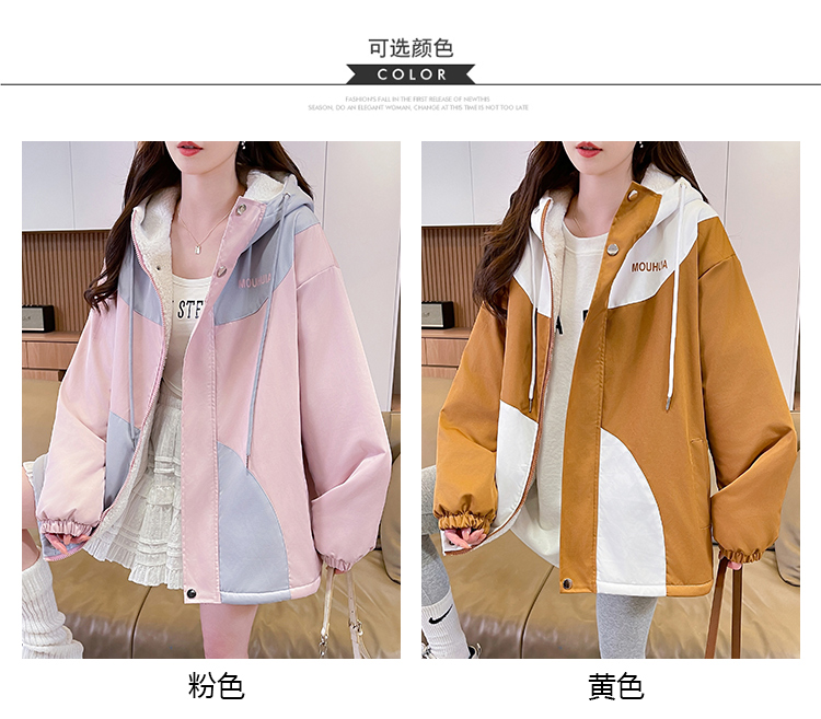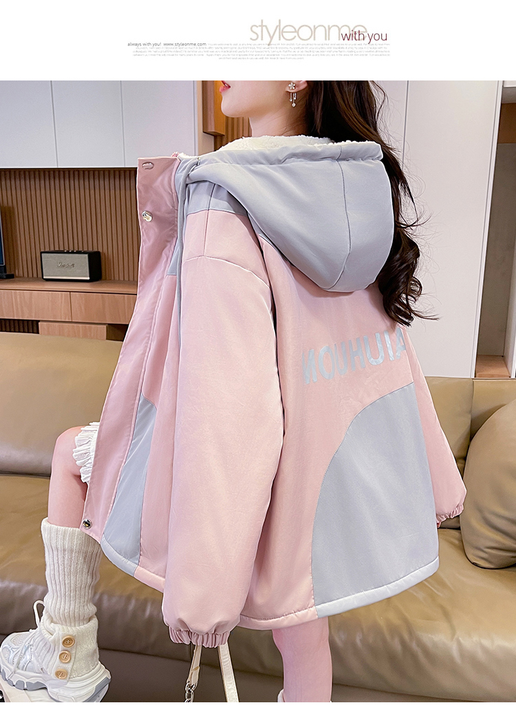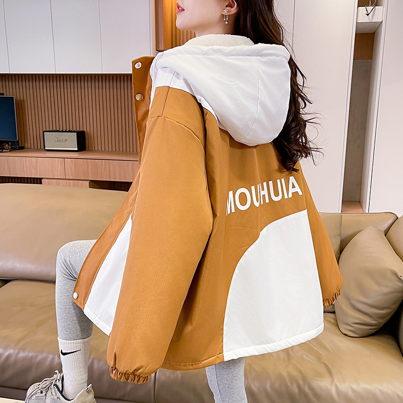 MY17282# 羊羔毛加厚外套新款初中高中学生宽松设计感加绒棉服潮女裝貨源服裝批發