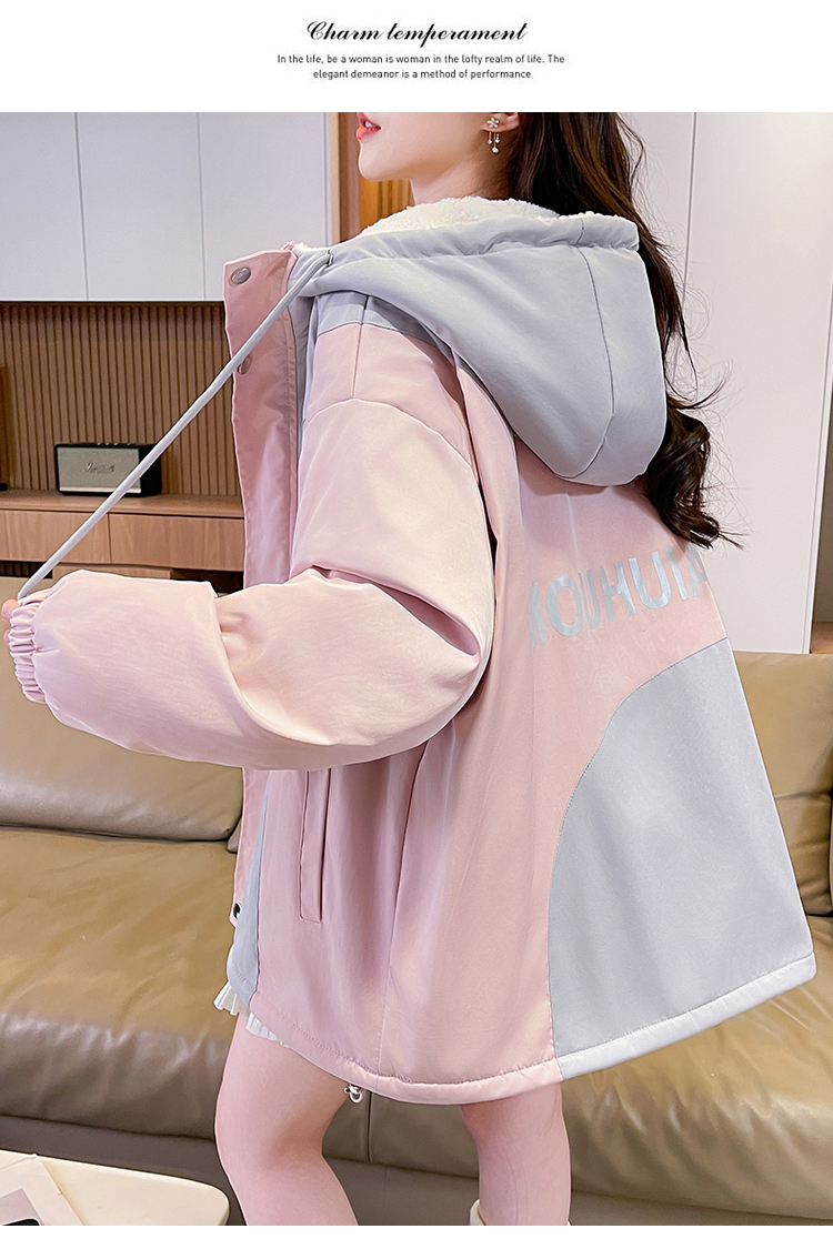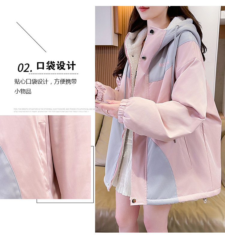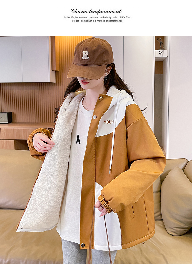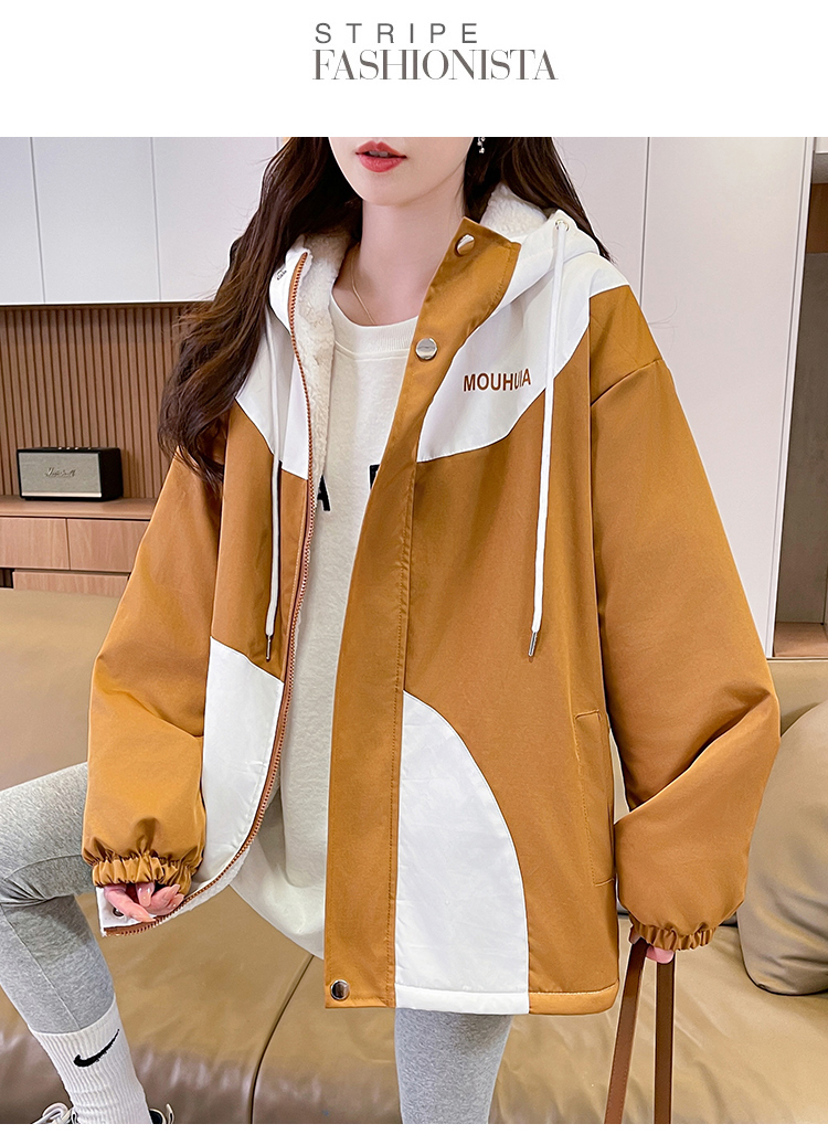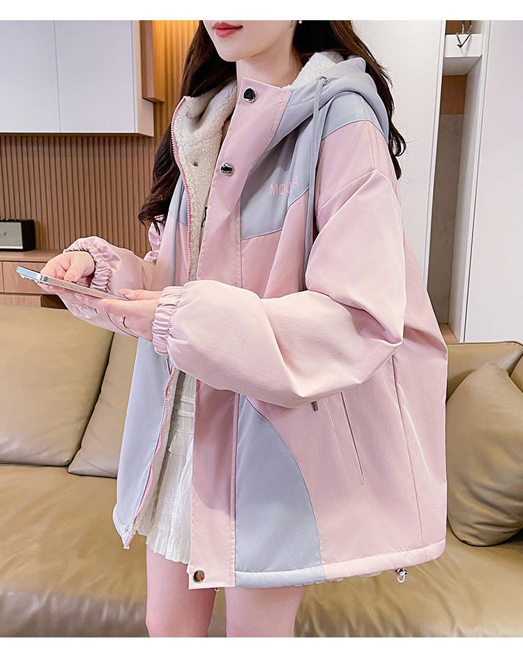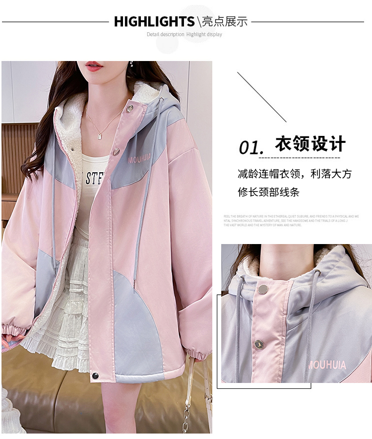 MY17282# 羊羔毛加厚外套新款初中高中学生宽松设计感加绒棉服潮女裝貨源服裝批發