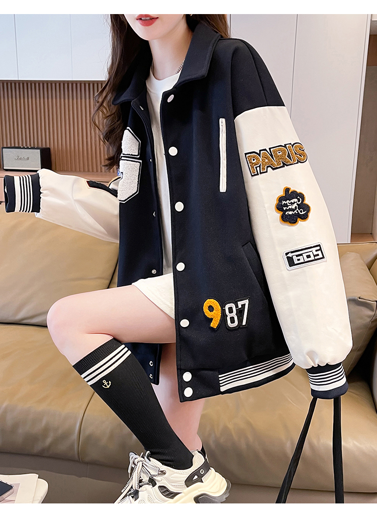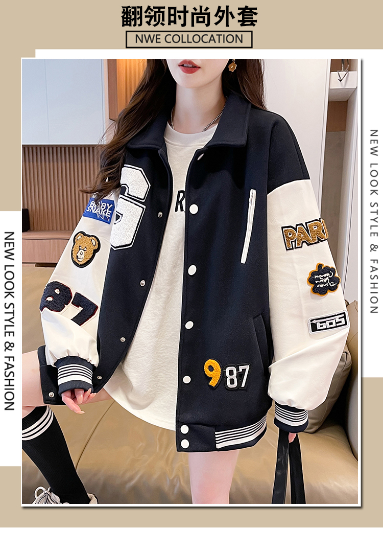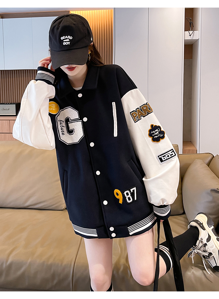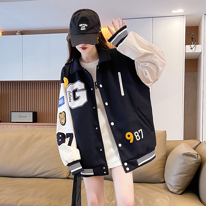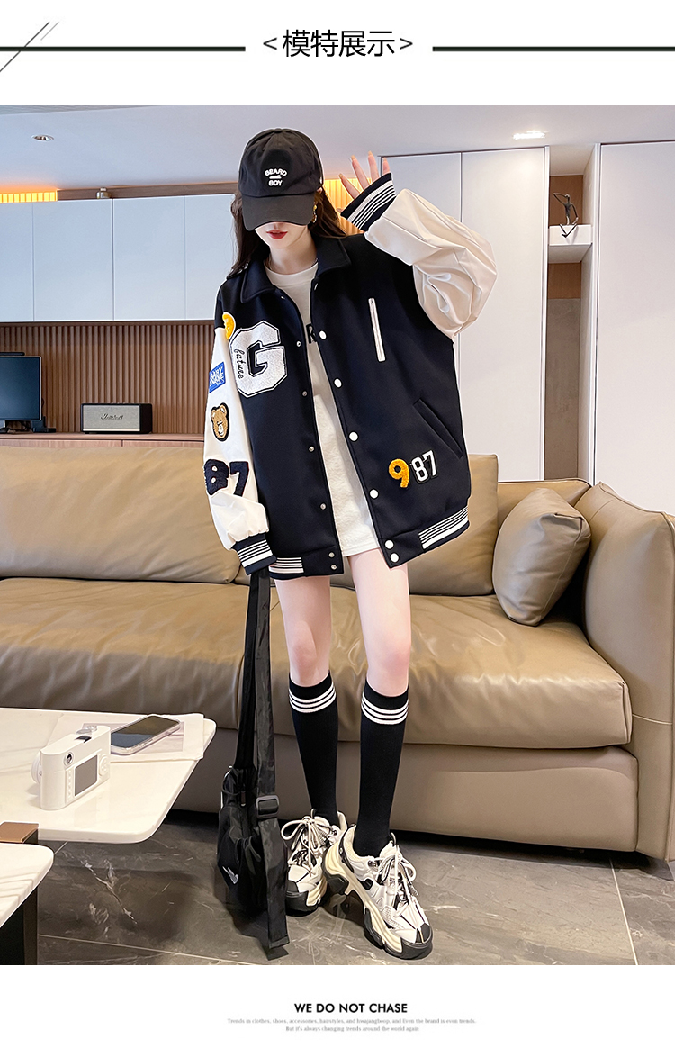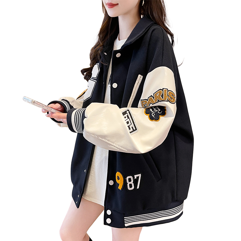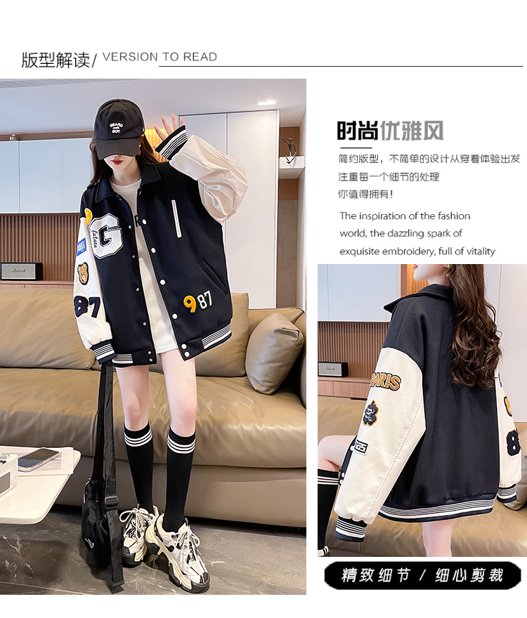 MY17286# 新款美式棒球服翻领外套女春秋休闲上衣初中学生大童卫衣女裝貨源服裝批發