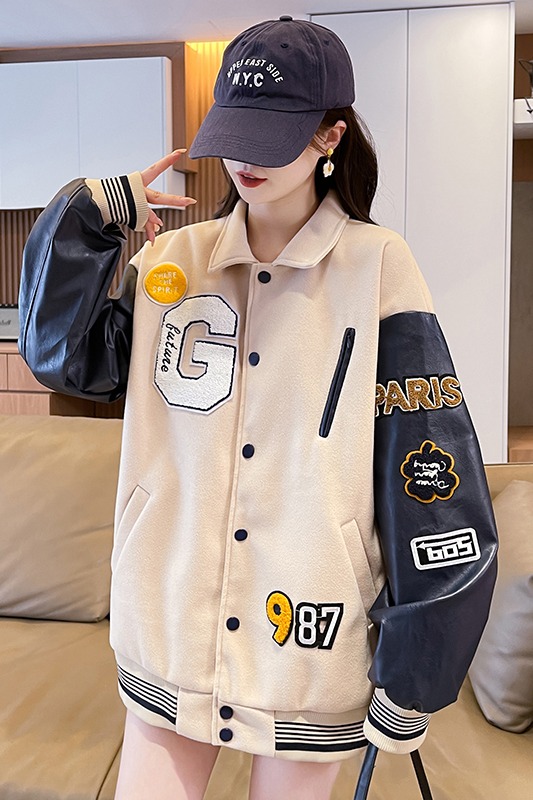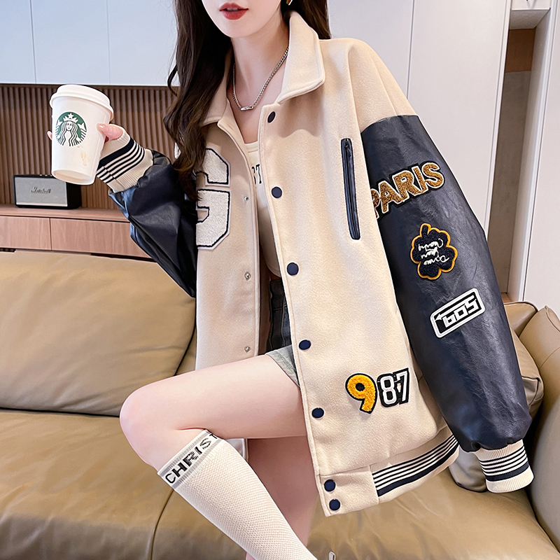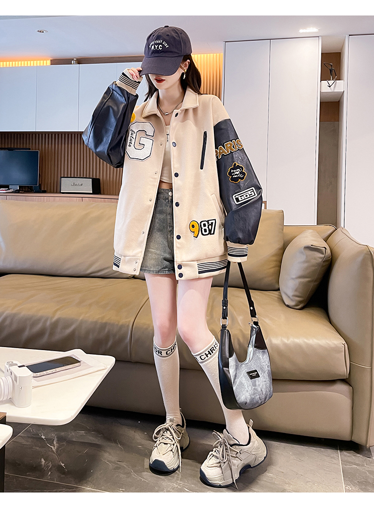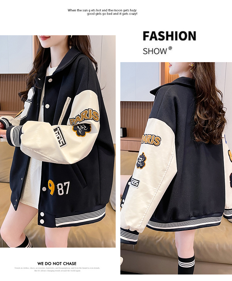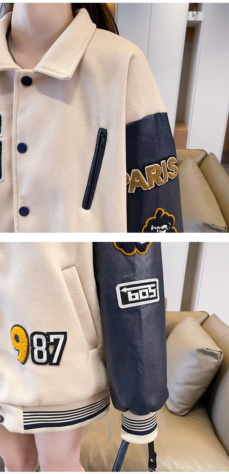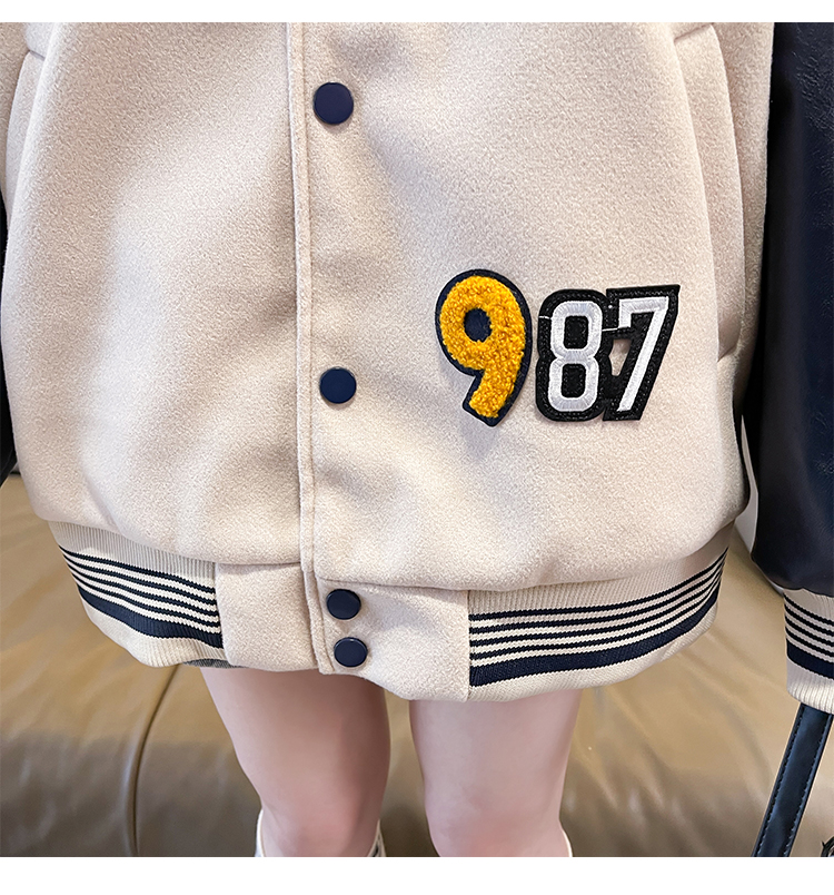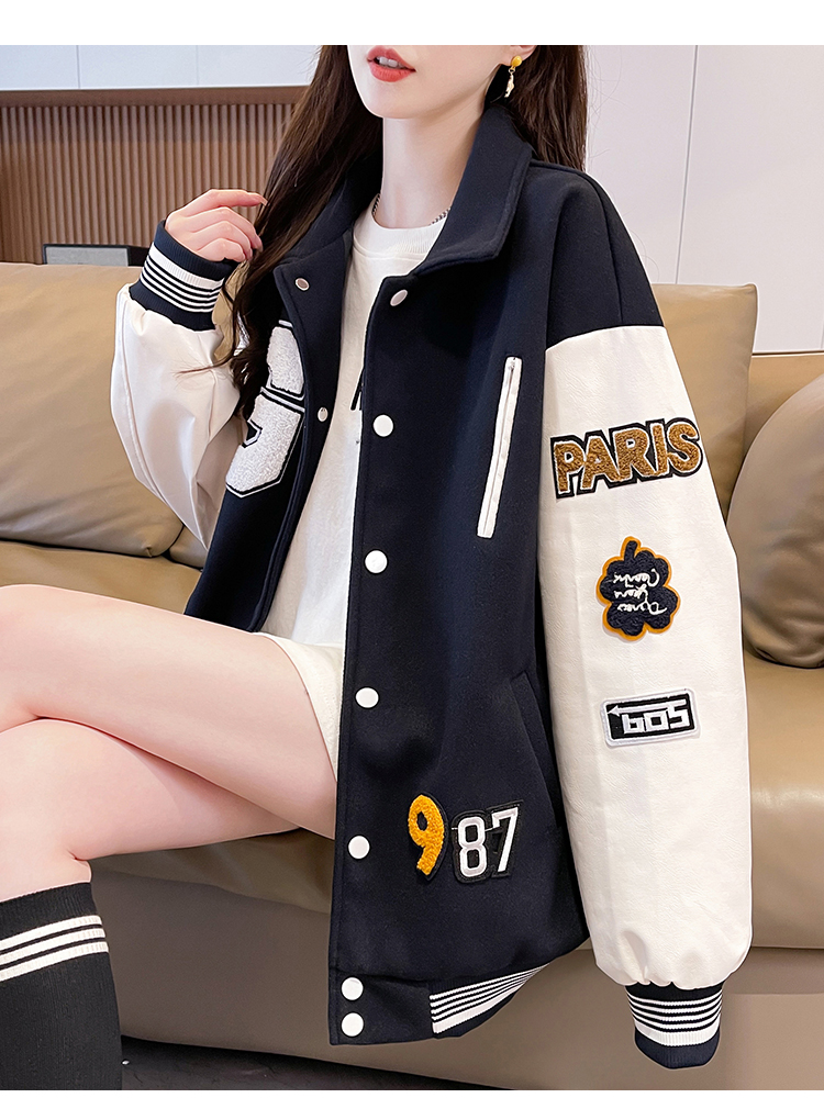 MY17286# 新款美式棒球服翻领外套女春秋休闲上衣初中学生大童卫衣女裝貨源服裝批發