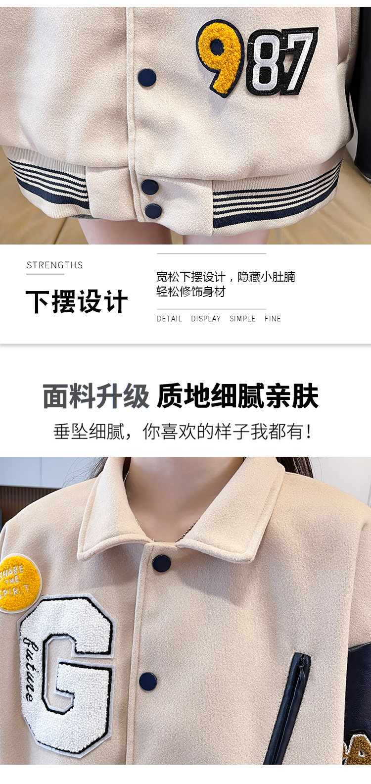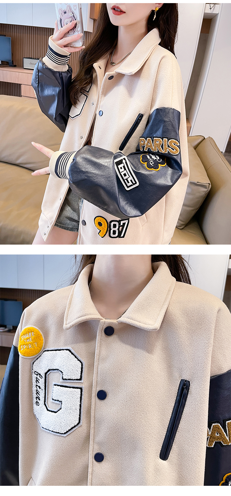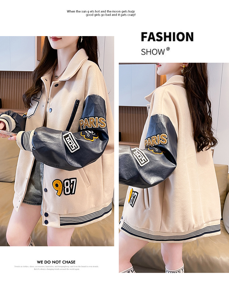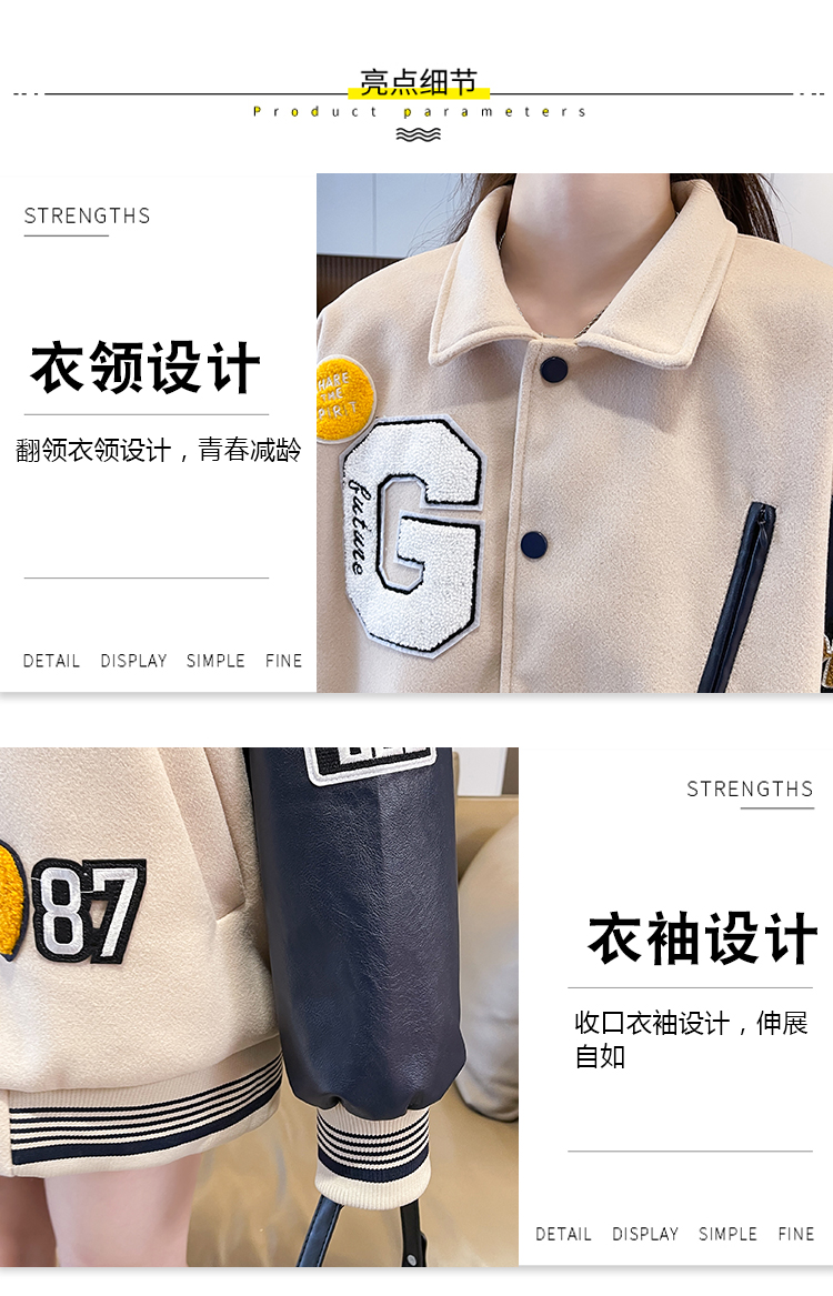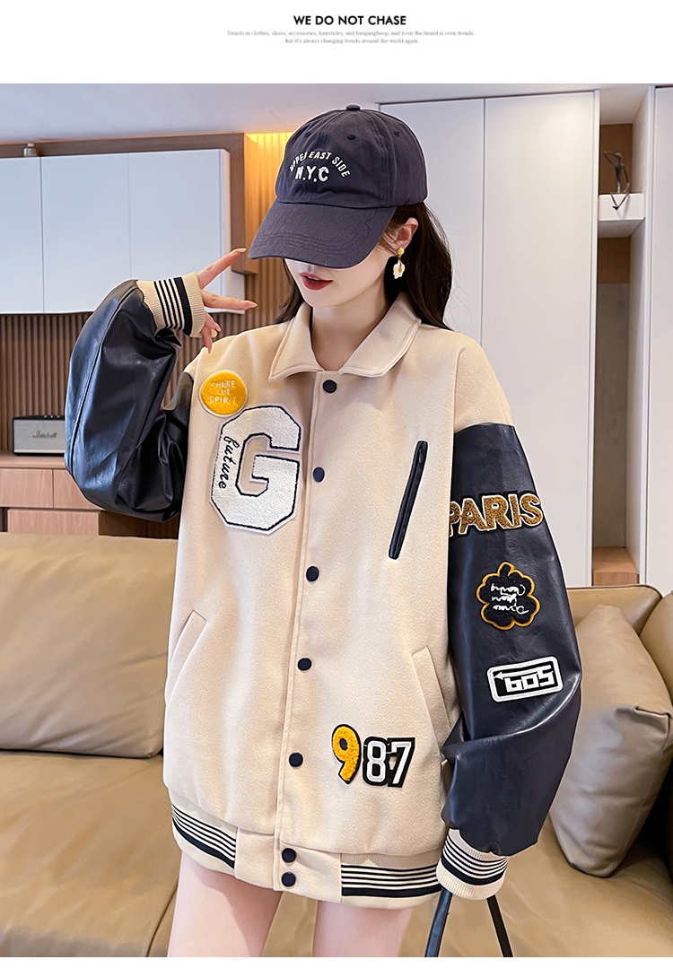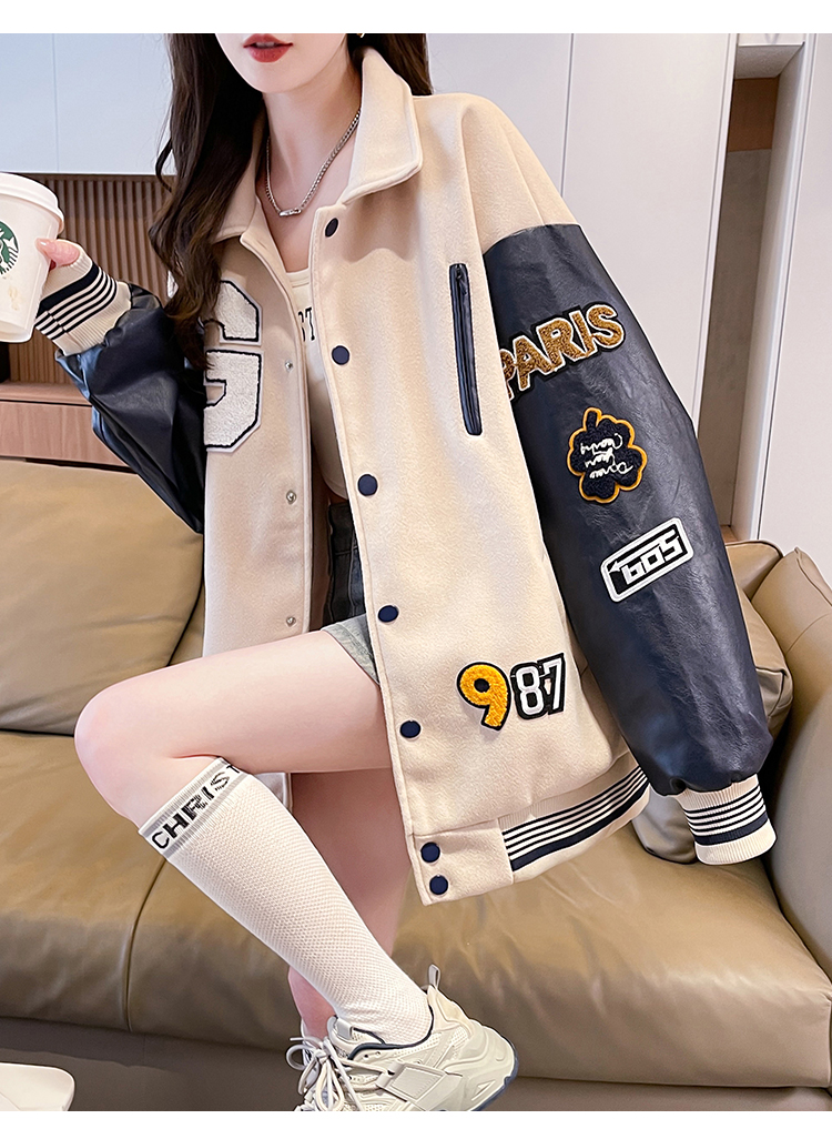 MY17286# 新款美式棒球服翻领外套女春秋休闲上衣初中学生大童卫衣女裝貨源服裝批發