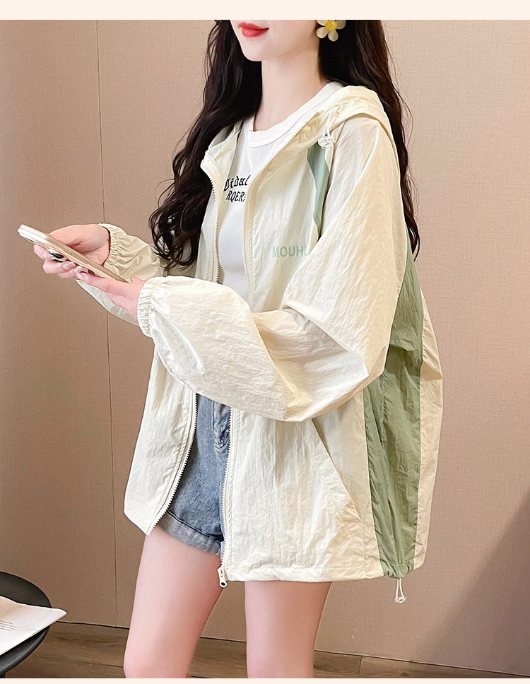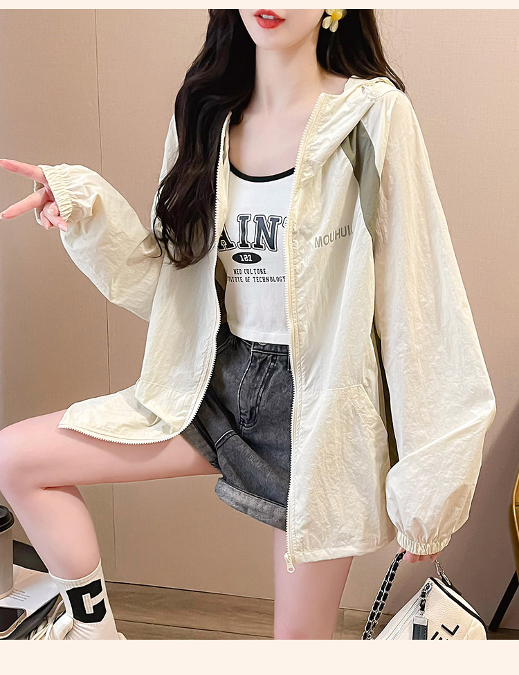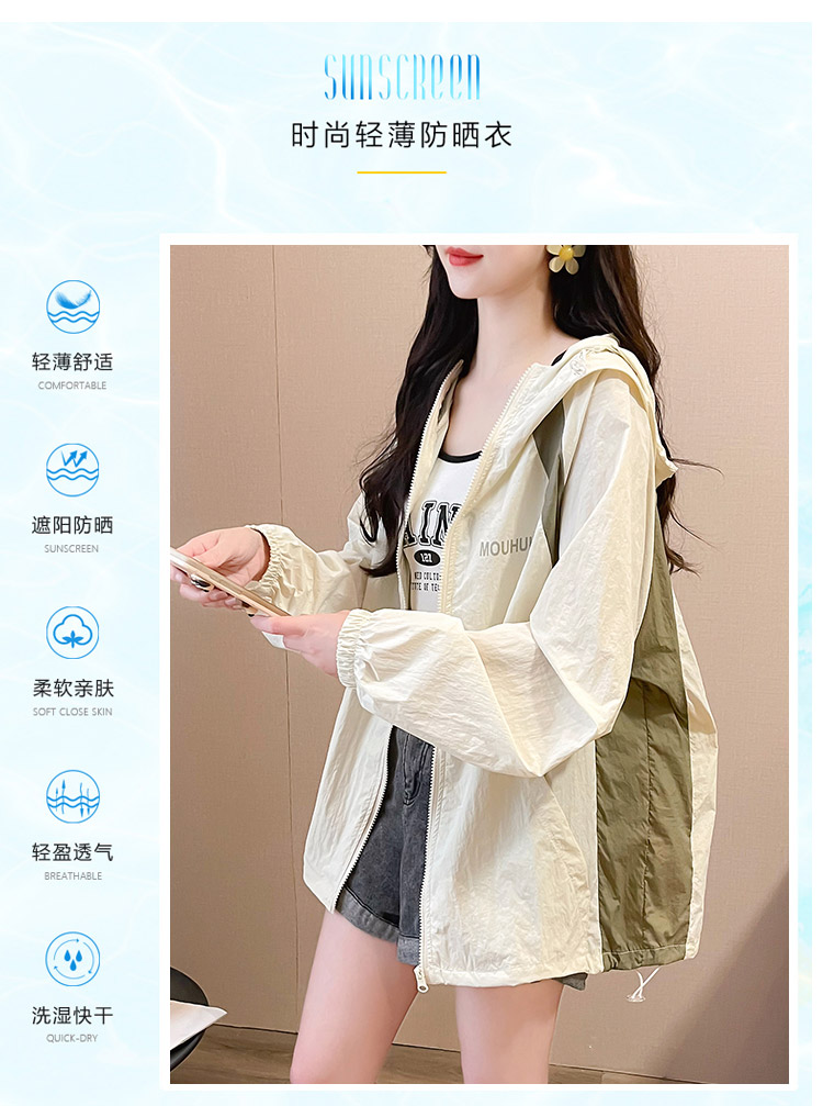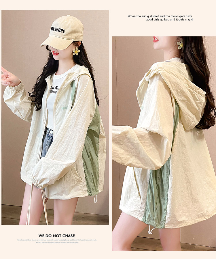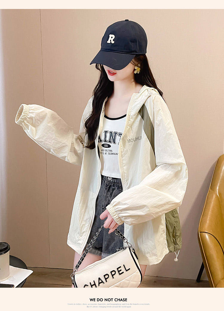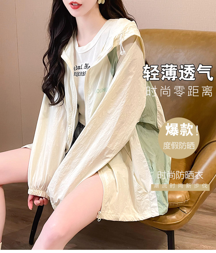 MY17288# 撞色连帽防晒衣新款宽松透气防晒服韩版宽松冲锋衣薄外套女裝貨源服裝批發