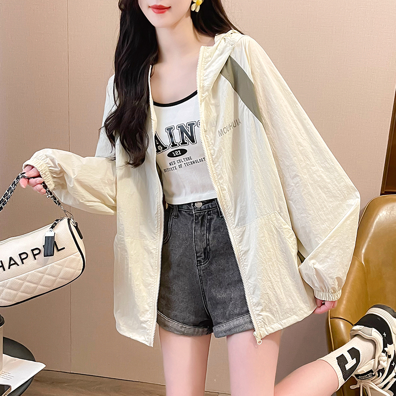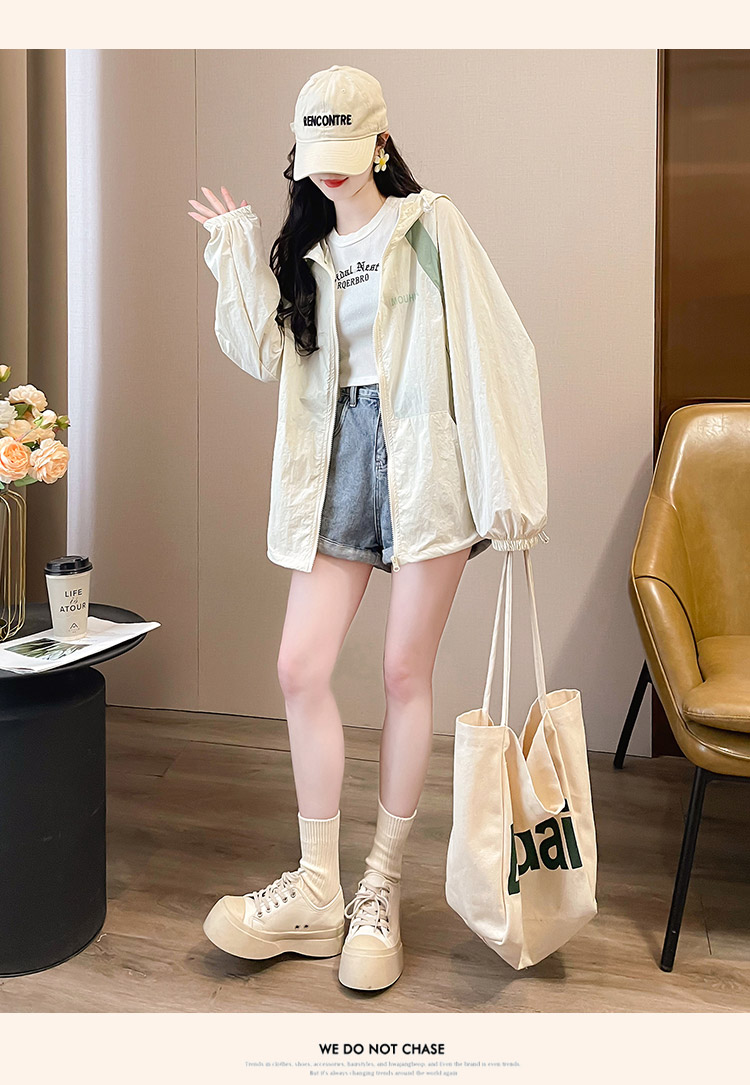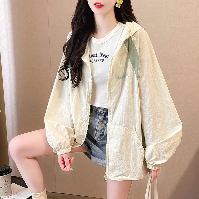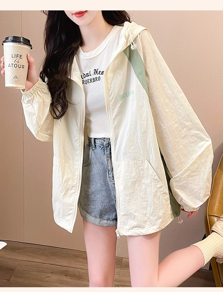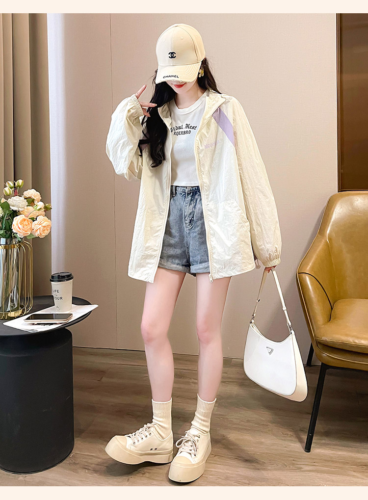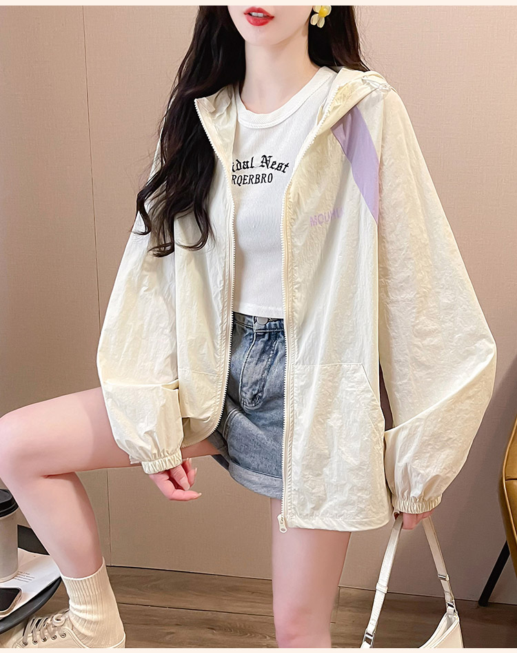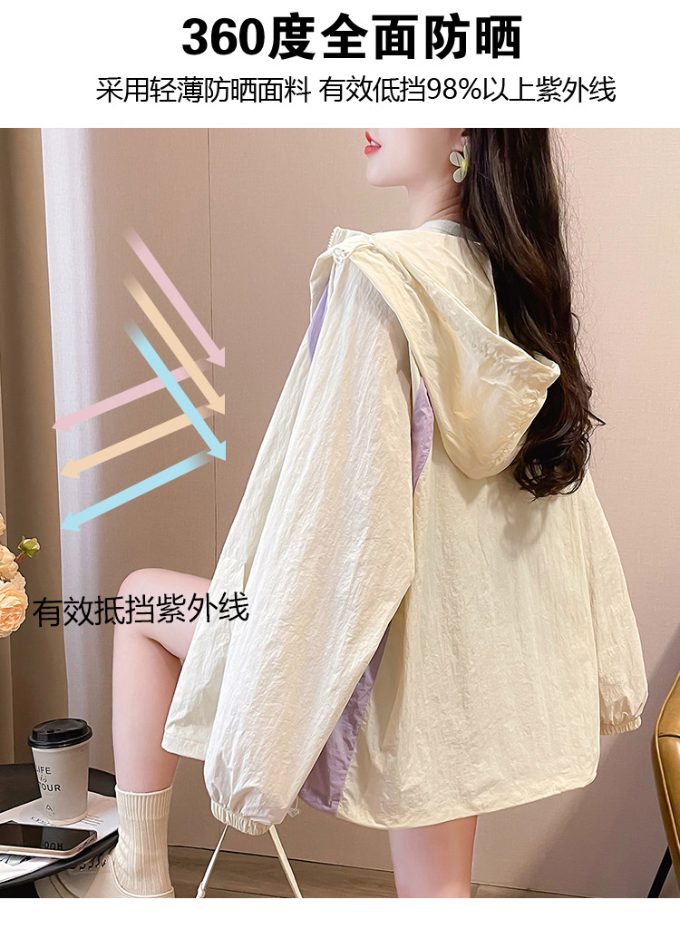 MY17288# 撞色连帽防晒衣新款宽松透气防晒服韩版宽松冲锋衣薄外套女裝貨源服裝批發