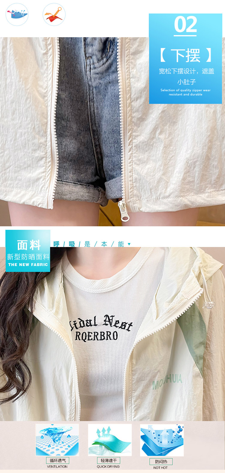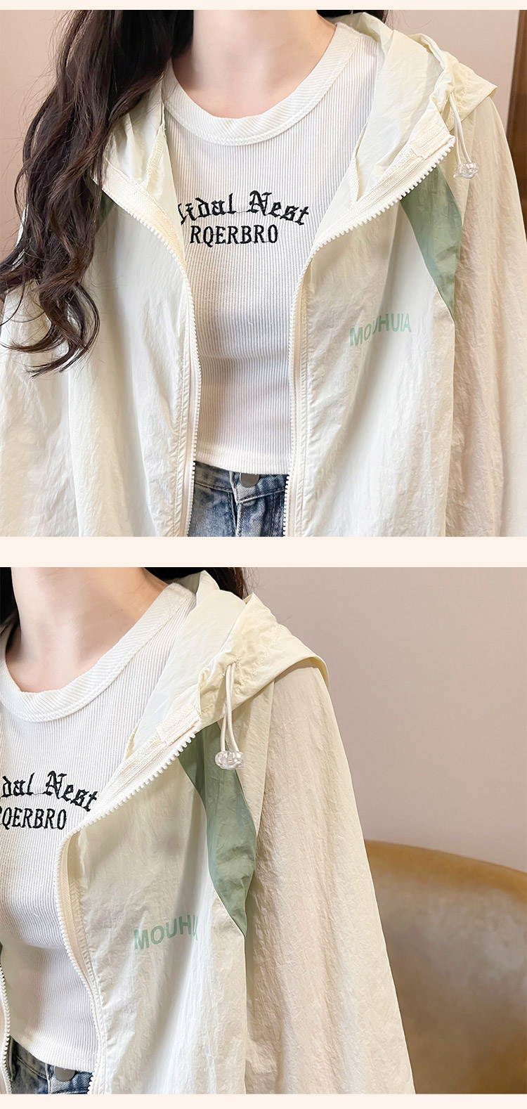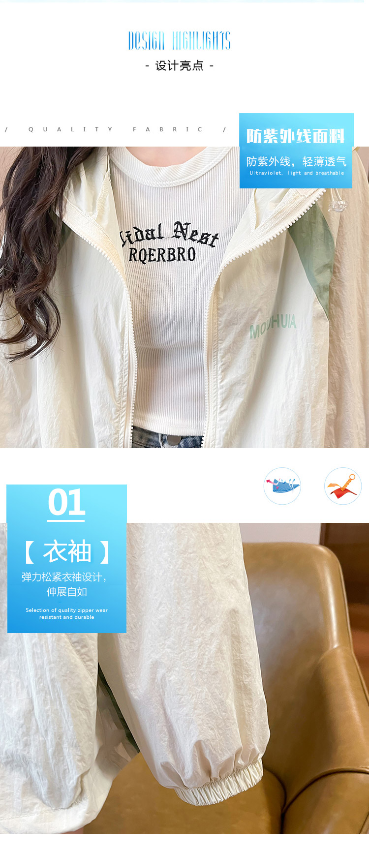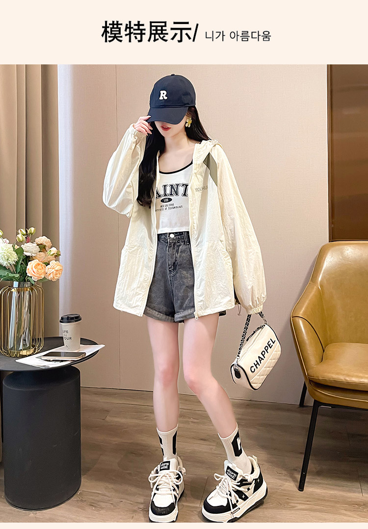 MY17288# 撞色连帽防晒衣新款宽松透气防晒服韩版宽松冲锋衣薄外套女裝貨源服裝批發