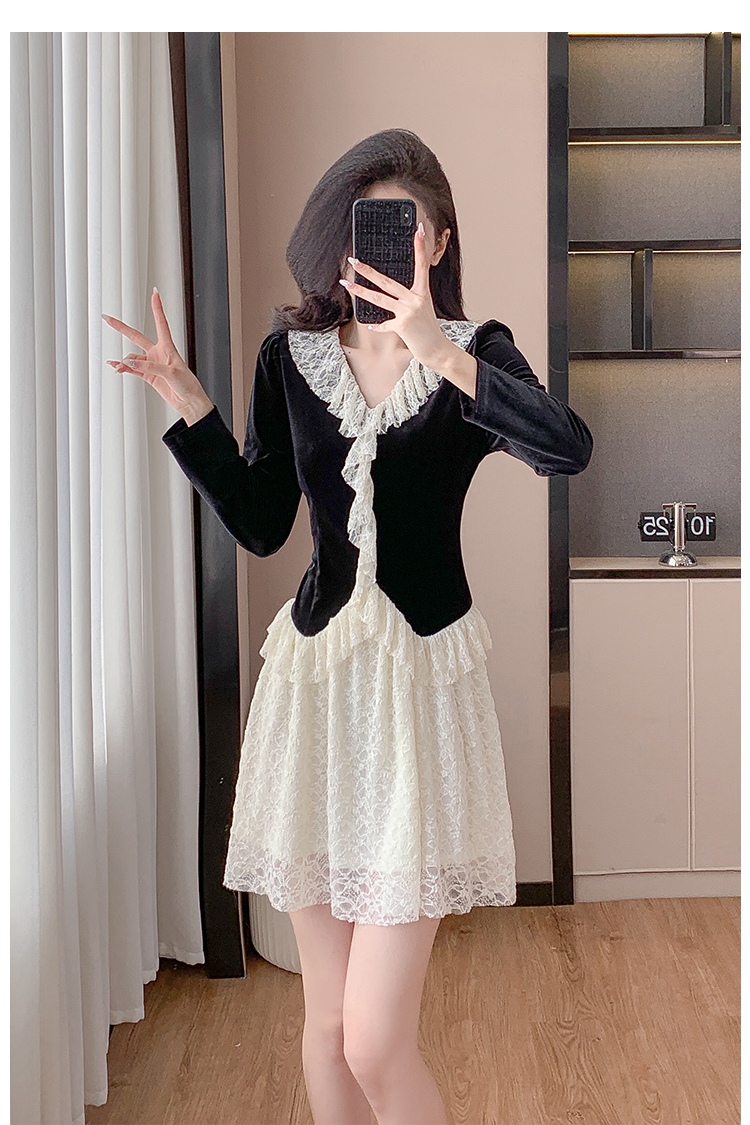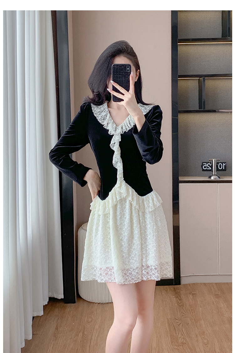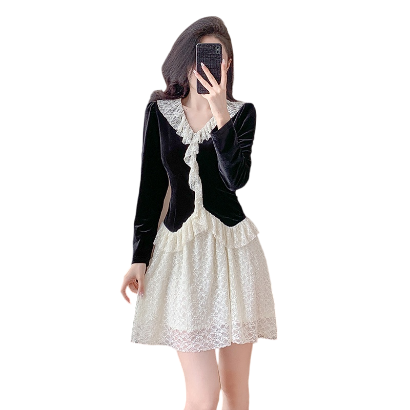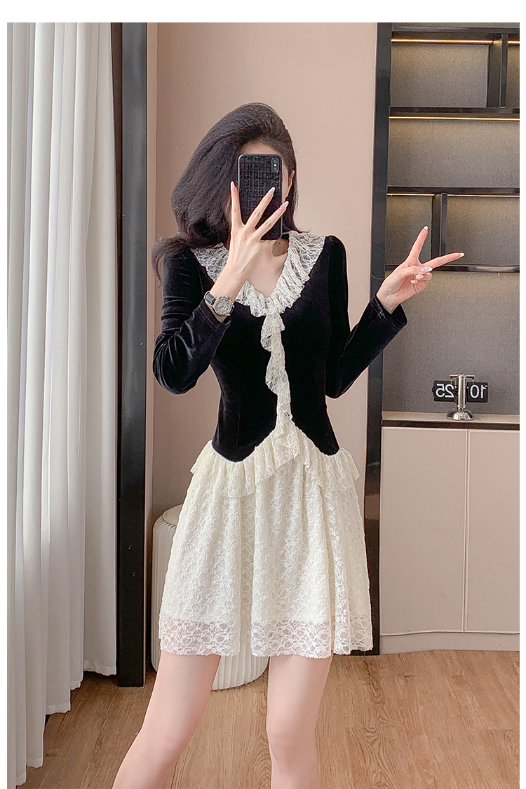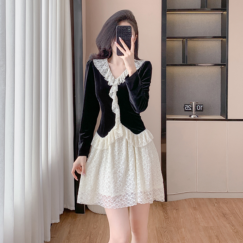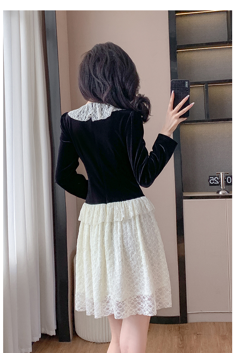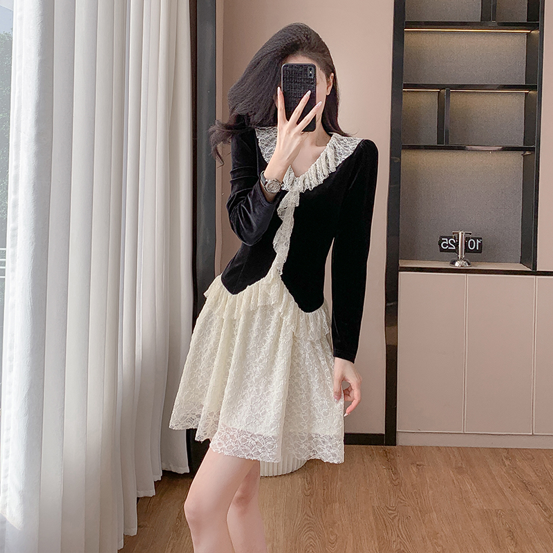 MY17291# 新款蕾丝娃娃领连衣裙仙气飘飘短裙固色不掉色女裝貨源服裝批發