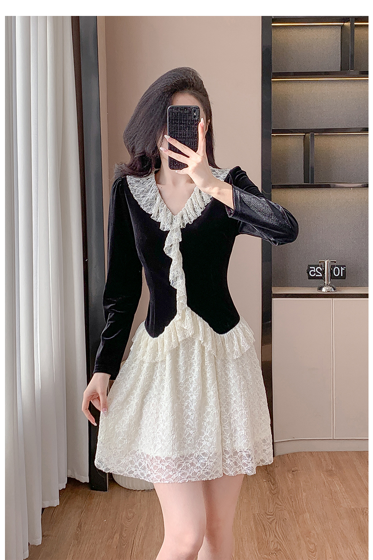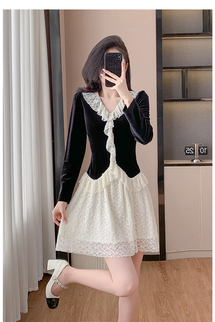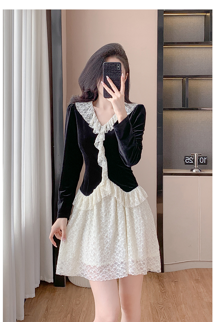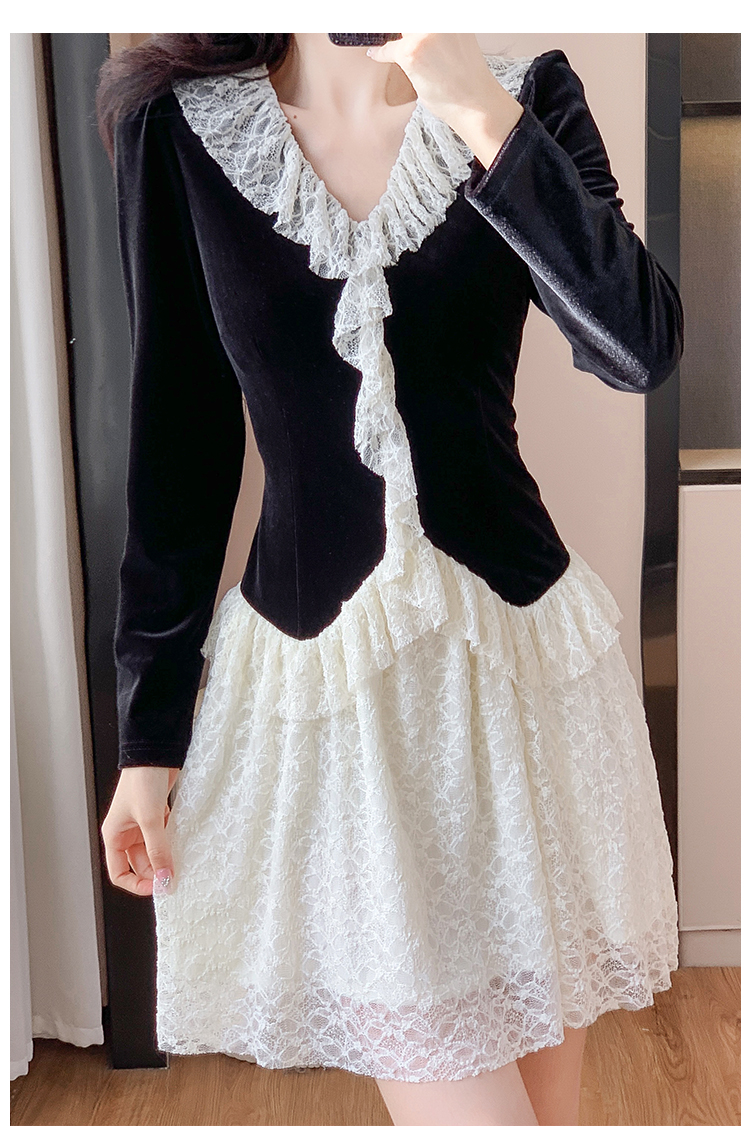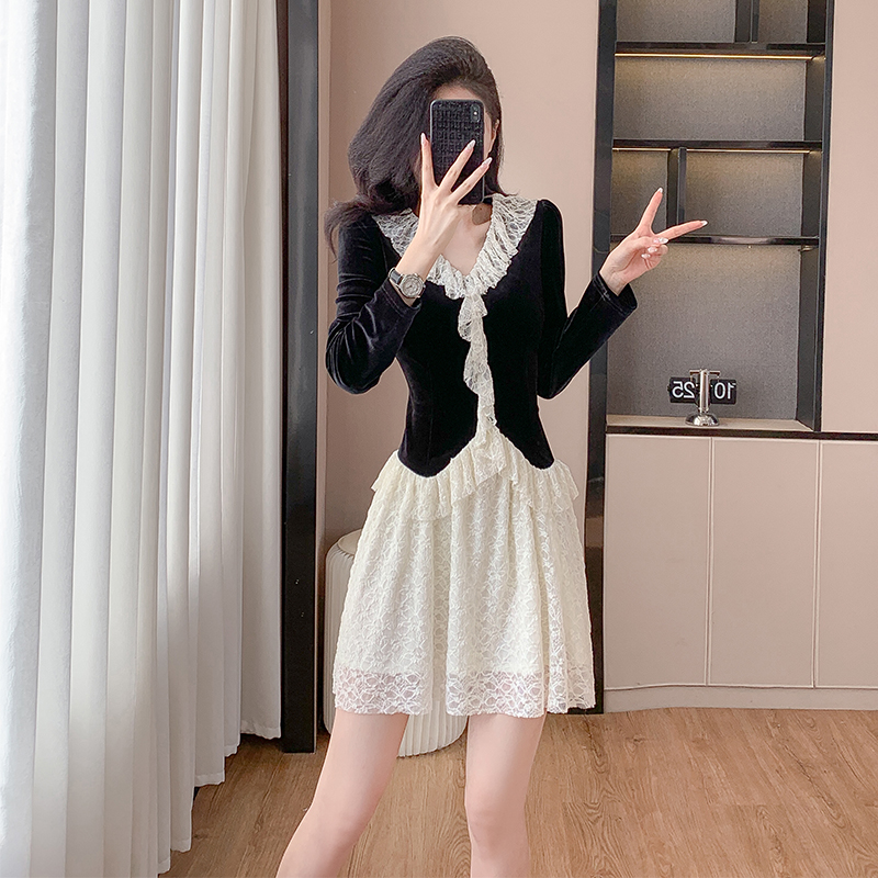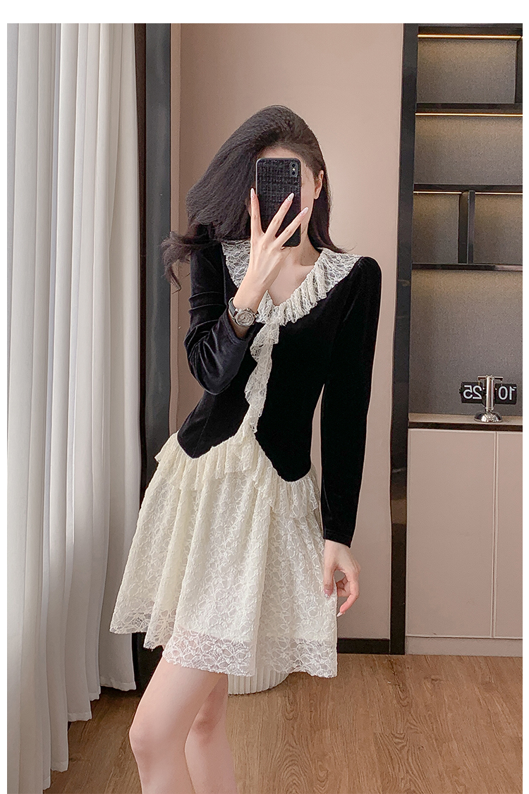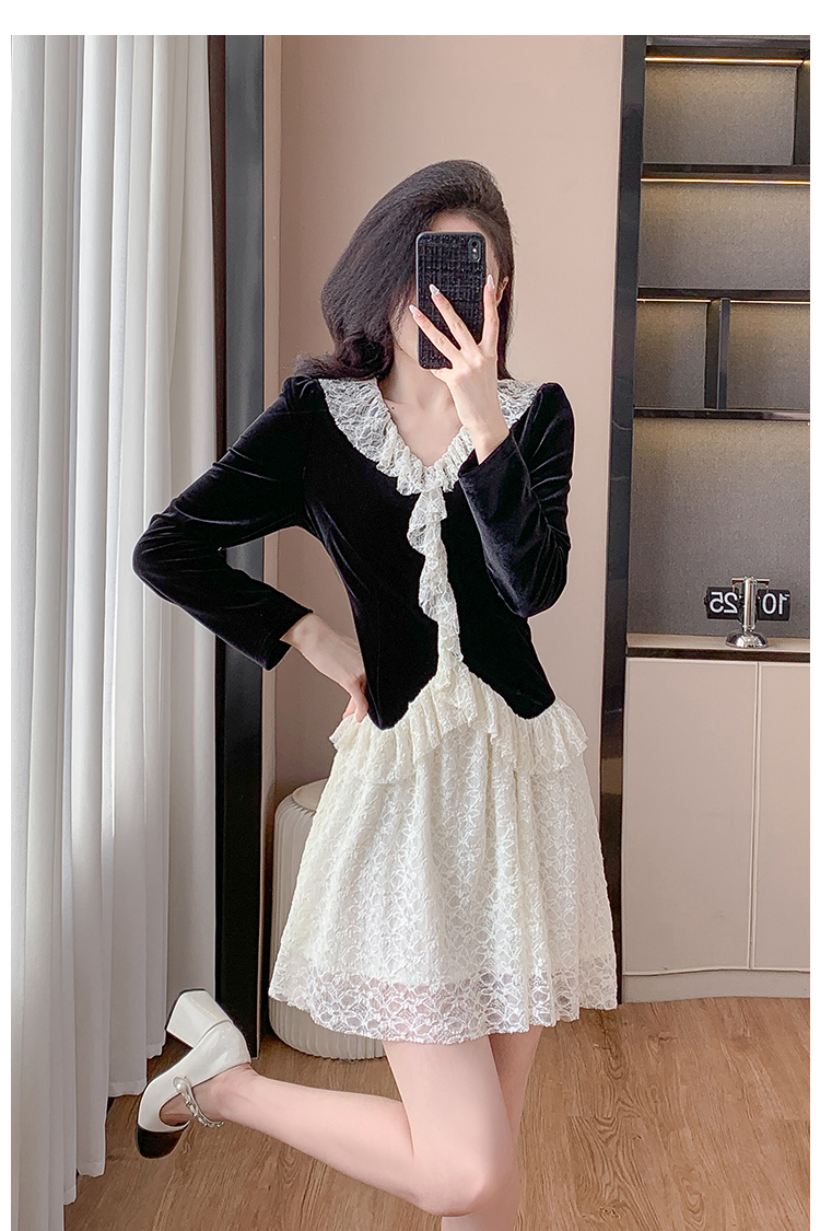MY17291# 新款蕾丝娃娃领连衣裙仙气飘飘短裙固色不掉色女裝貨源服裝批發