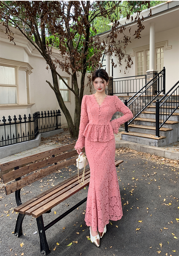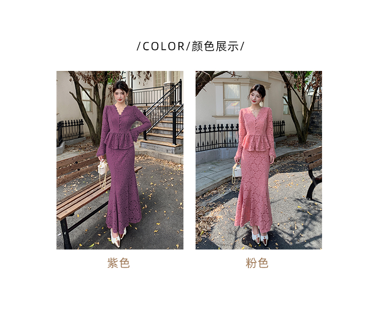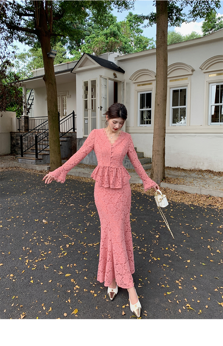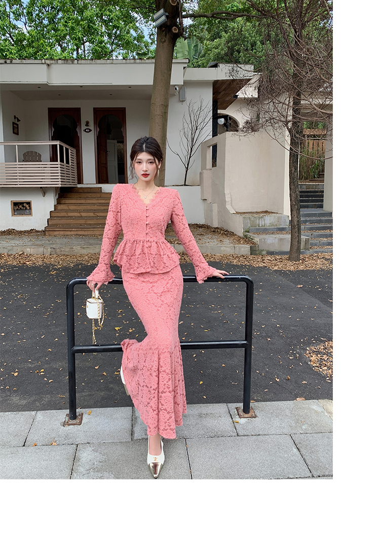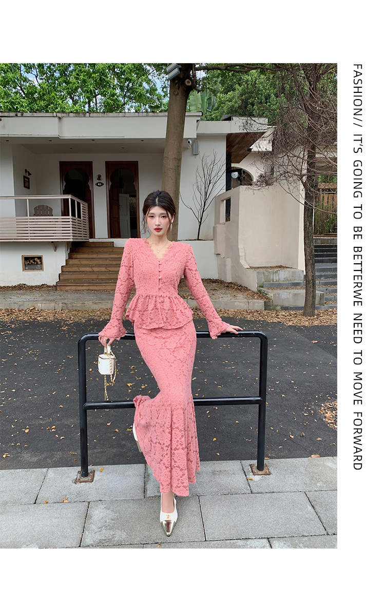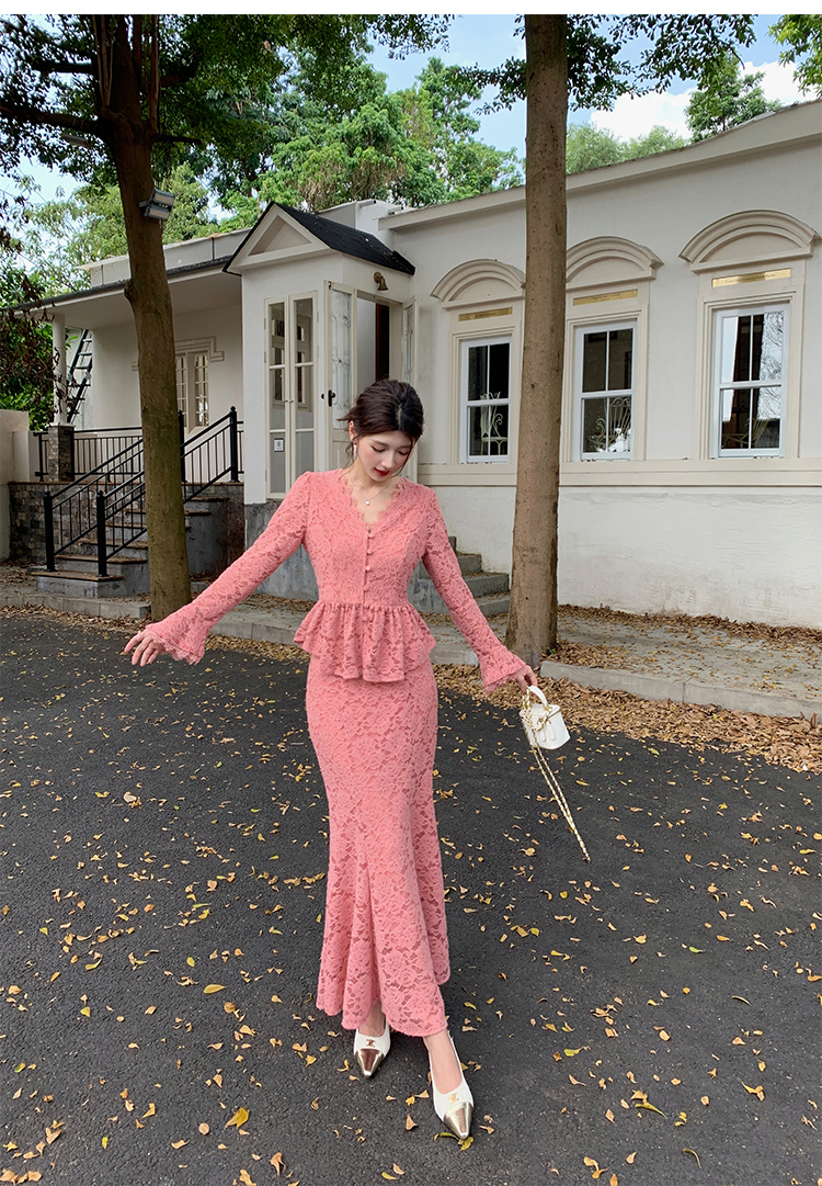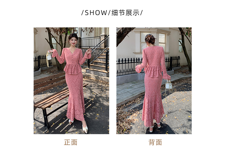 MY17301# 蕾丝上衣高级感包臀鱼尾裙套装设计感打底衬衫女裝貨源服裝批發