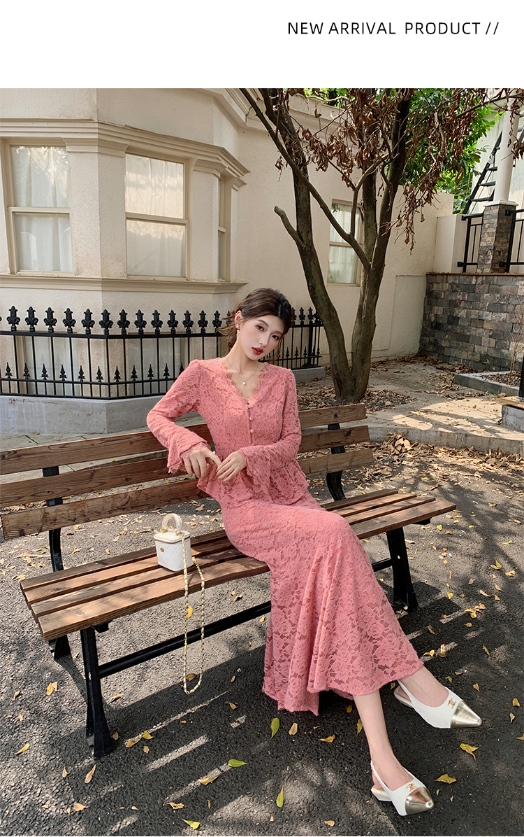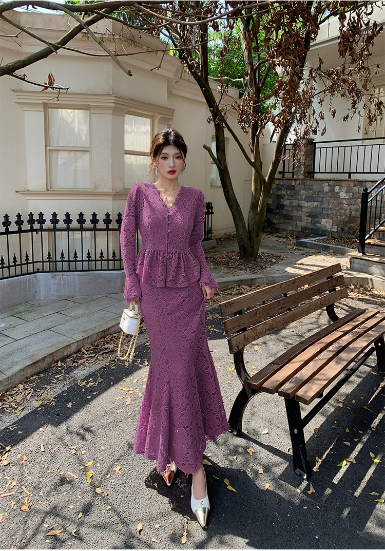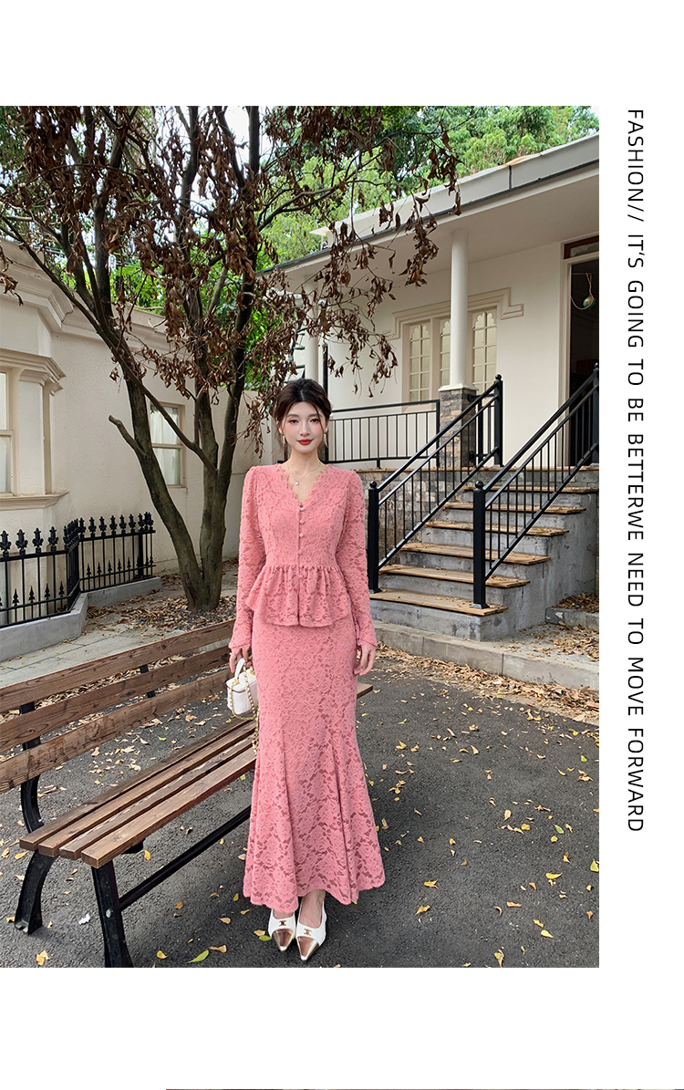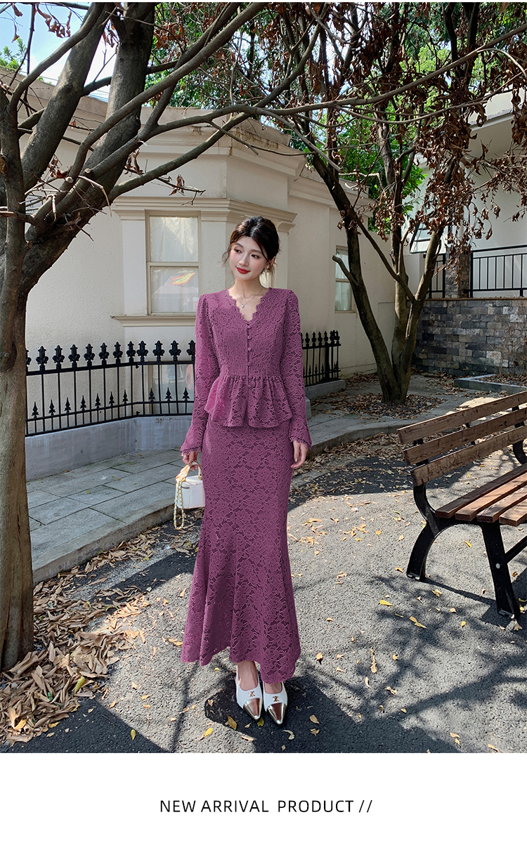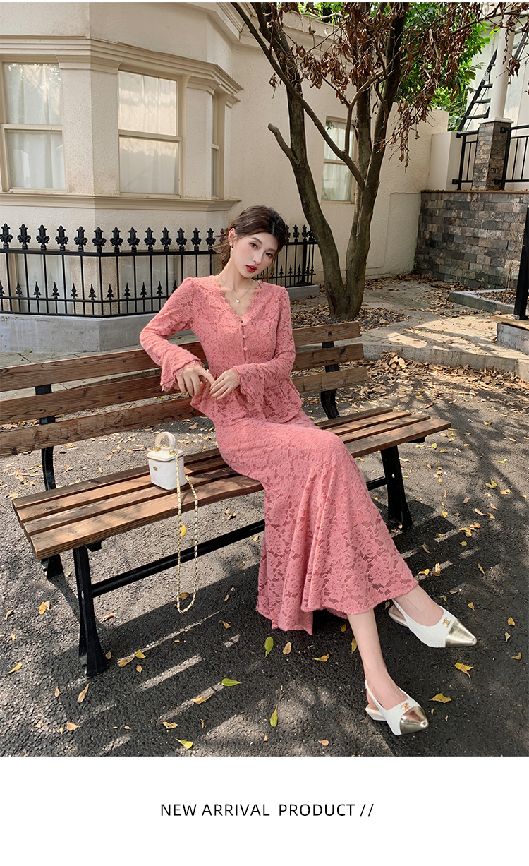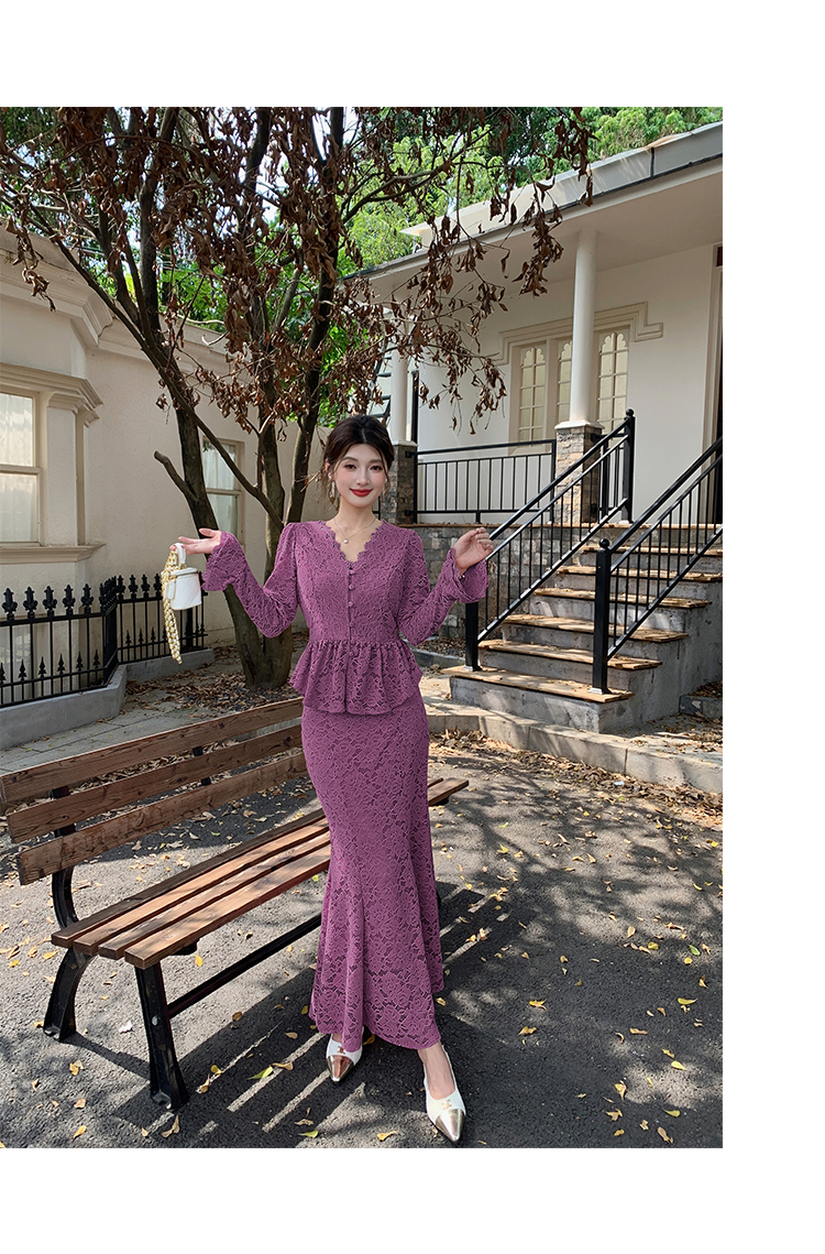 MY17301# 蕾丝上衣高级感包臀鱼尾裙套装设计感打底衬衫女裝貨源服裝批發