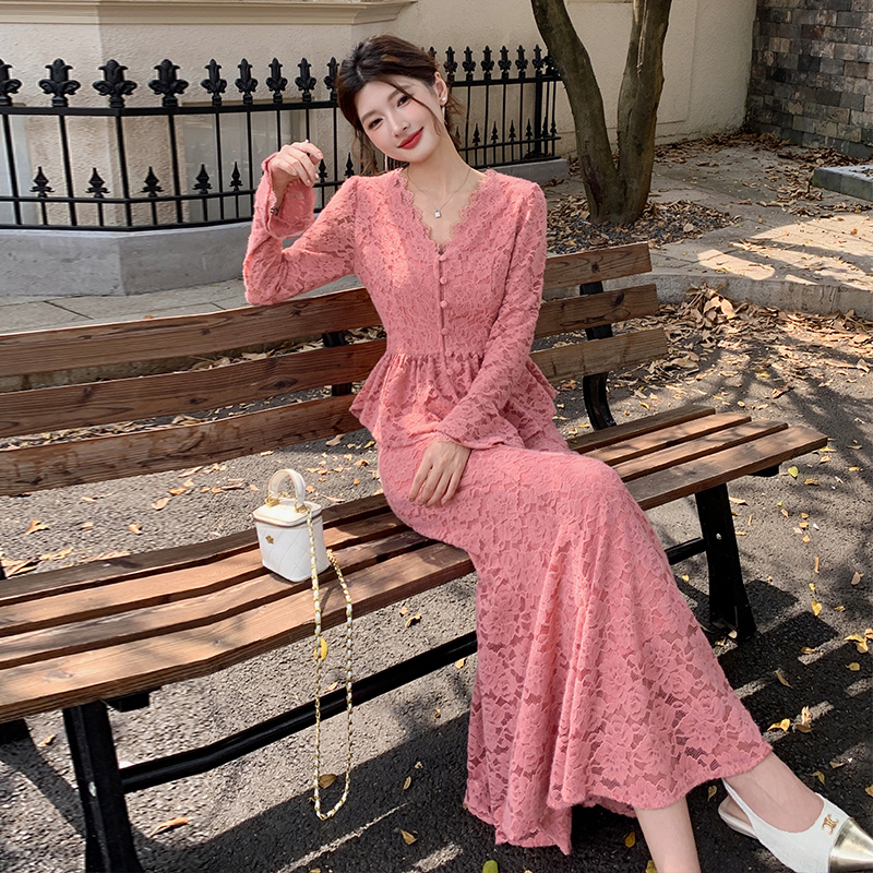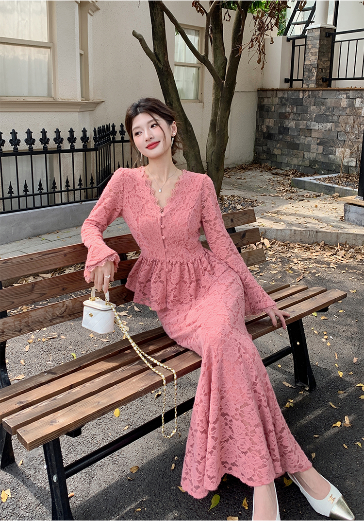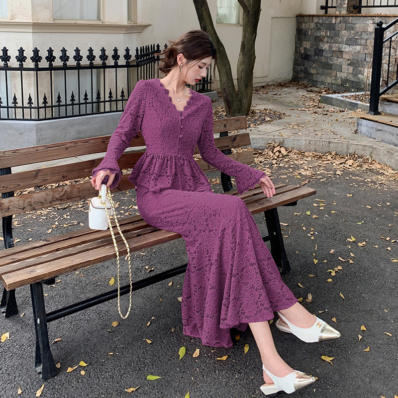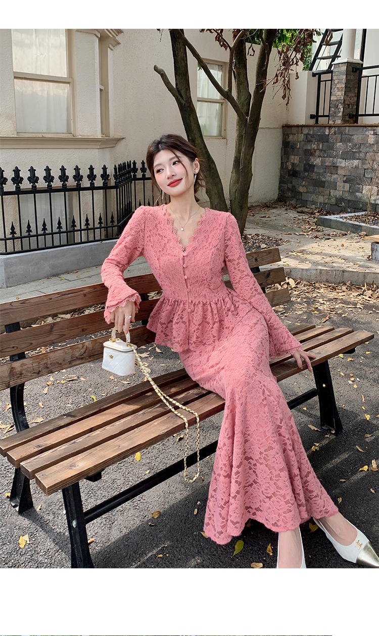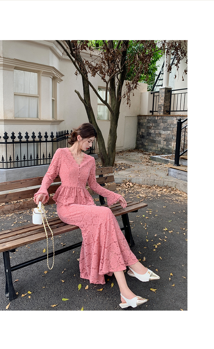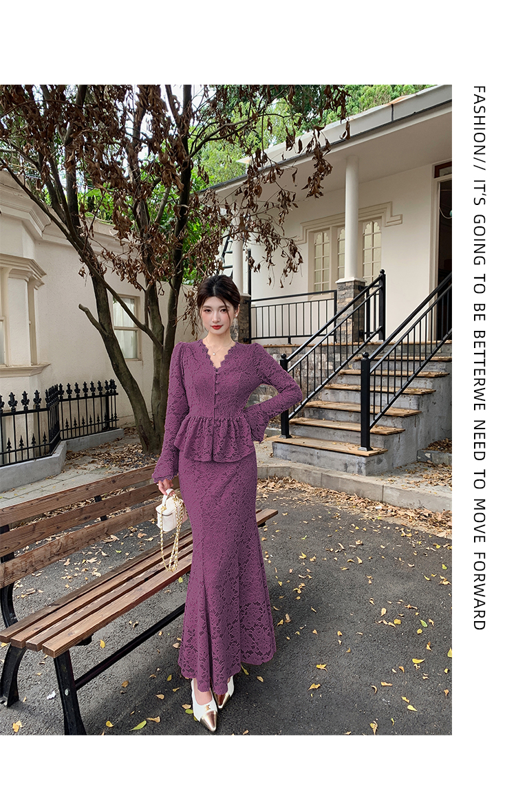MY17301# 蕾丝上衣高级感包臀鱼尾裙套装设计感打底衬衫女裝貨源服裝批發