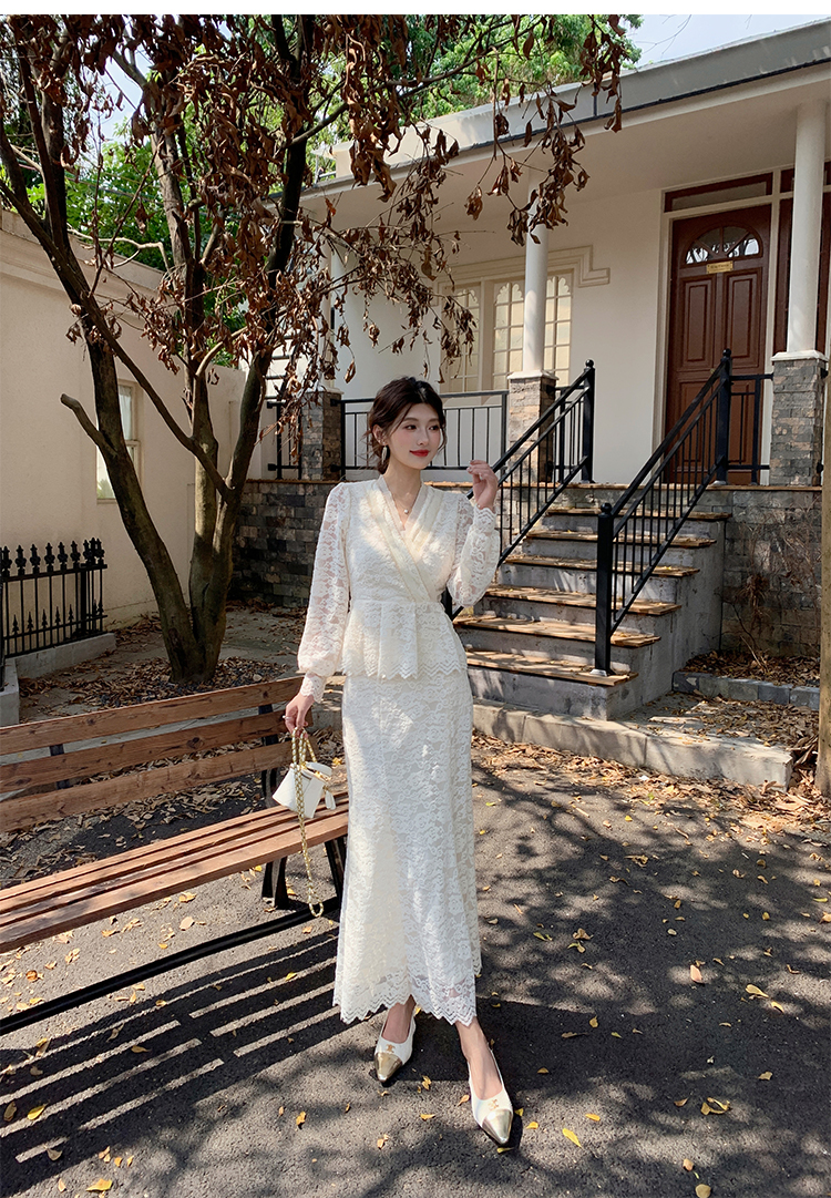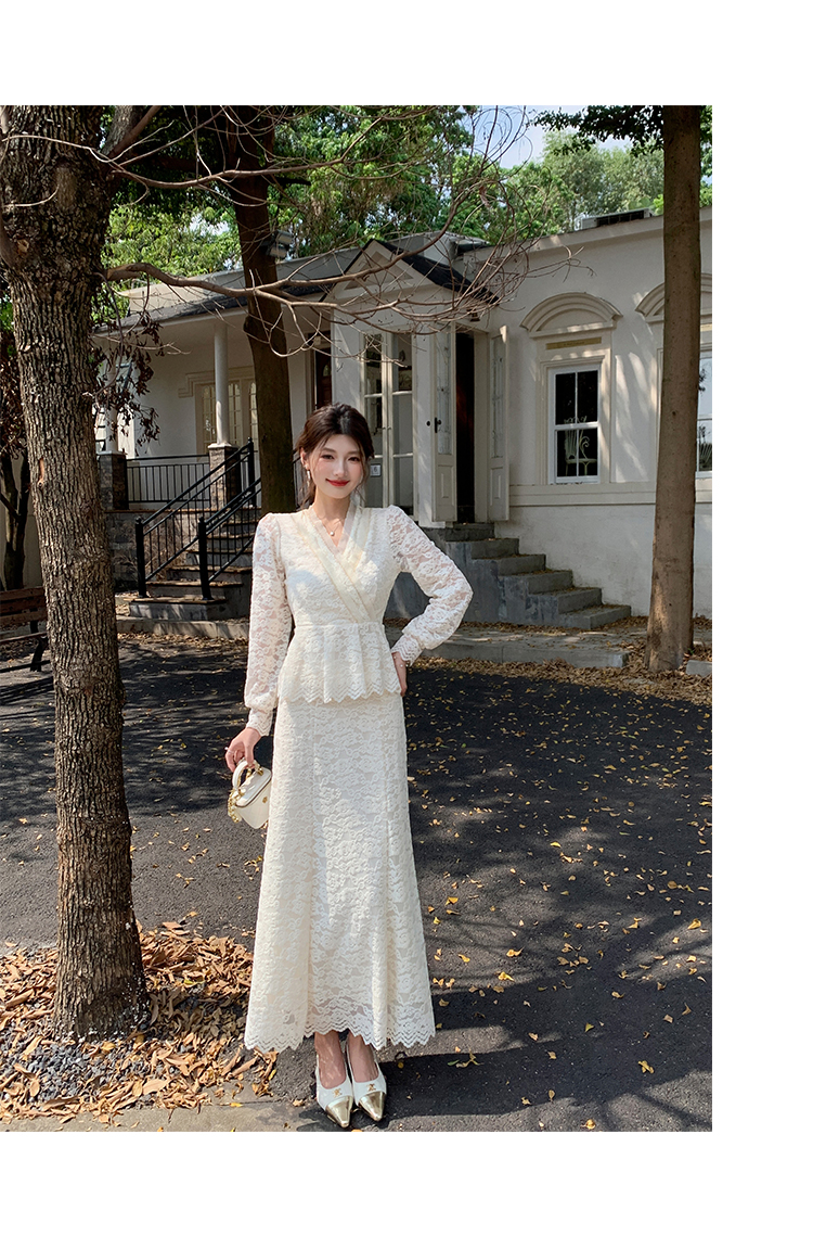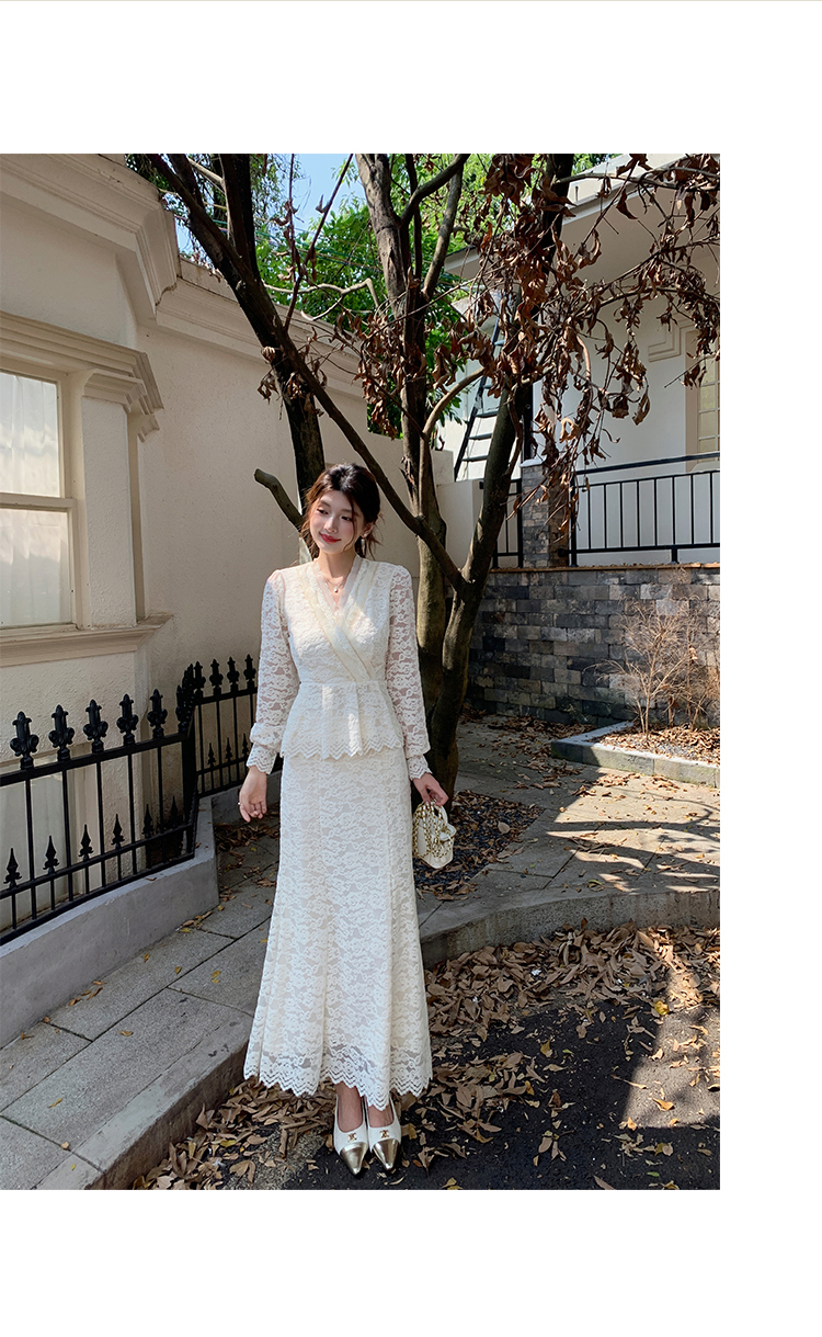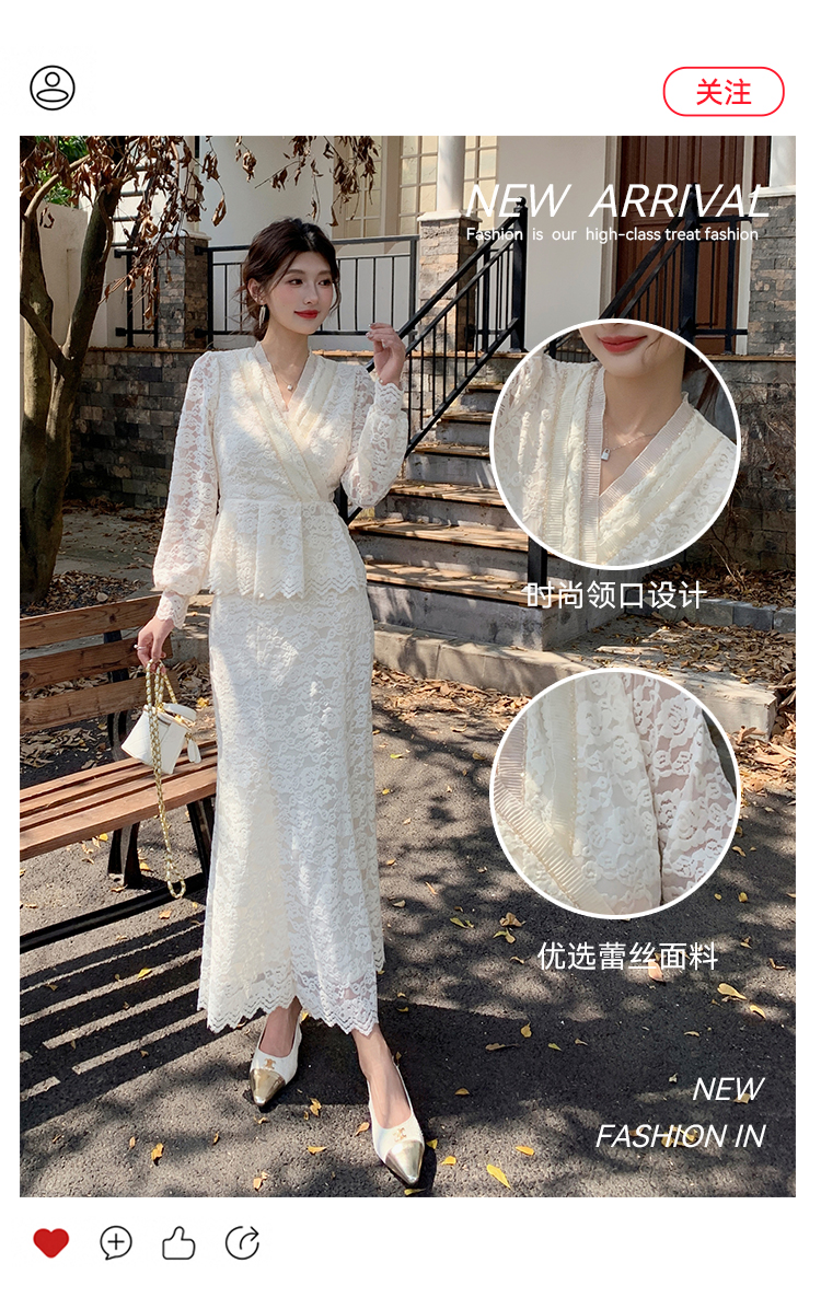 MY17302# 新款镂空蕾丝刺绣上衣半身裙两件套连衣裙女裝貨源服裝批發