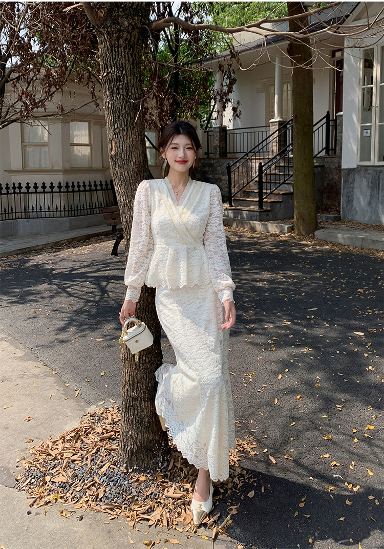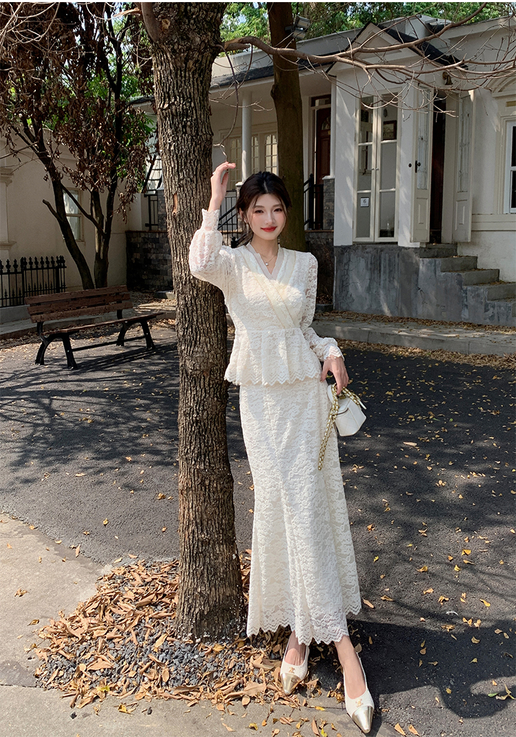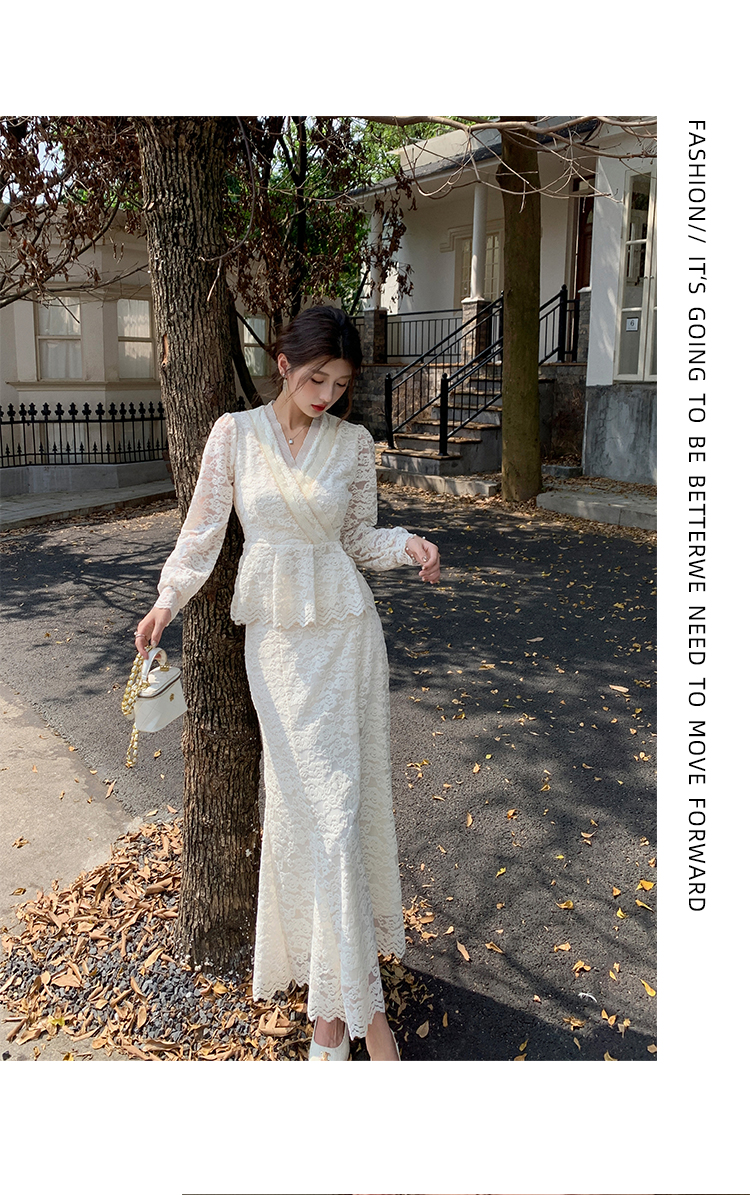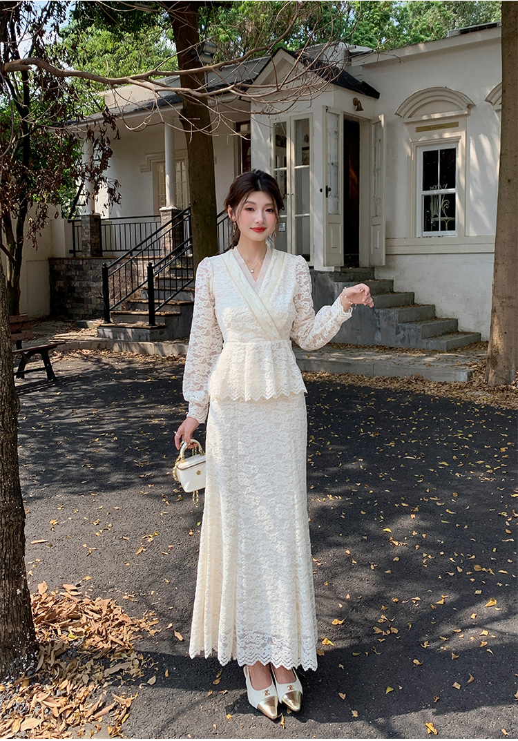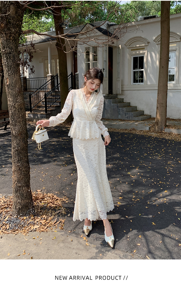 MY17302# 新款镂空蕾丝刺绣上衣半身裙两件套连衣裙女裝貨源服裝批發