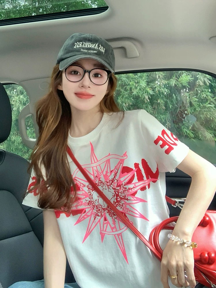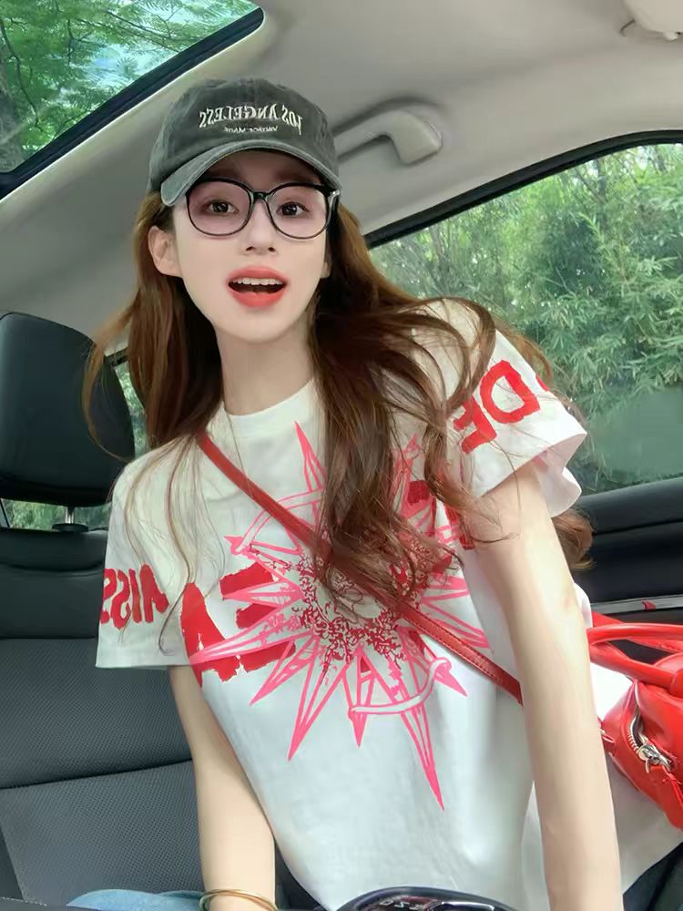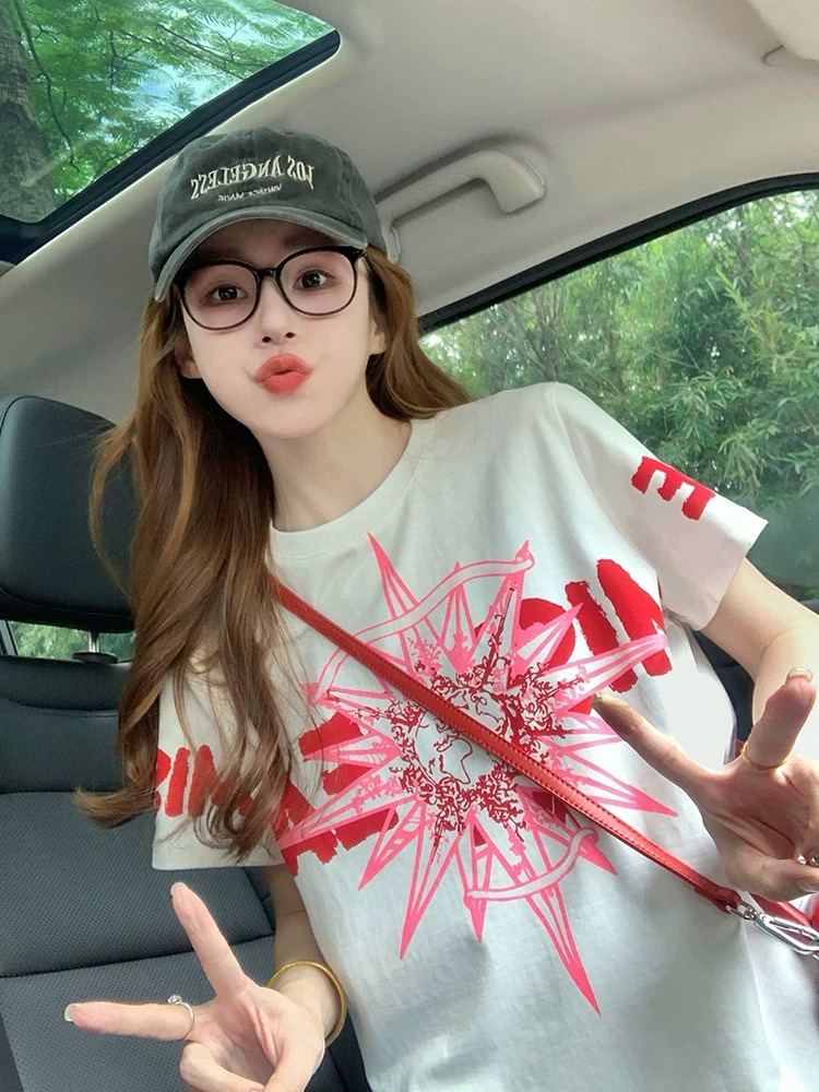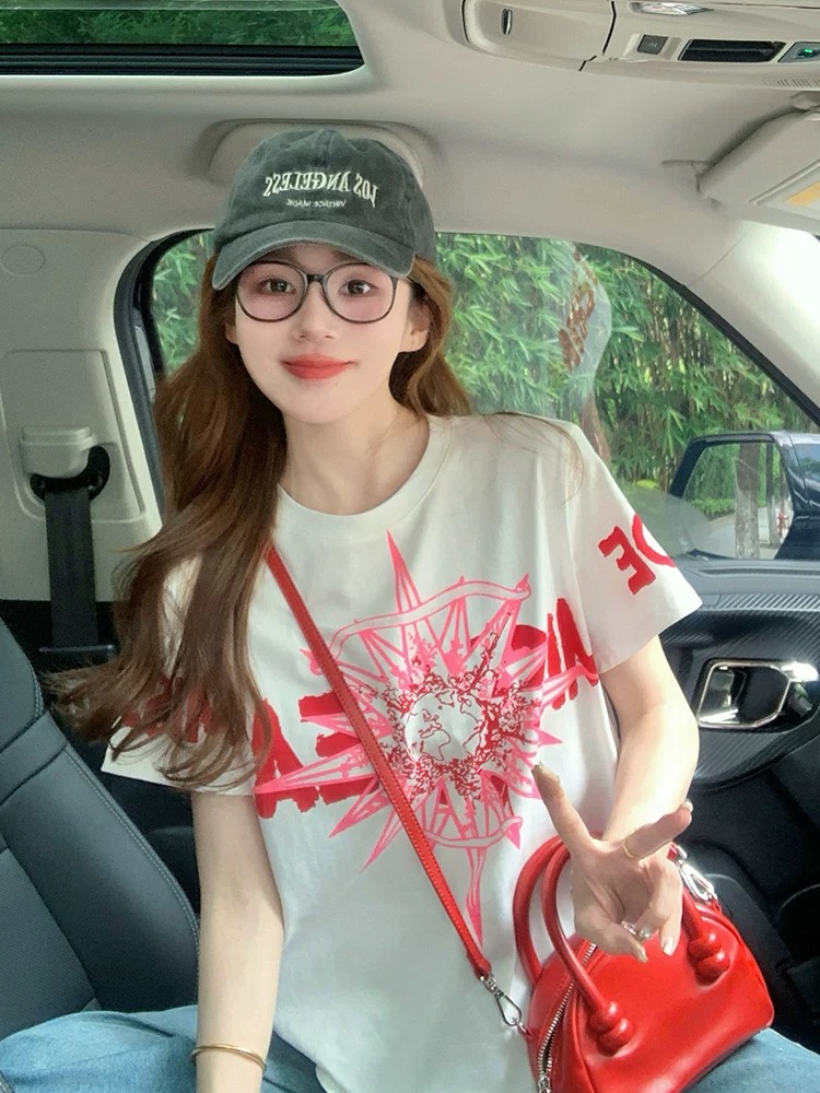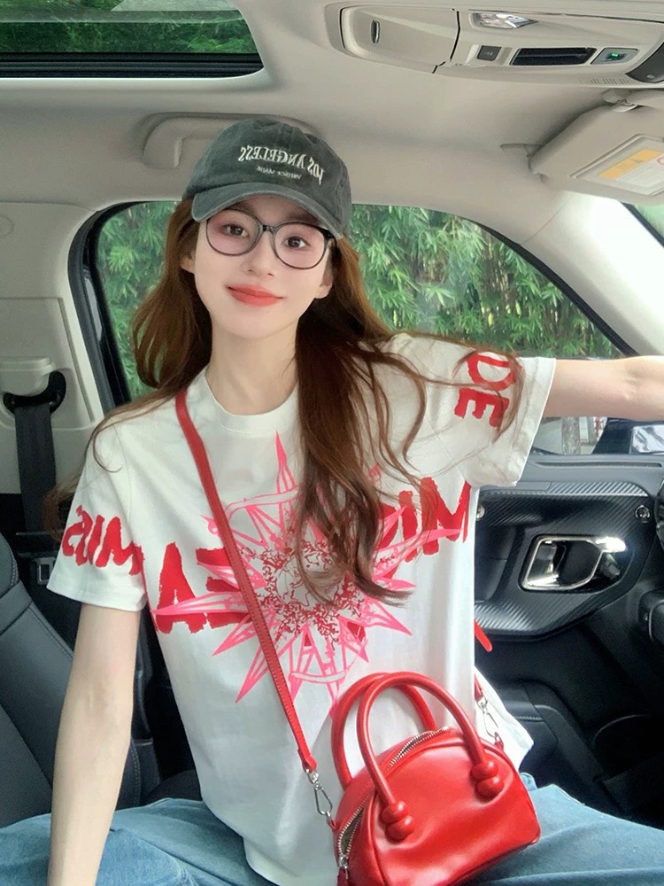 MY17331# 白色小香风潮牌短袖t恤新款夏季欧货洋气高级正肩纯棉上衣女裝貨源服裝批發