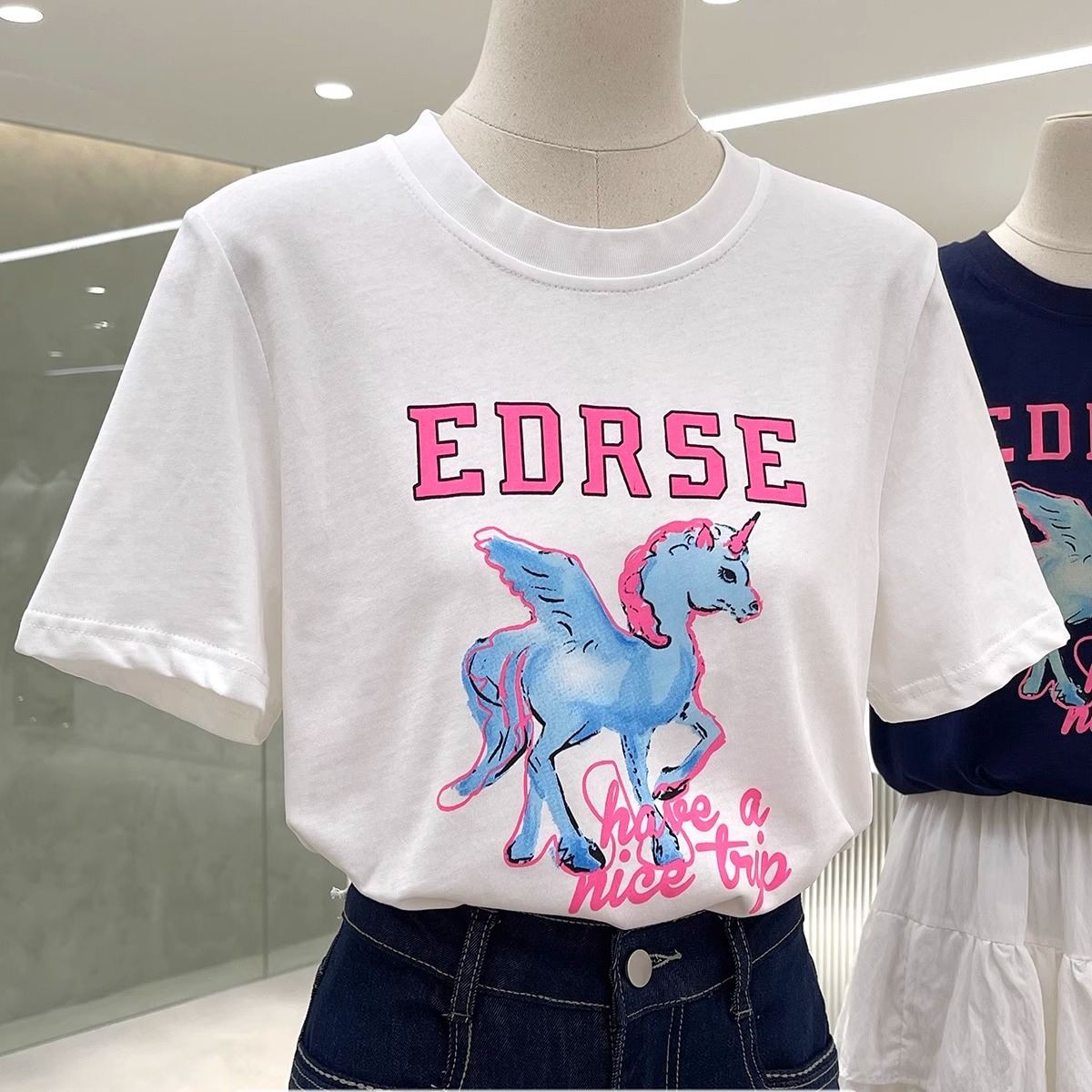 MY17349# 21支纯棉100%棉 夏装慵懒宽松卡通印花短袖T恤韩系女裝貨源服裝批發