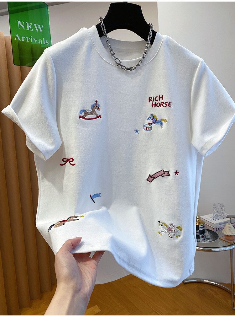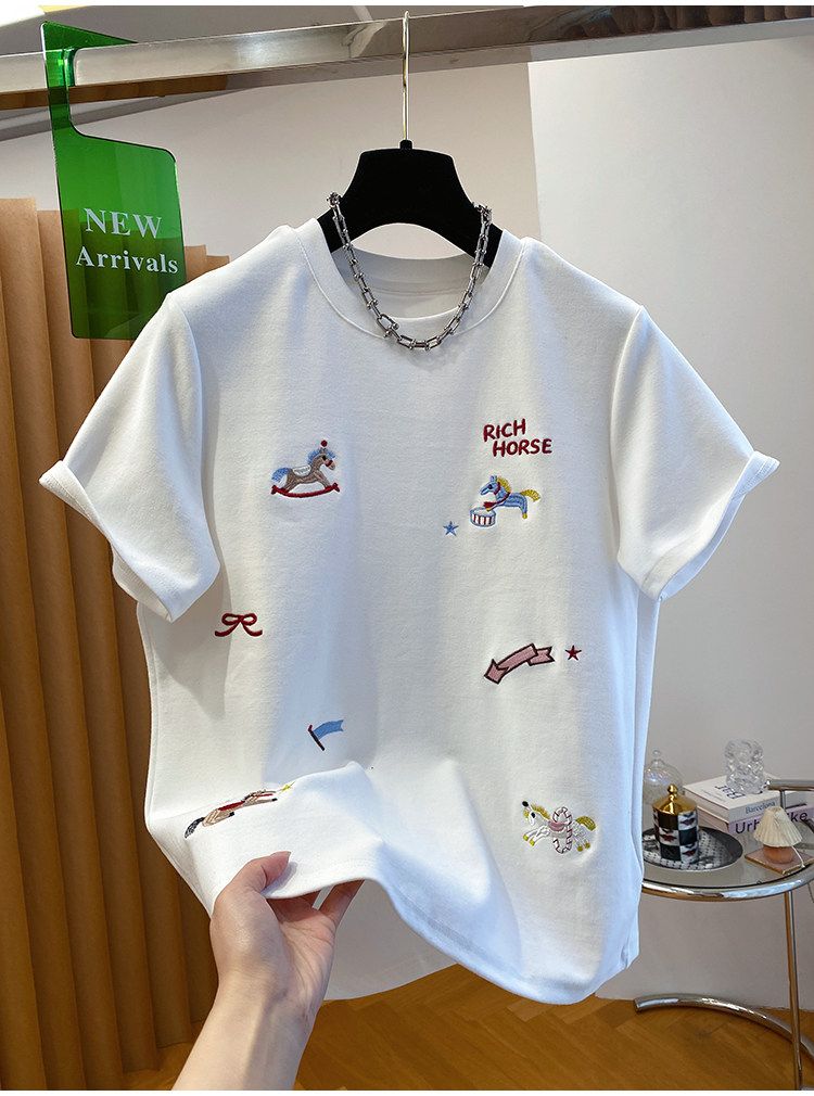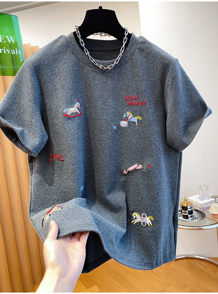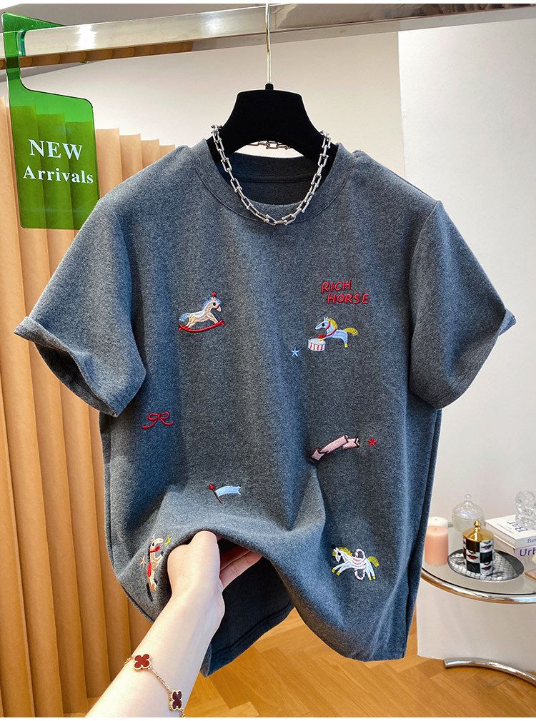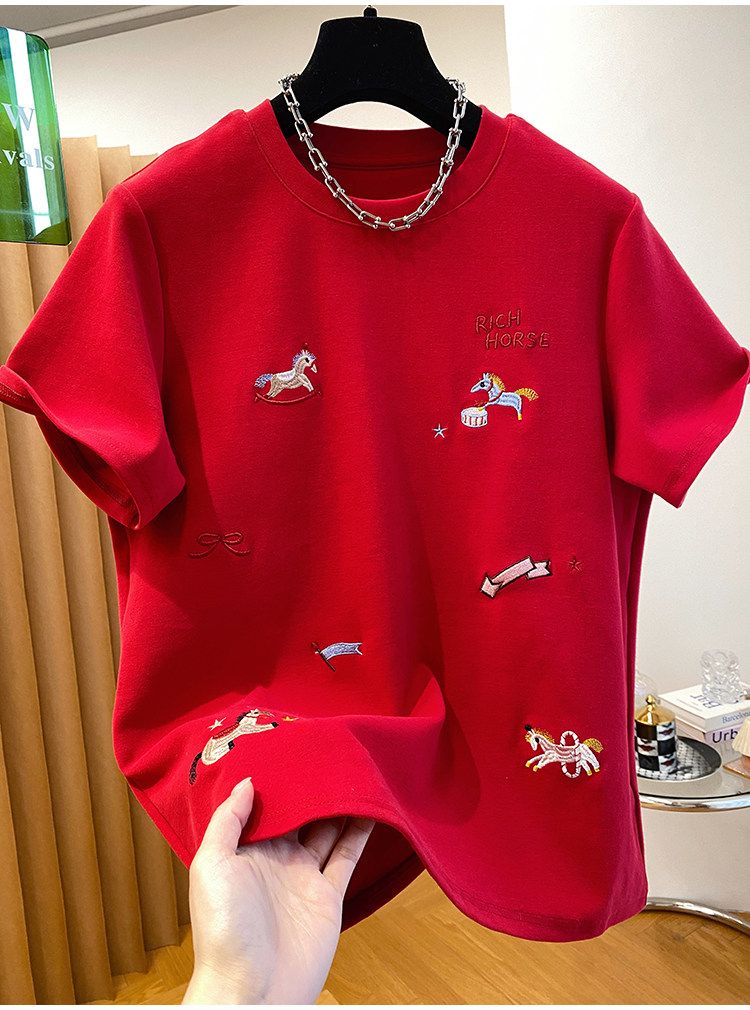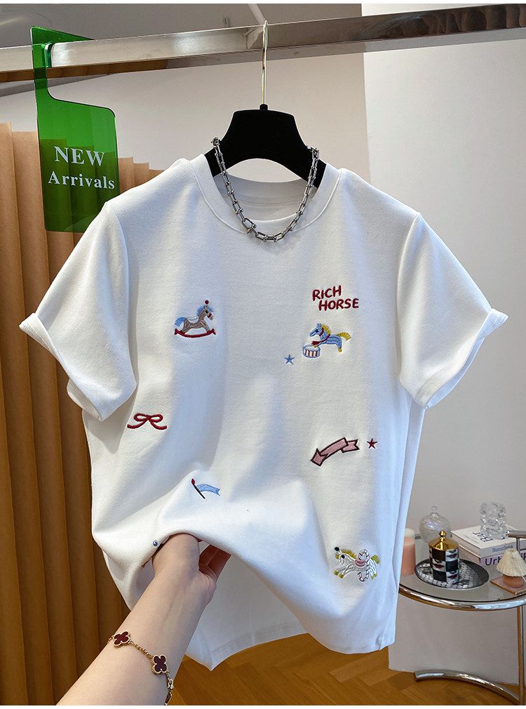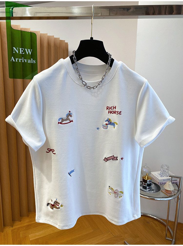 MY17352# 德绒特大码300斤刺绣短袖T恤新款宽松显瘦上衣女裝貨源服裝批發