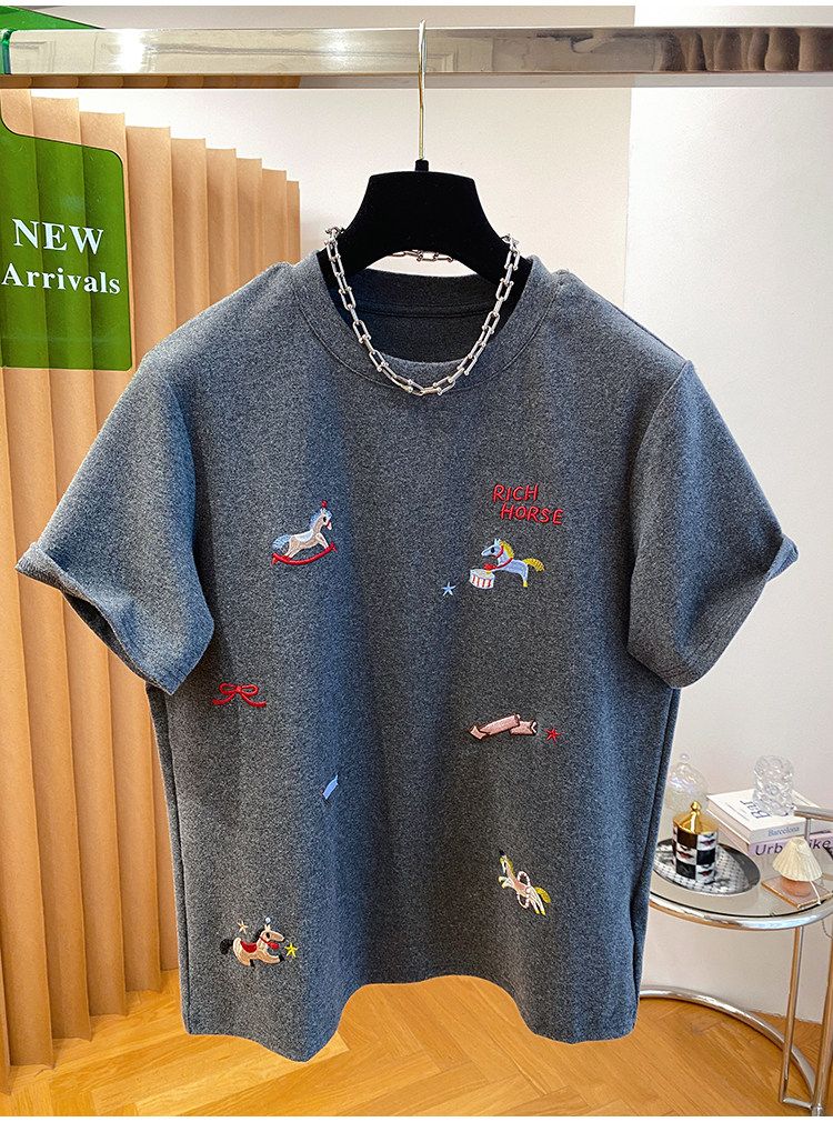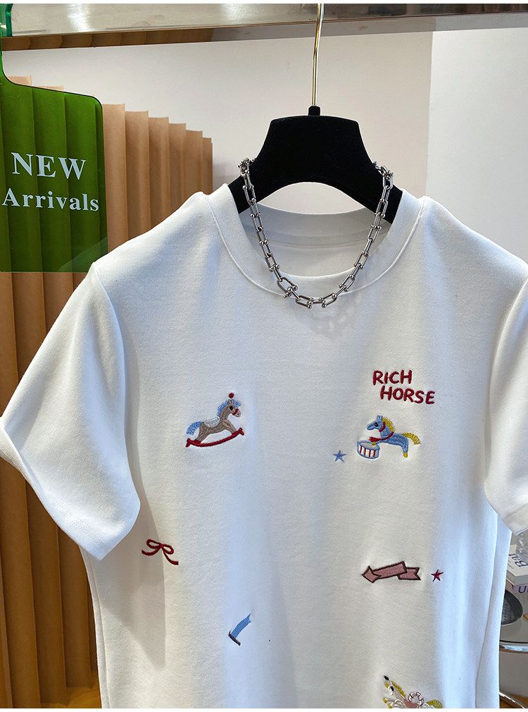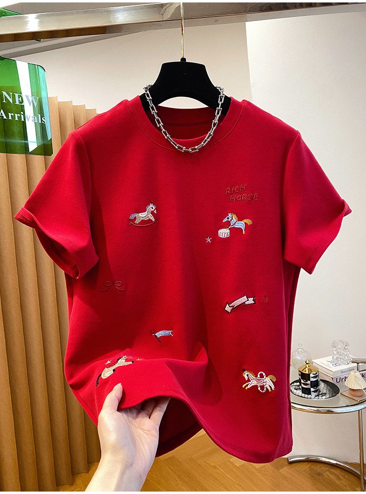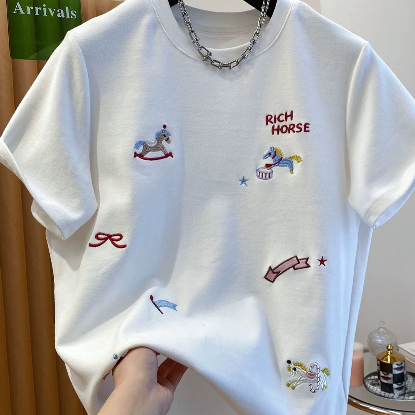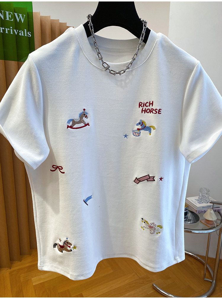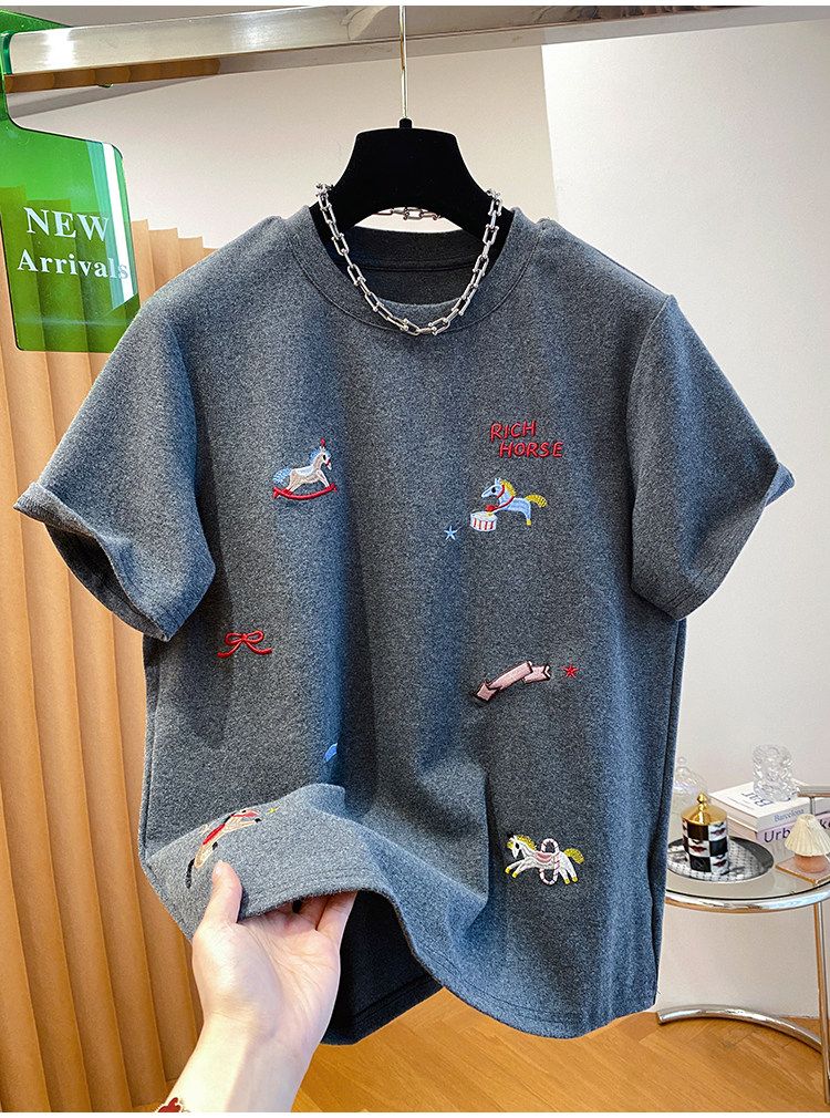 MY17352# 德绒特大码300斤刺绣短袖T恤新款宽松显瘦上衣女裝貨源服裝批發