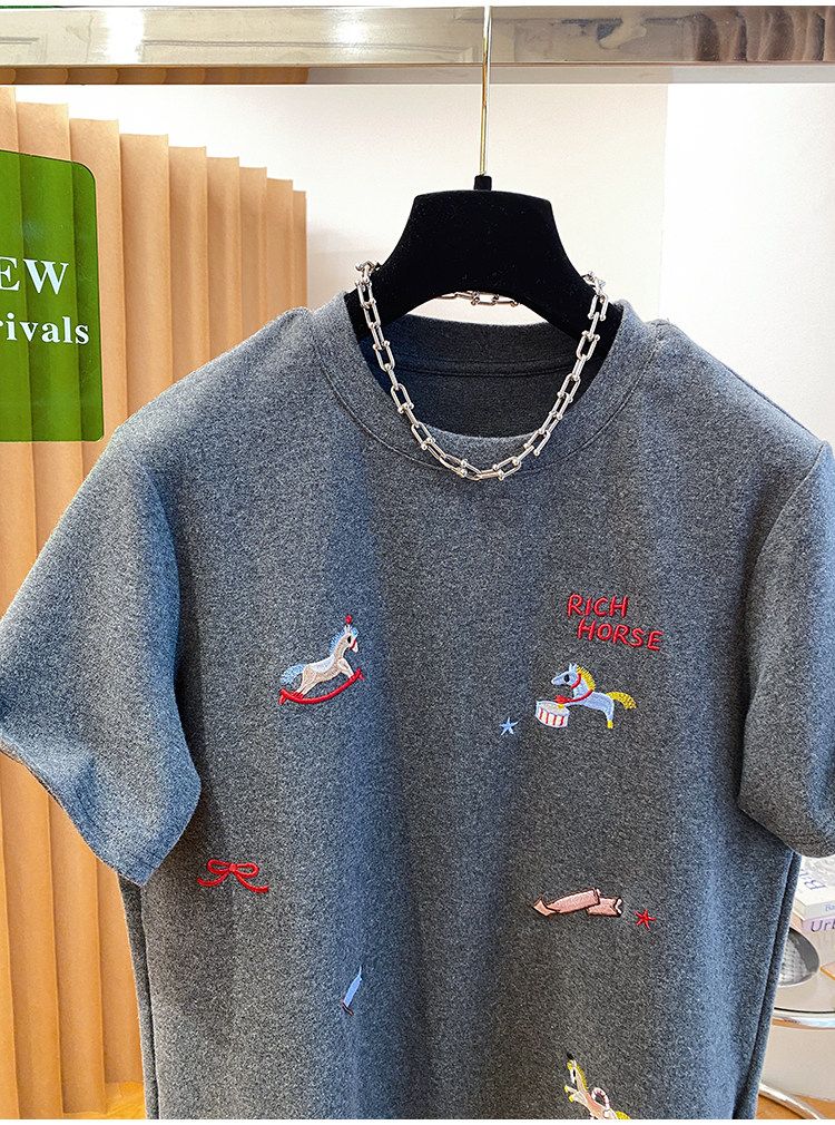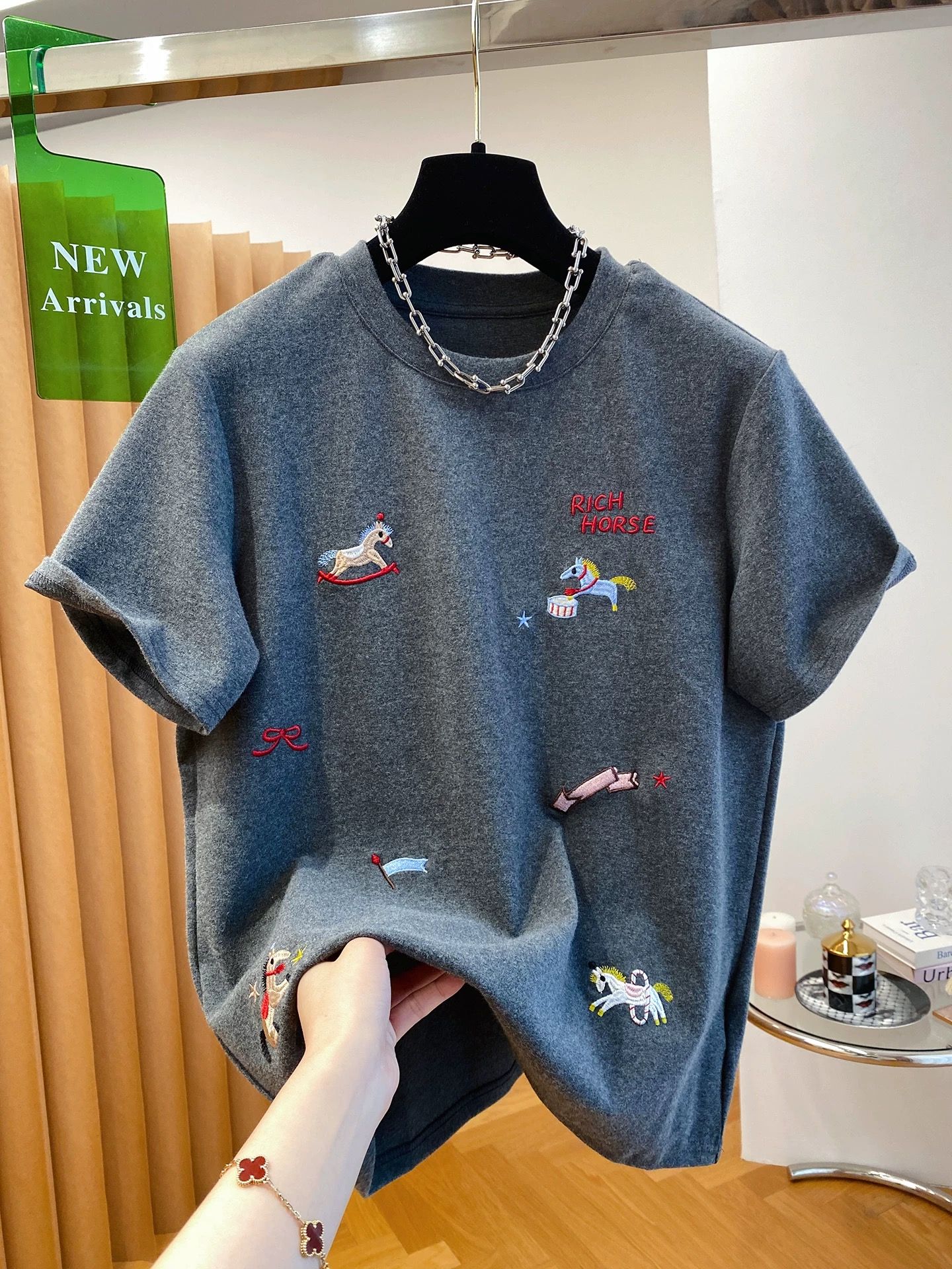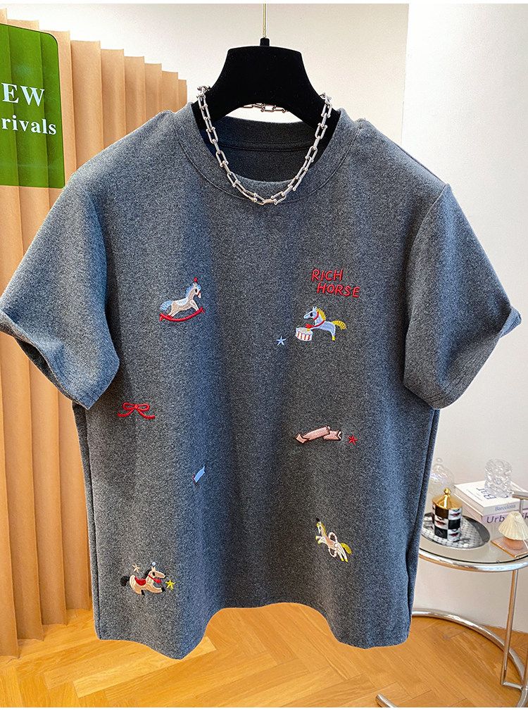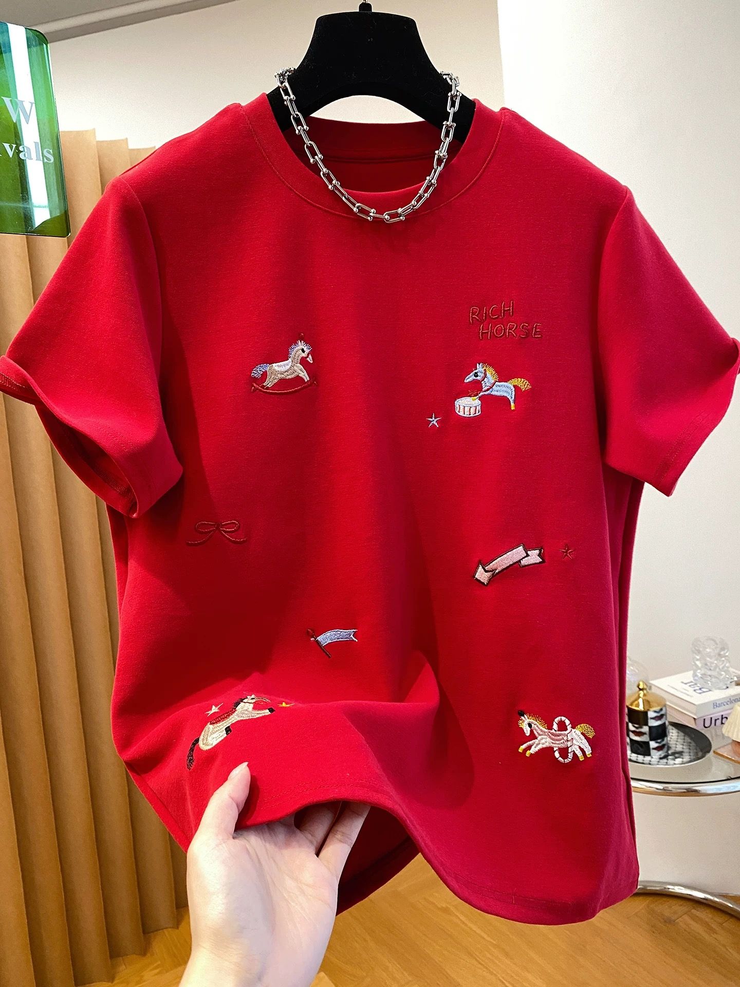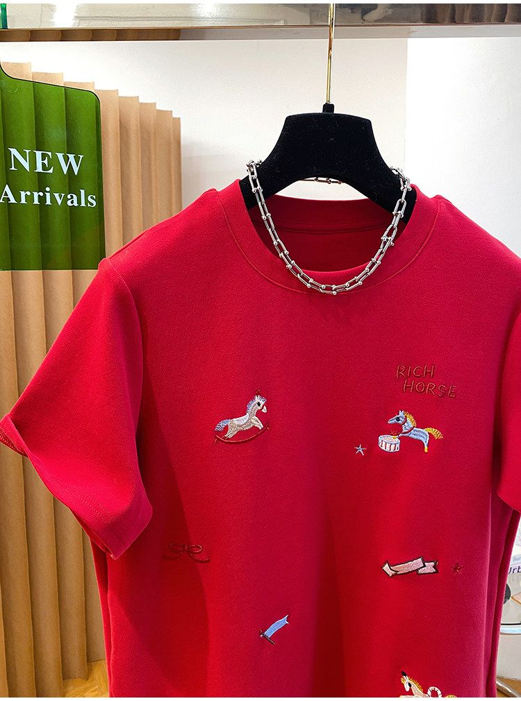 MY17352# 德绒特大码300斤刺绣短袖T恤新款宽松显瘦上衣女裝貨源服裝批發
