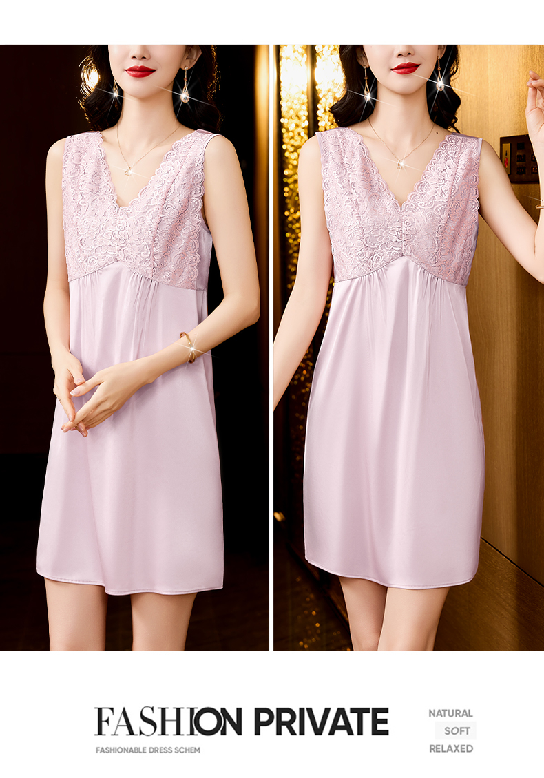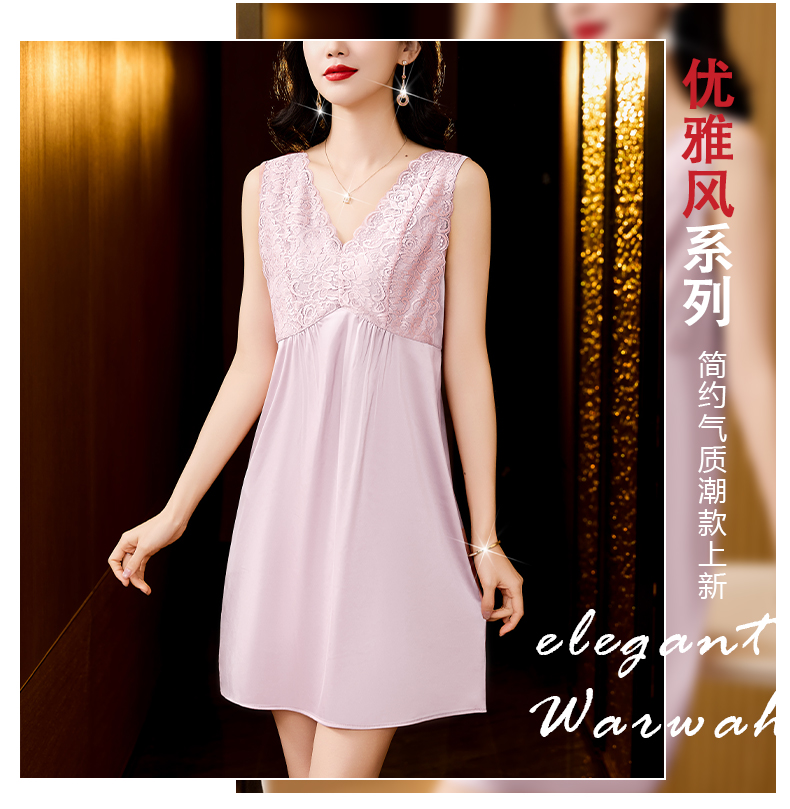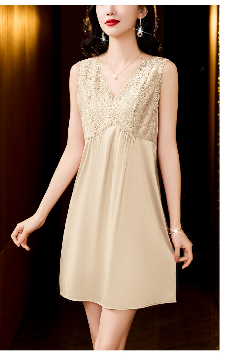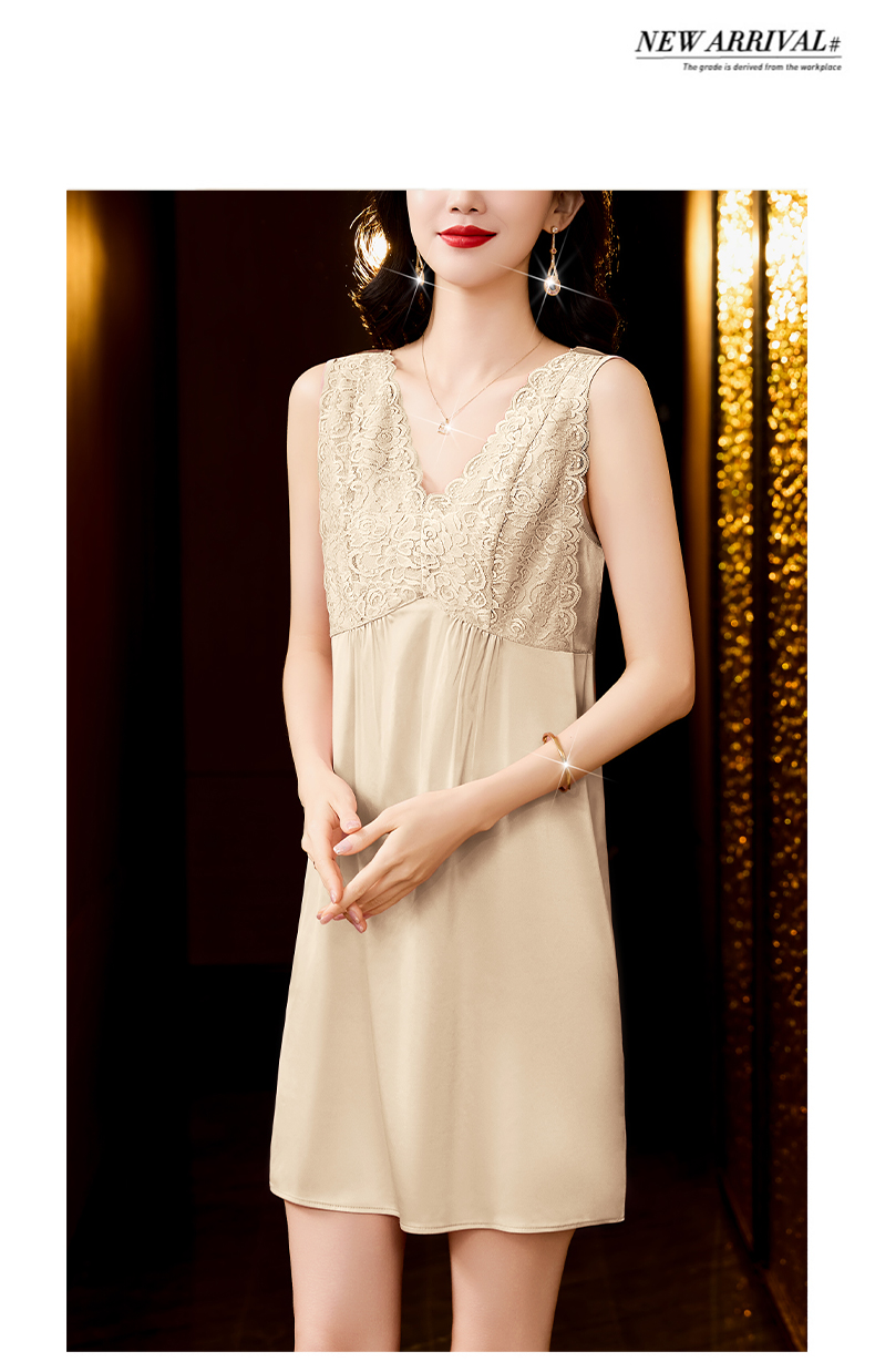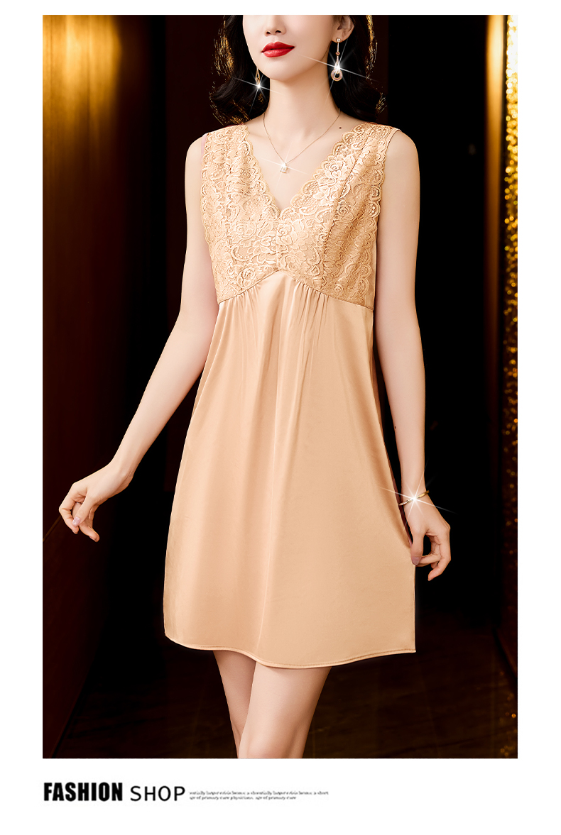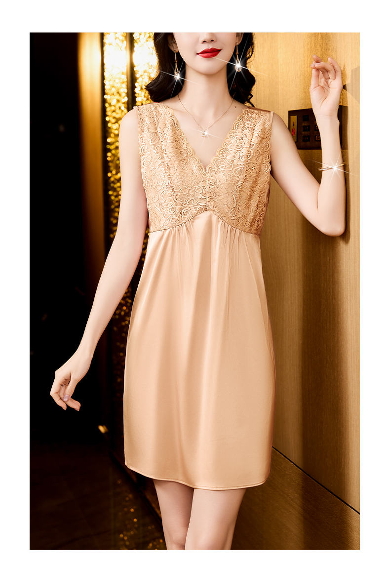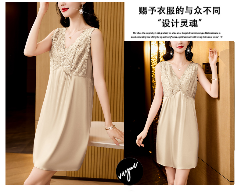 MY17384# 新款蕾丝中长款弹力缎面背心裙女裝貨源服裝批發