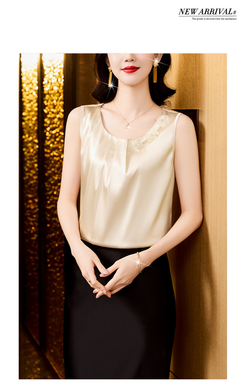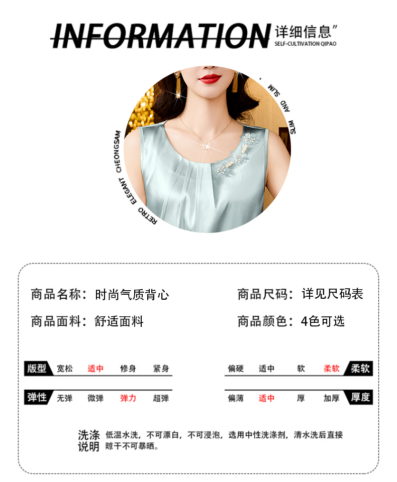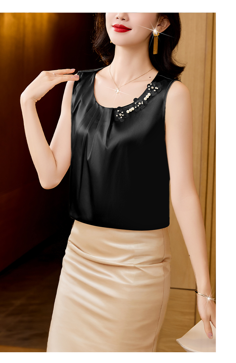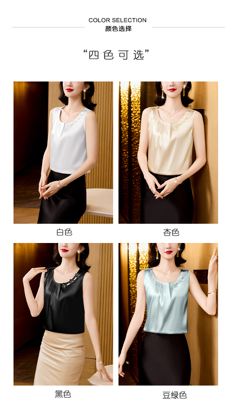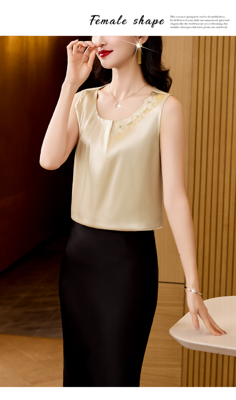 MY17391# 圆领钉珠花朵春秋新款时尚洋气内搭缎面背心女裝貨源服裝批發