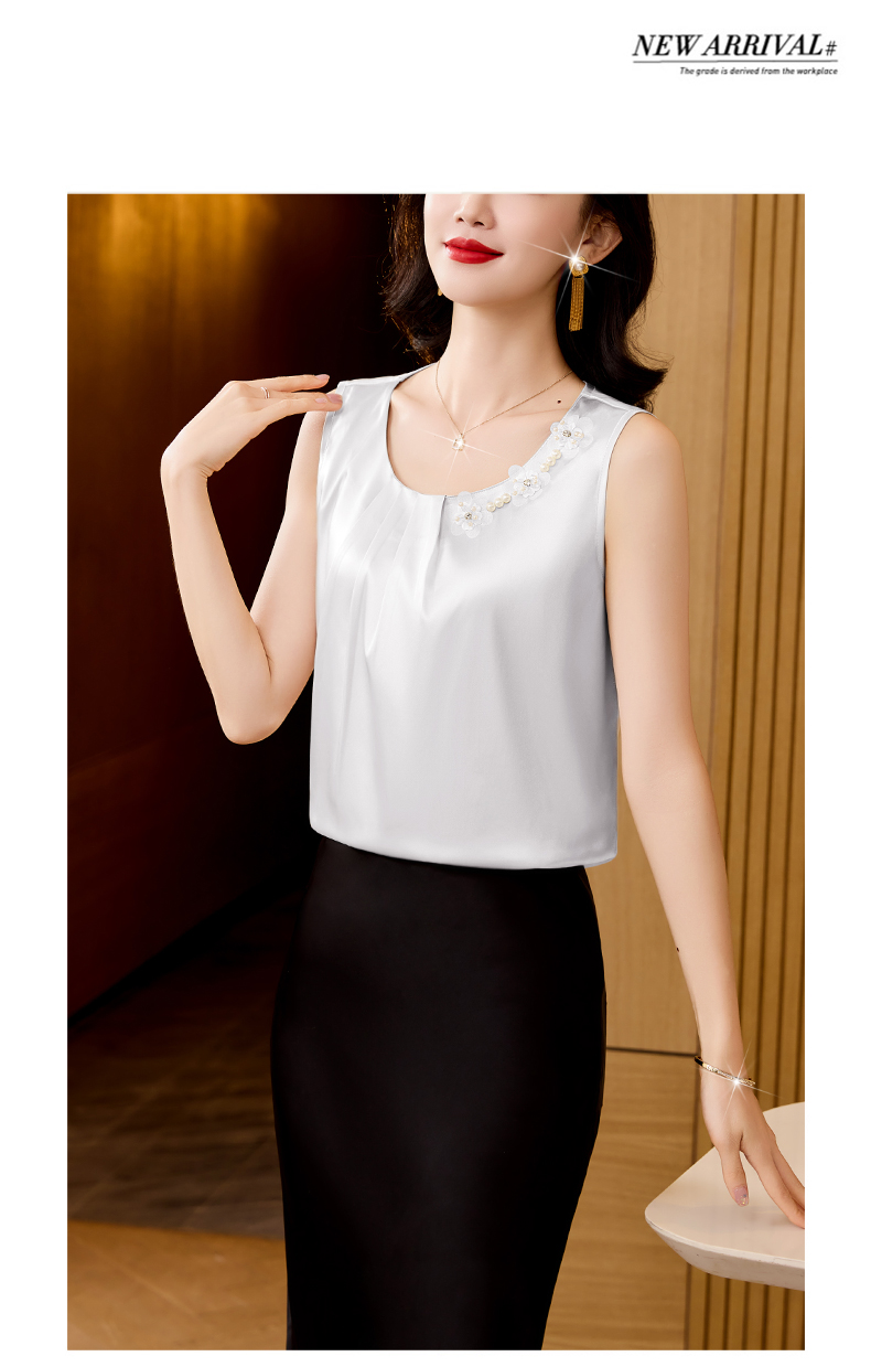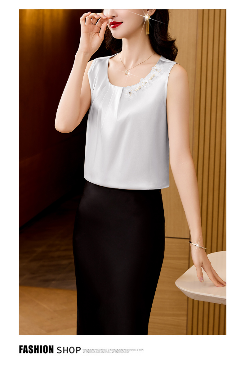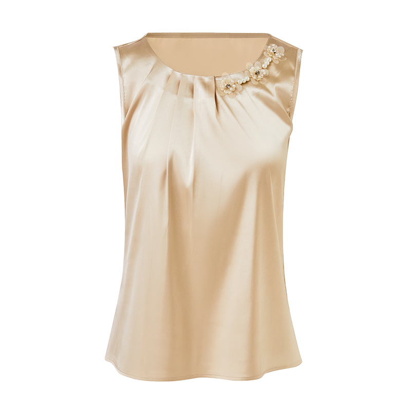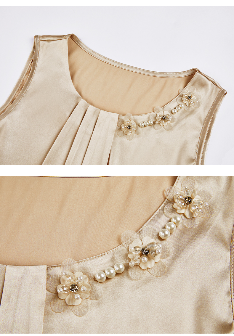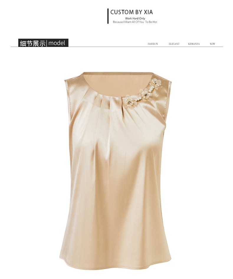 MY17391# 圆领钉珠花朵春秋新款时尚洋气内搭缎面背心女裝貨源服裝批發