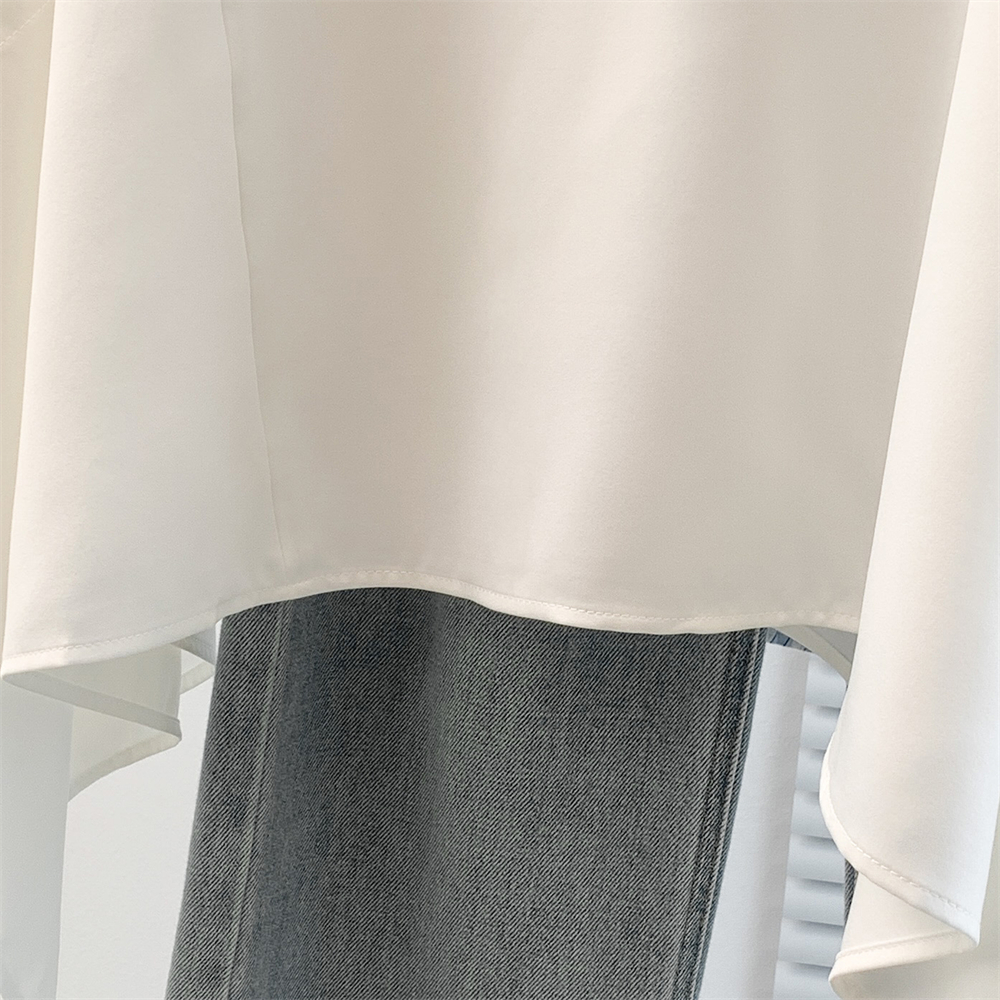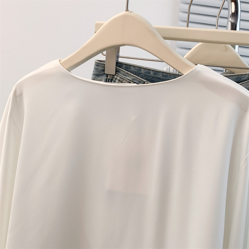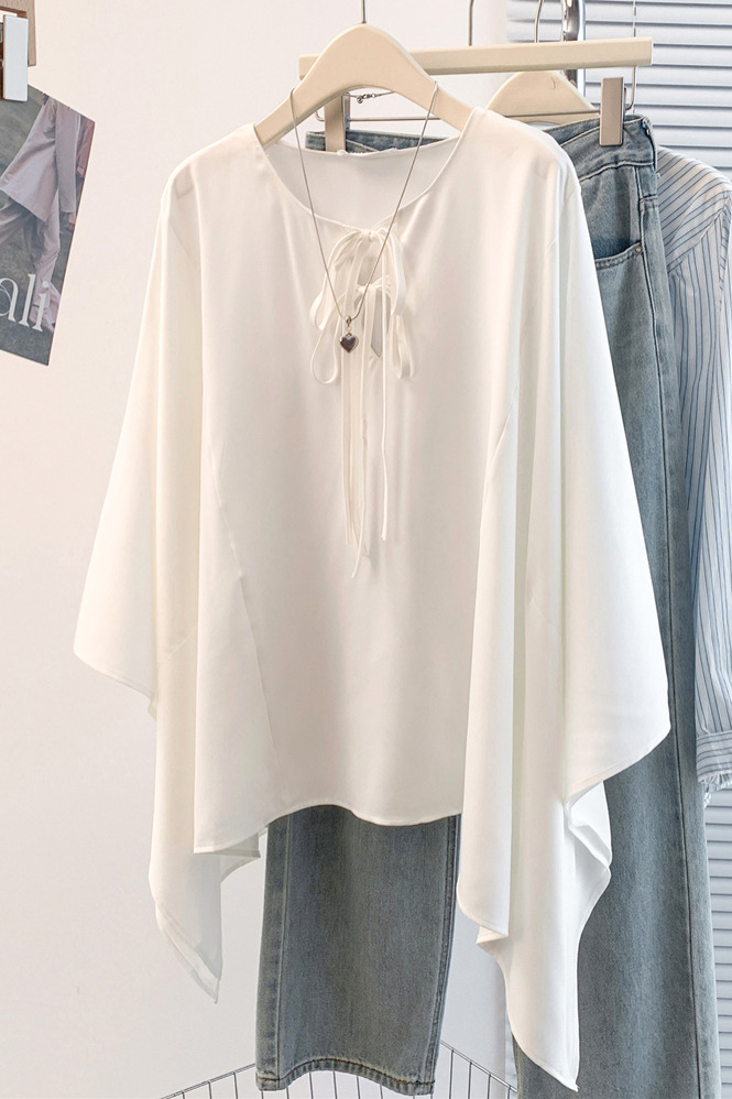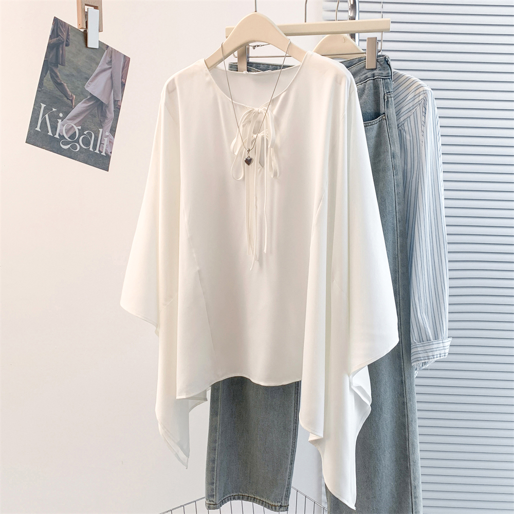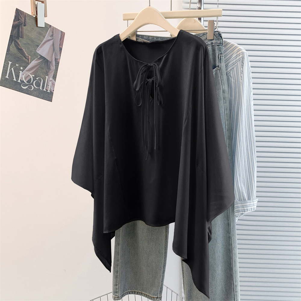 MY17433# 新款别致设计系带衬衫气质感缎面纯色宽松蝙蝠袖上衣女女裝貨源服裝批發