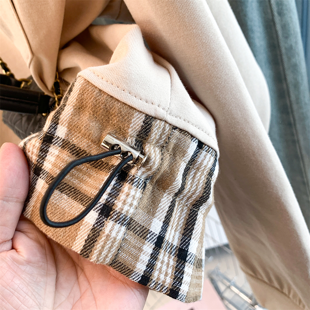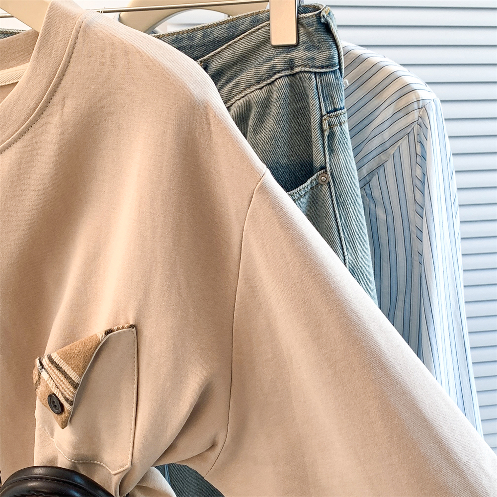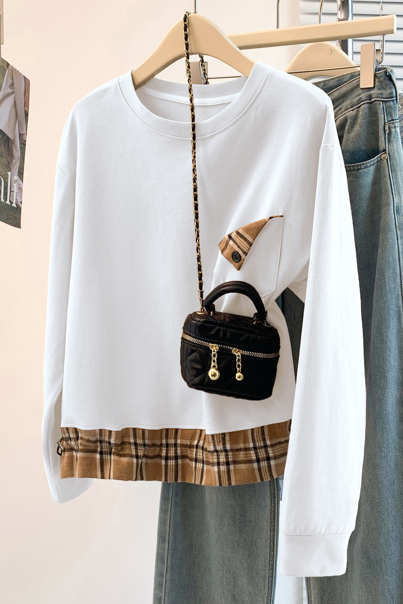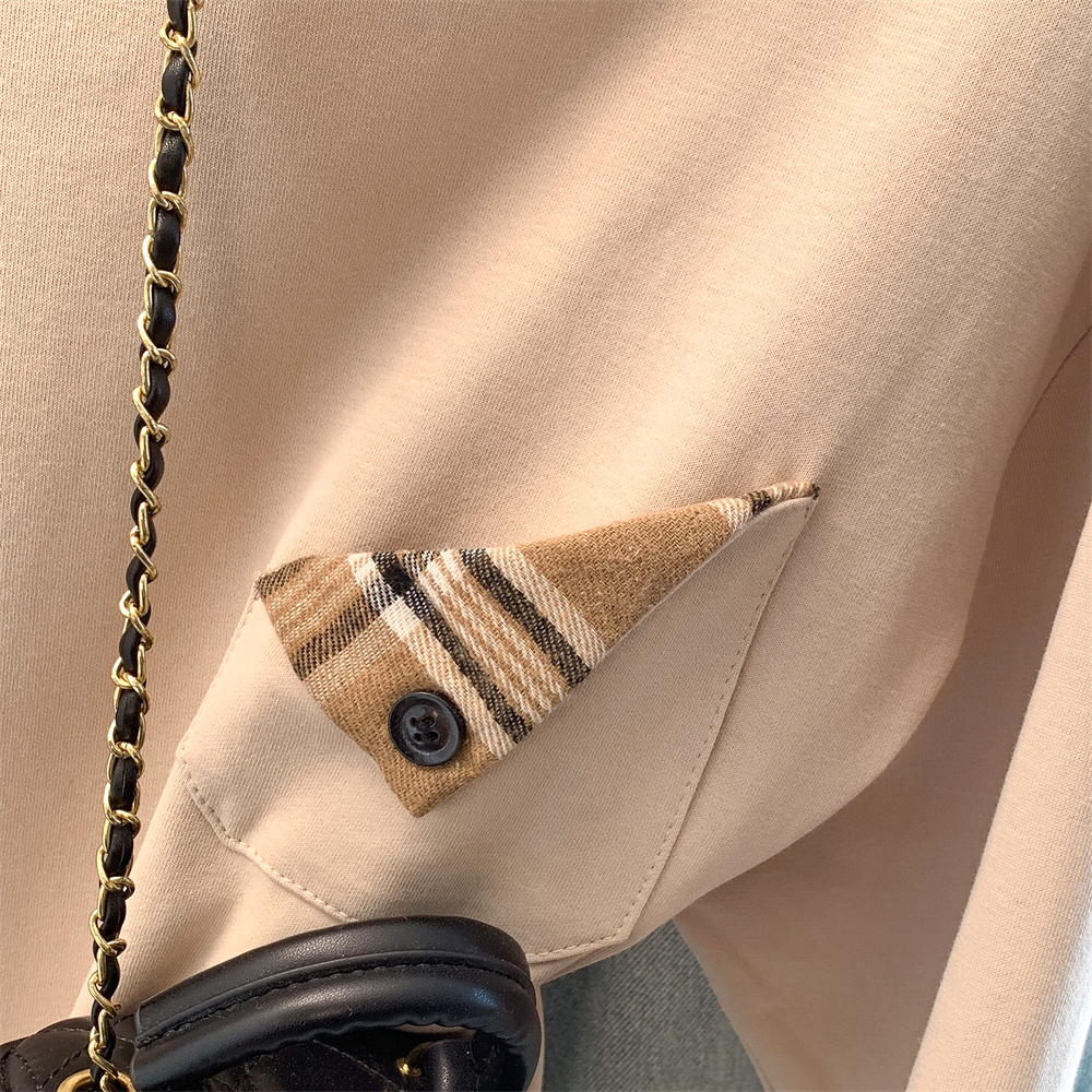 MY17435# 新款设计感洋气减龄格子拼接T恤宽松休闲百搭韩版卫衣女女裝貨源服裝批發