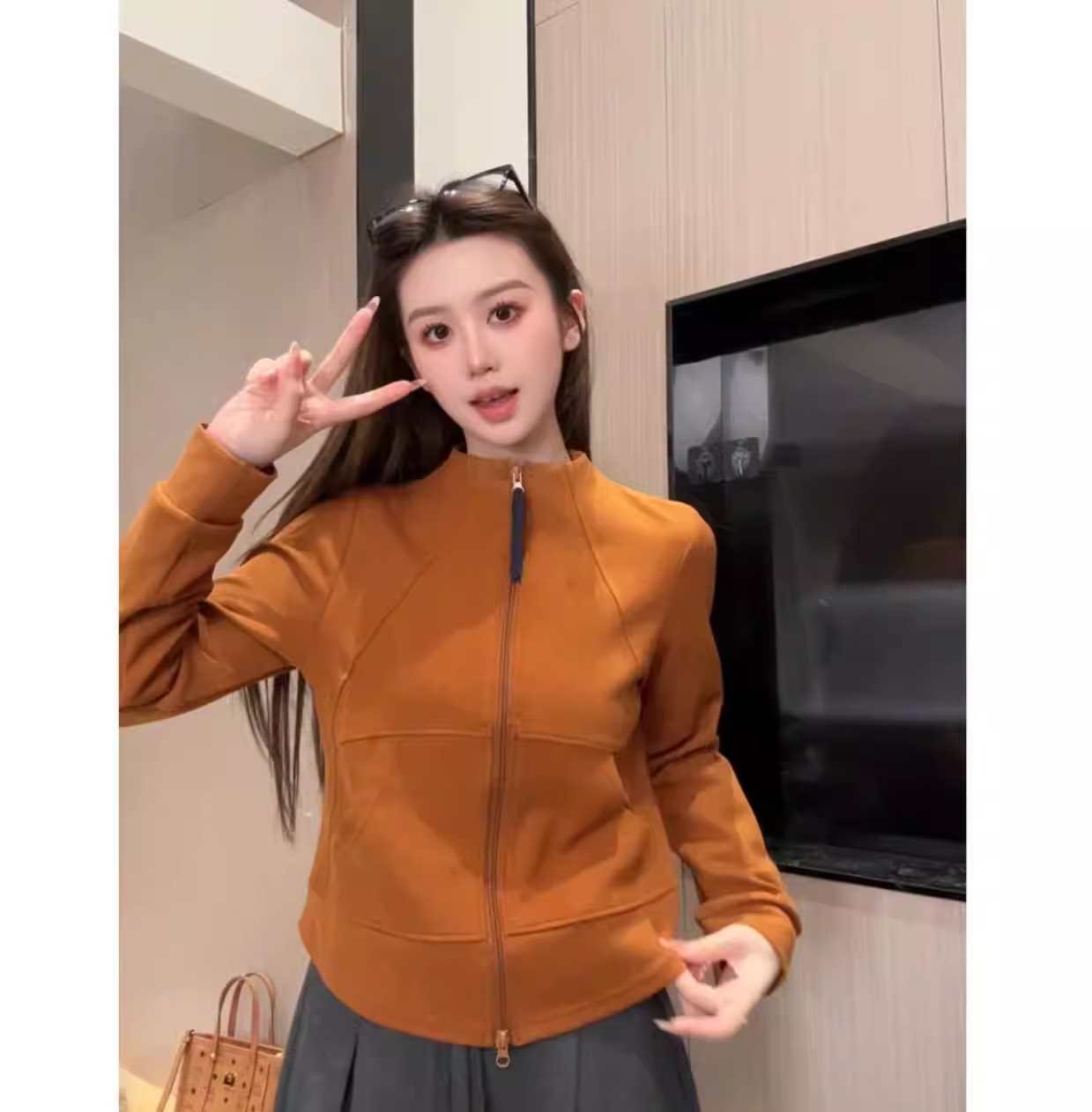 MY17445# 韩版双拉链立领短外套新款宽松显瘦休闲百搭高级感卫衣女裝貨源服裝批發