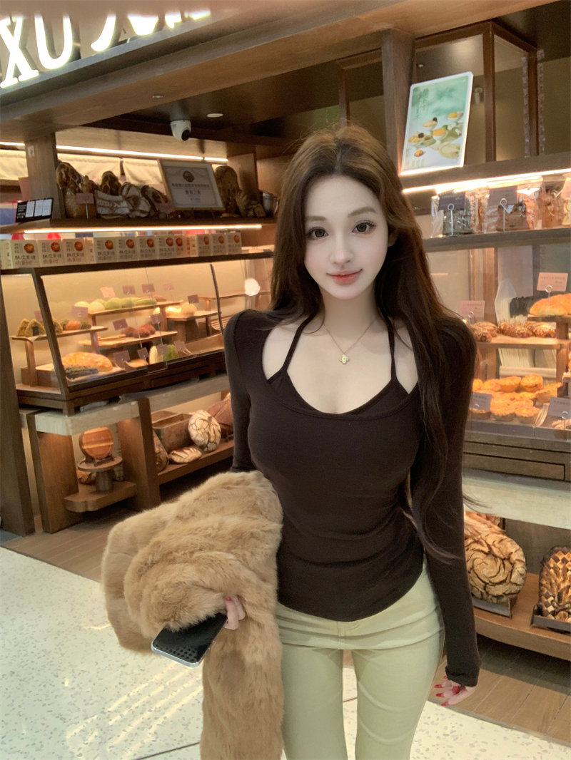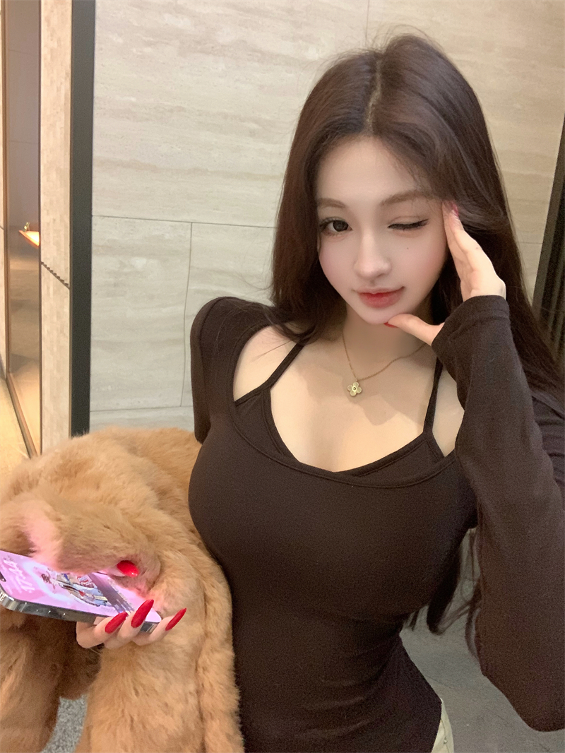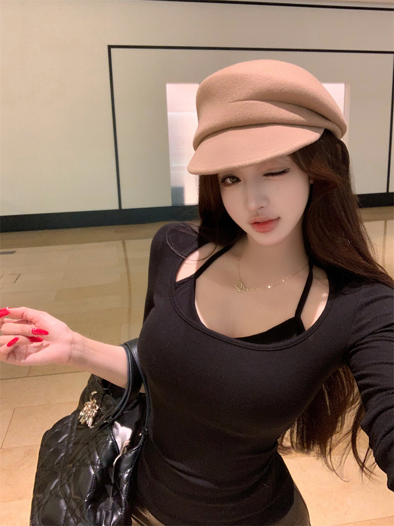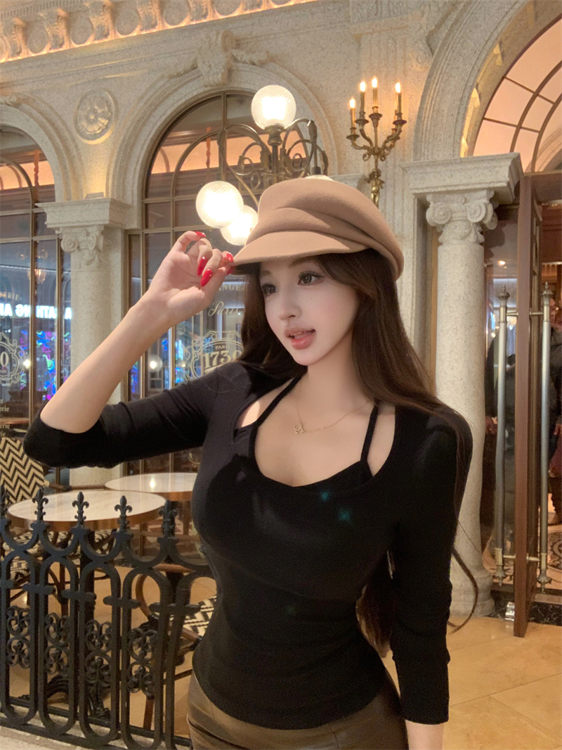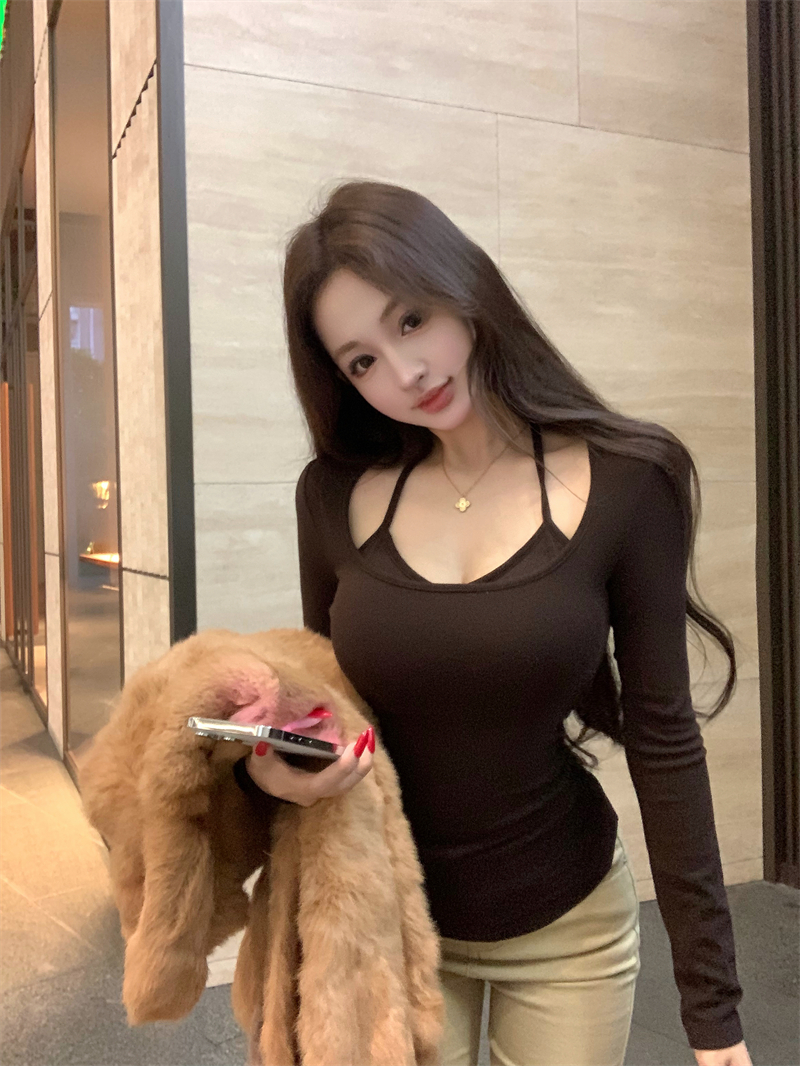 MY17461# 掐腰显瘦修身方领挂脖打底衫女裝貨源服裝批發