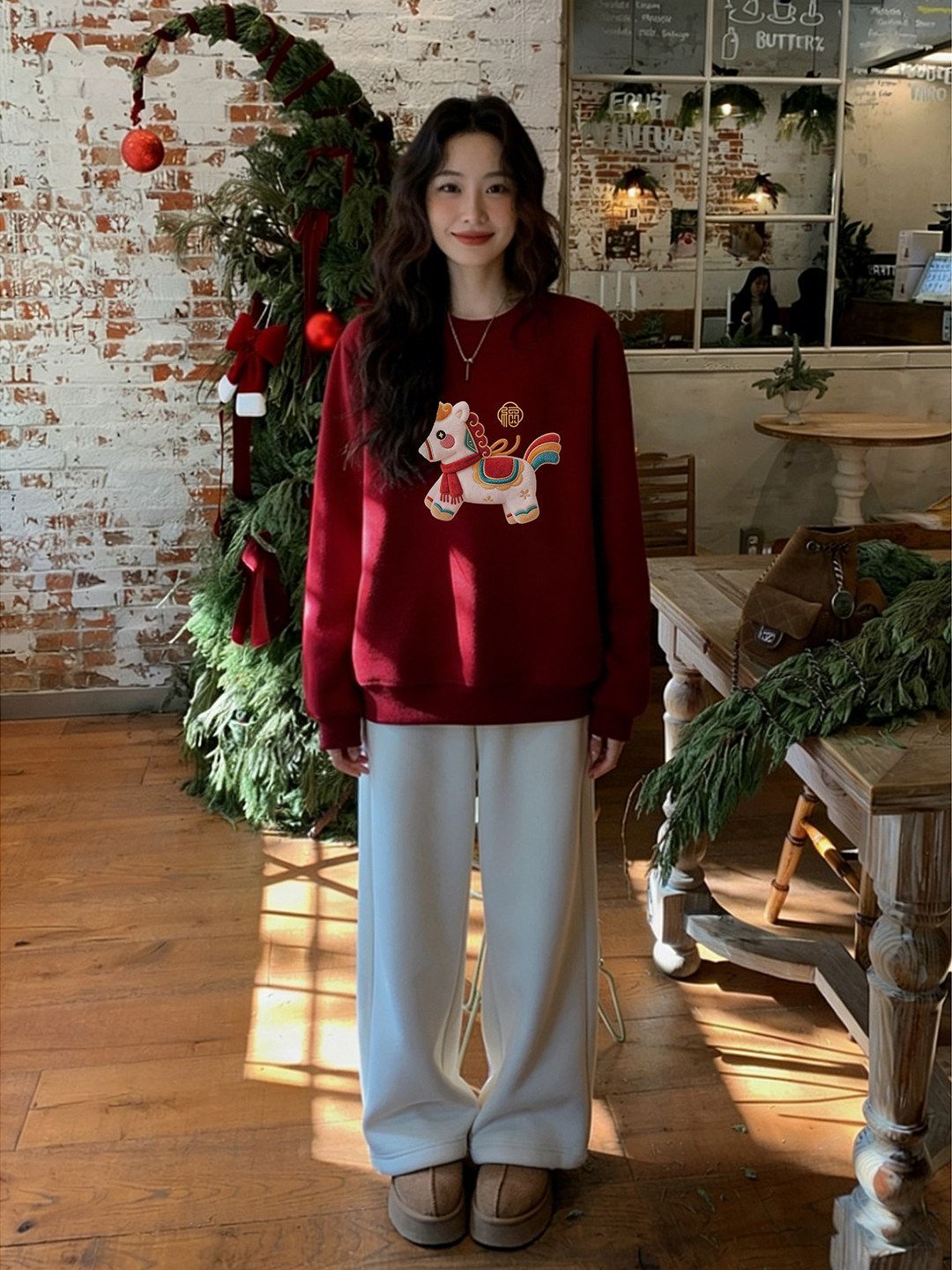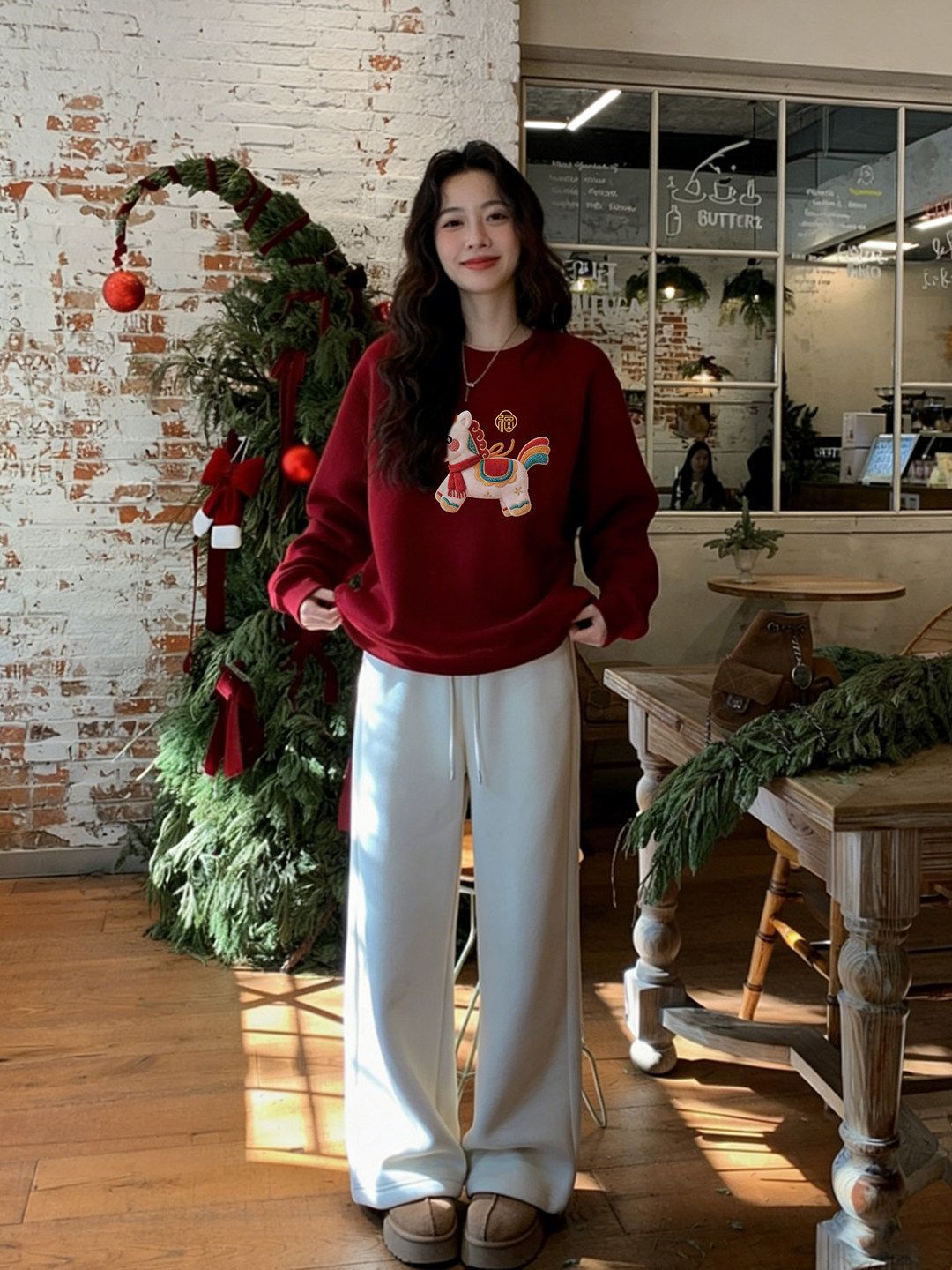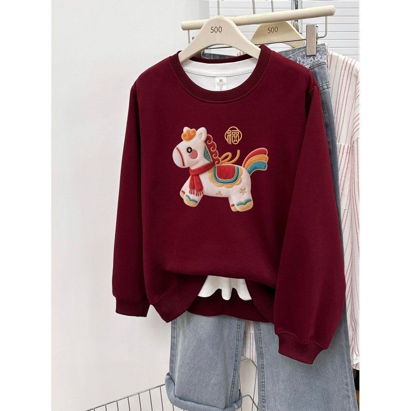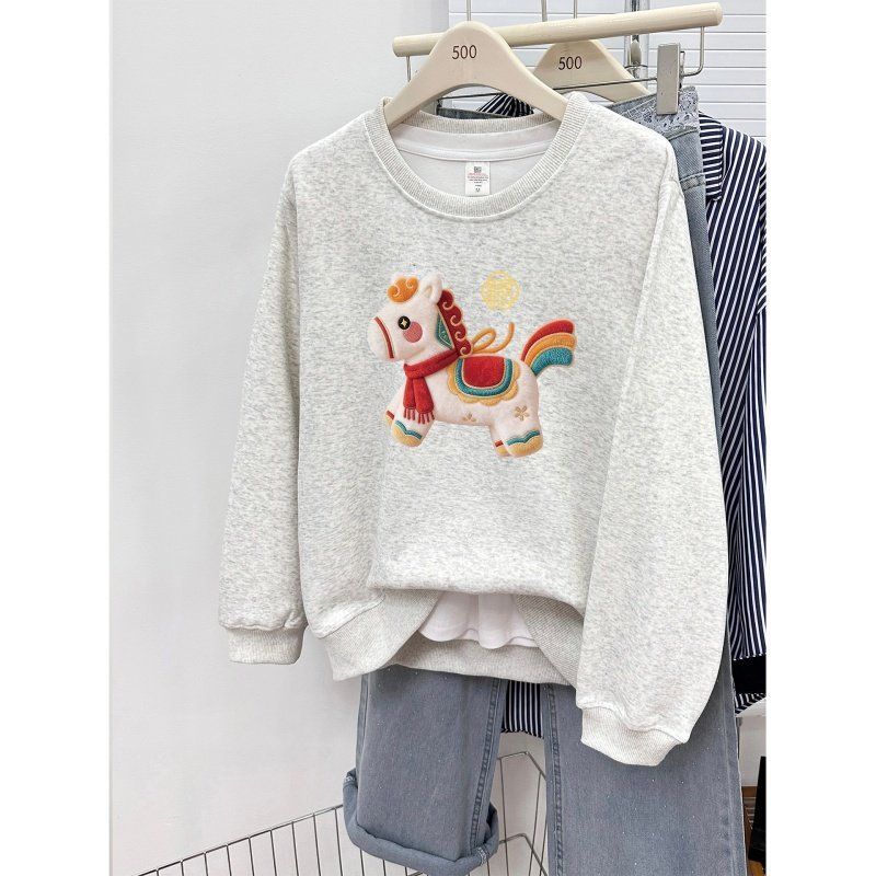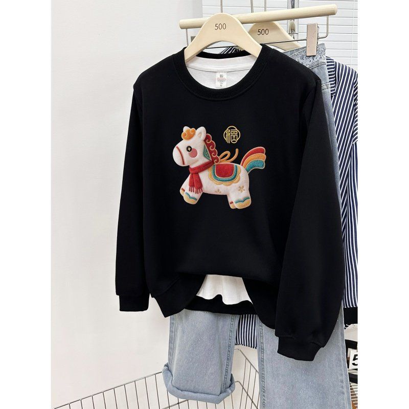 MY17473# 仿棉华棉 复合牛奶丝复合银狐绒印花情侣圆领卫衣女裝貨源服裝批發