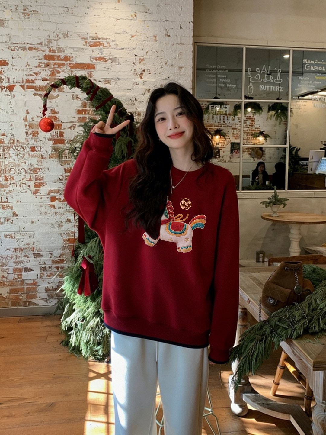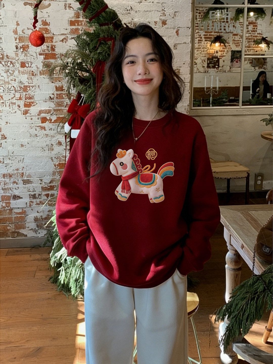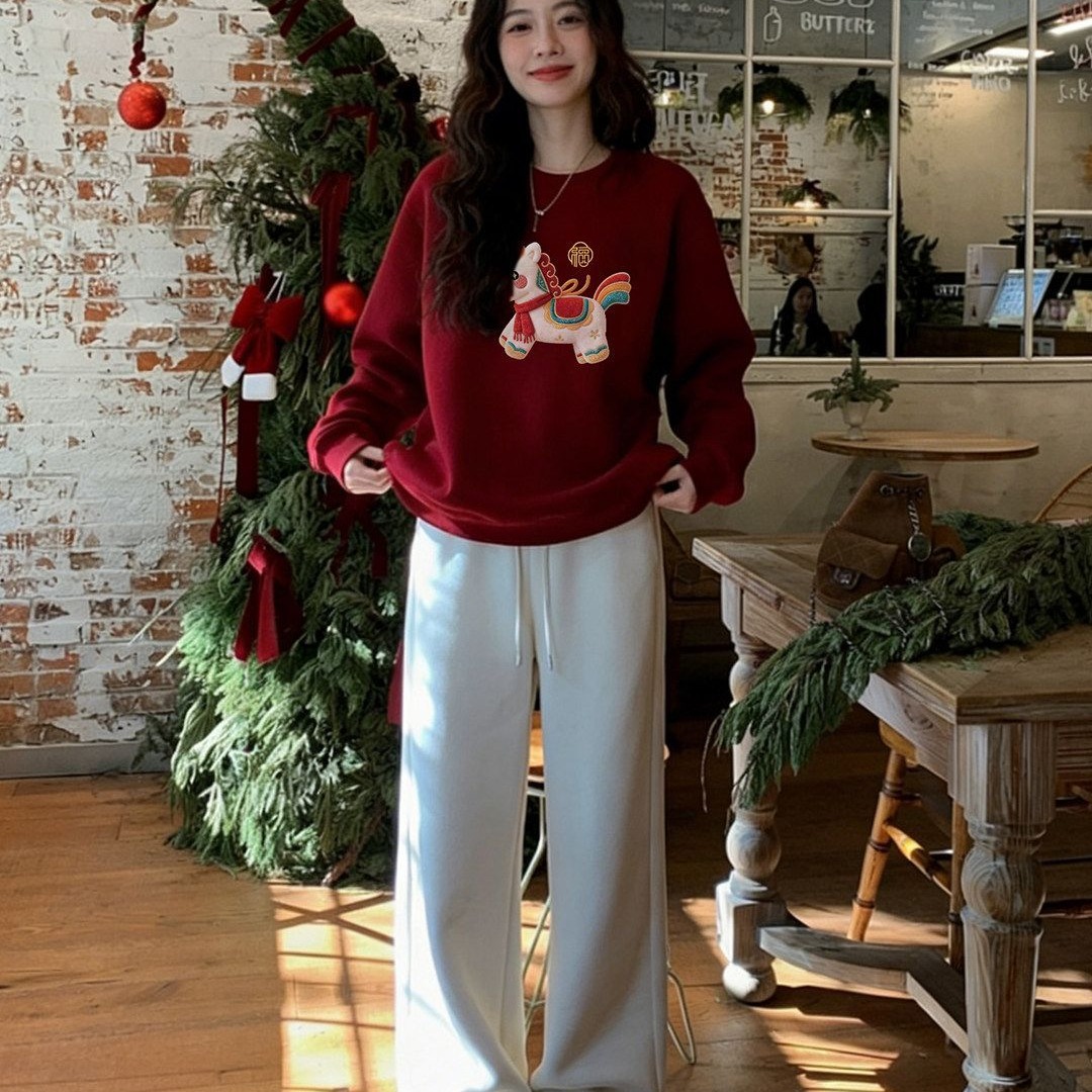 MY17473# 仿棉华棉 复合牛奶丝复合银狐绒印花情侣圆领卫衣女裝貨源服裝批發