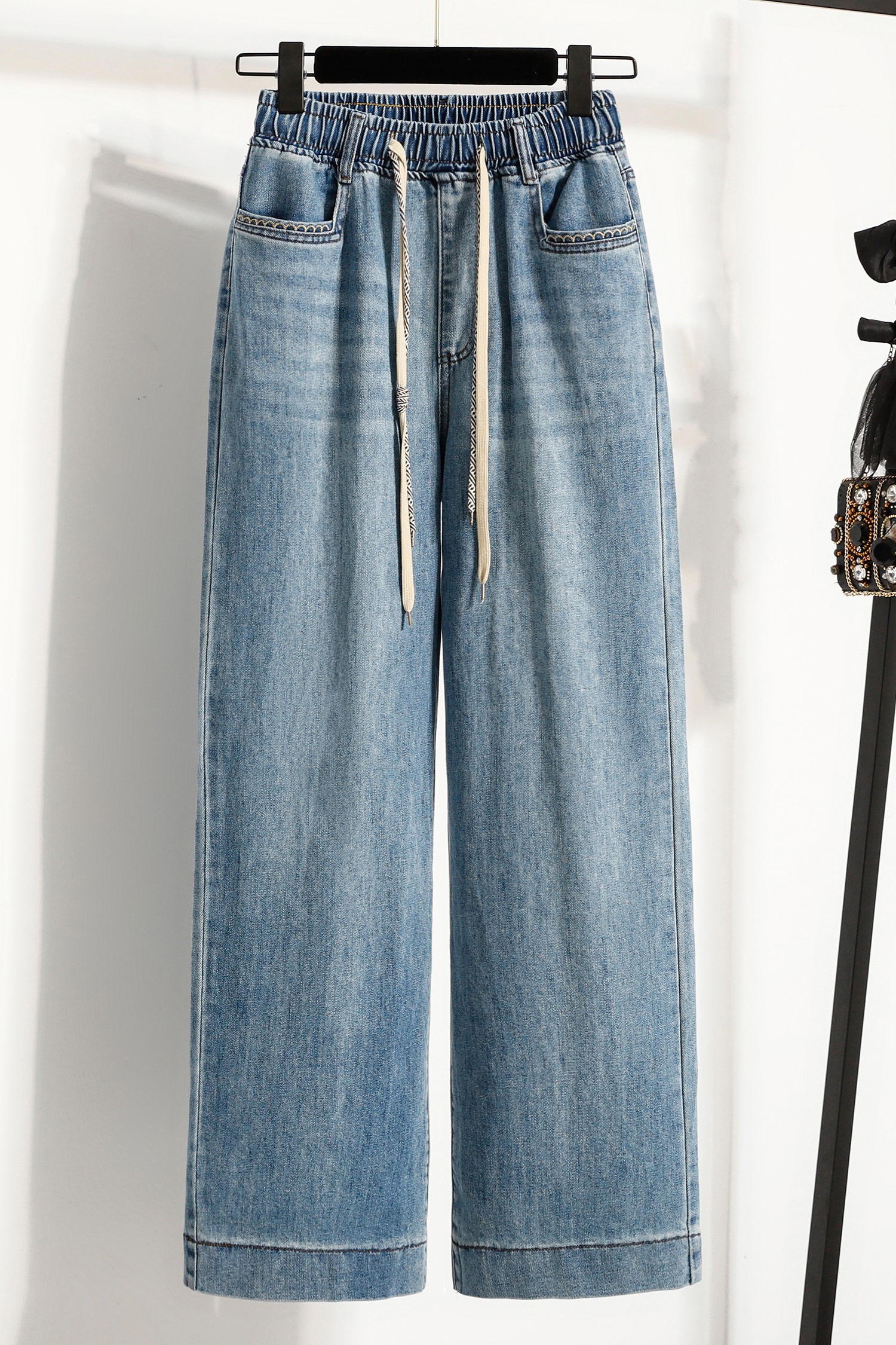 MY17496# 大码女装新款春夏微弹宽松显瘦直筒拖地牛仔裤女裝貨源服裝批發
