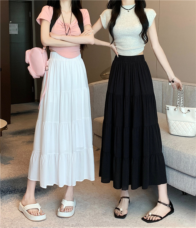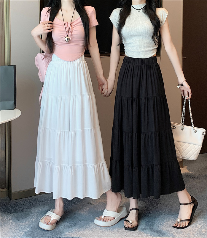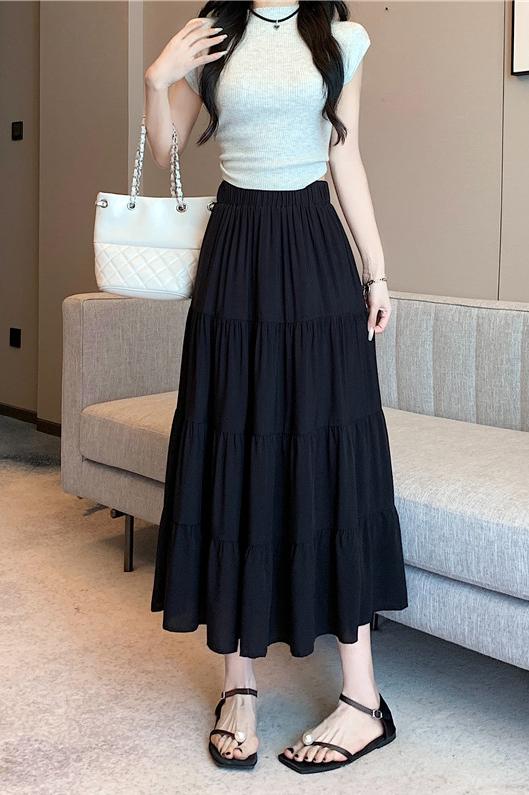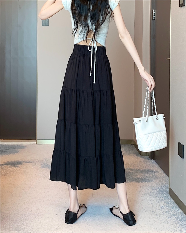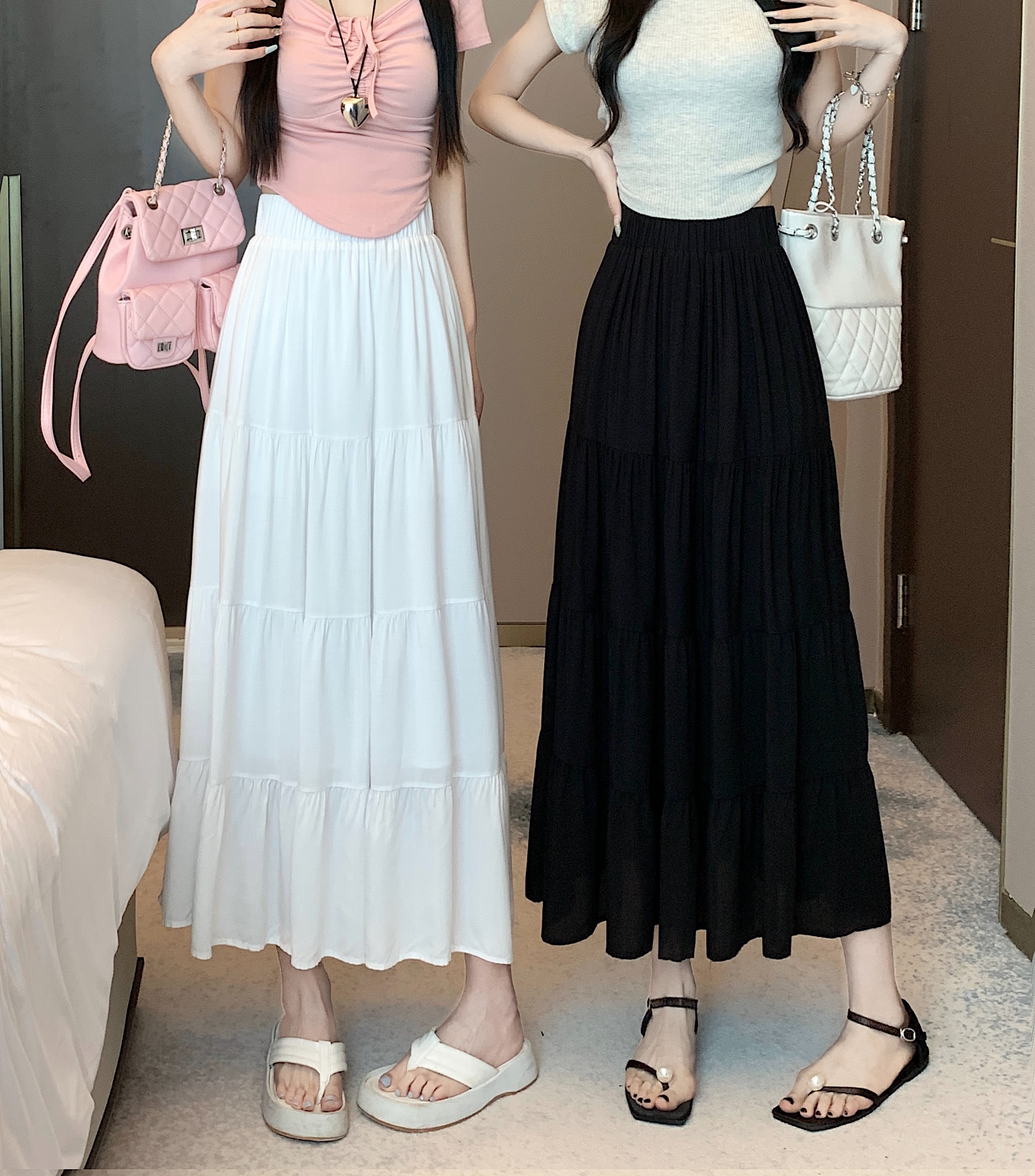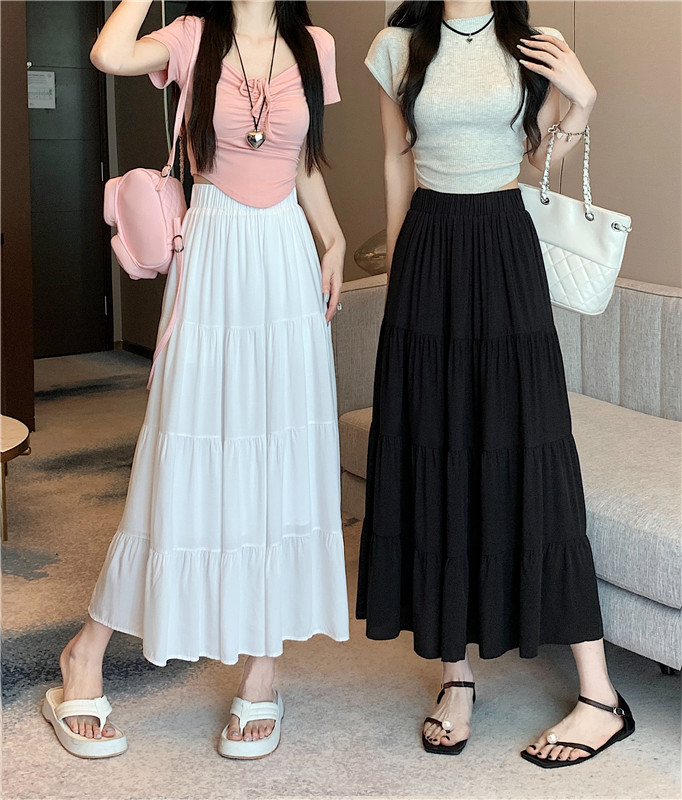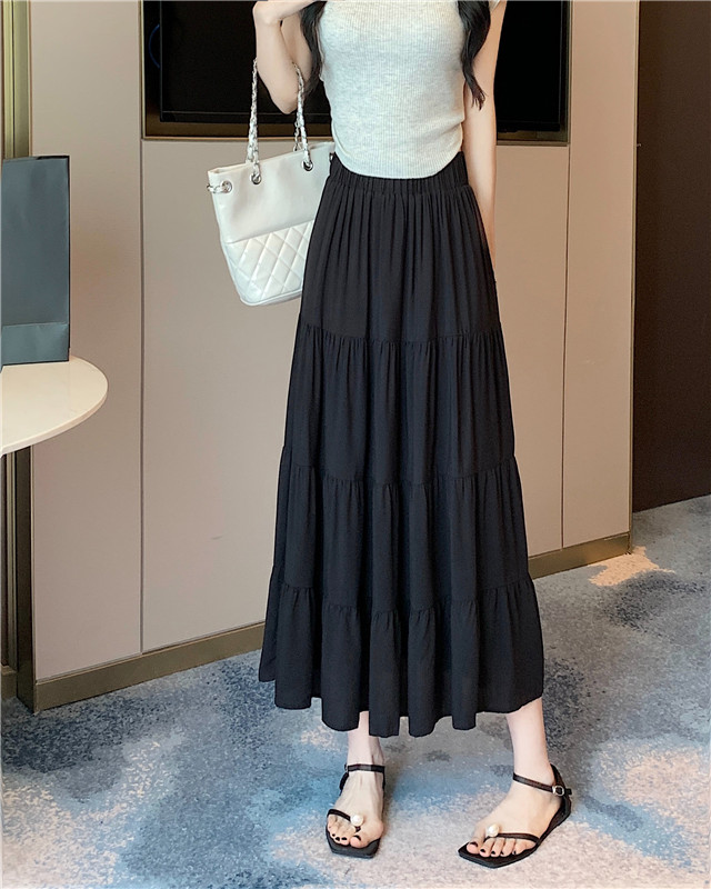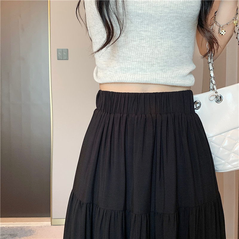 MY17500# 半身裙女韩版a字裙高腰显瘦拼接蛋糕裙百搭中长款裙子女裝貨源服裝批發
