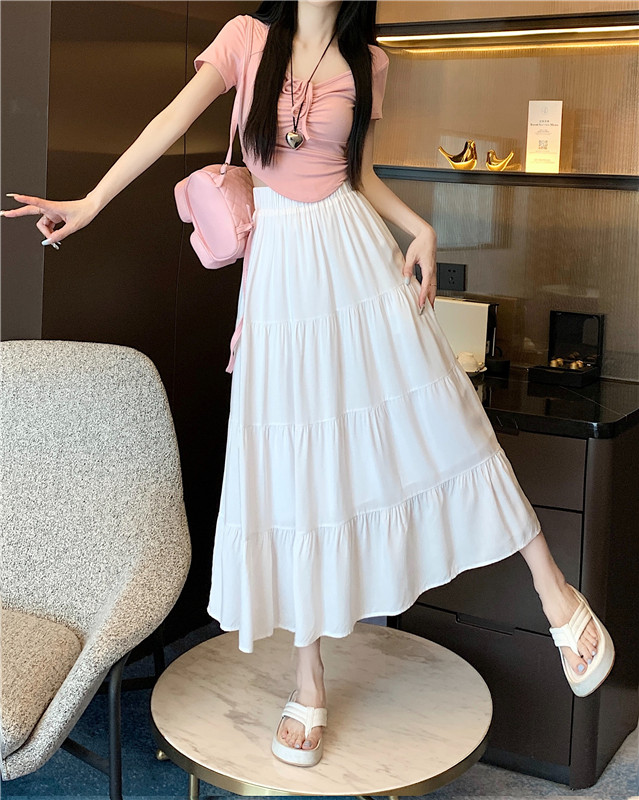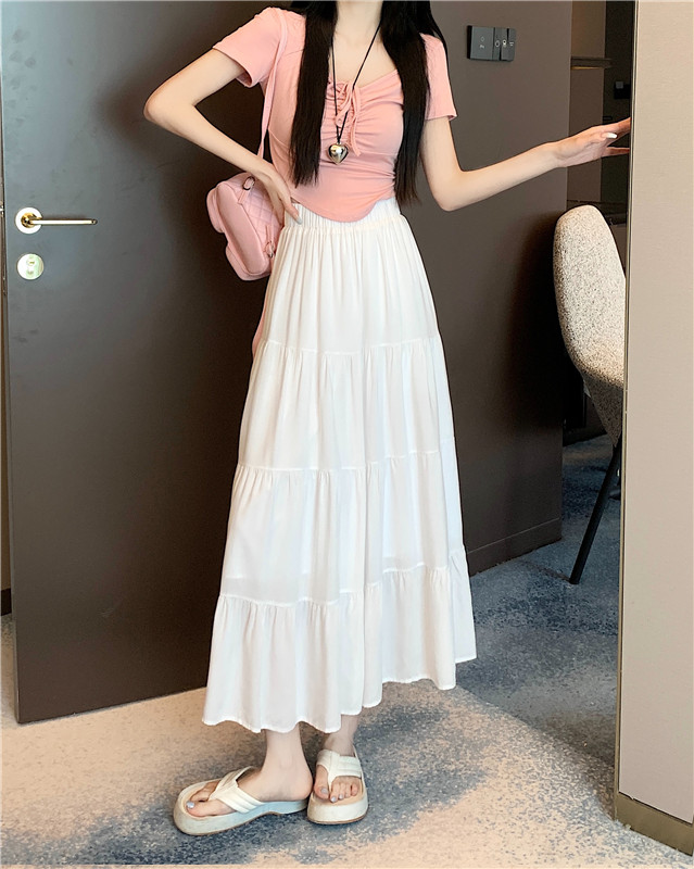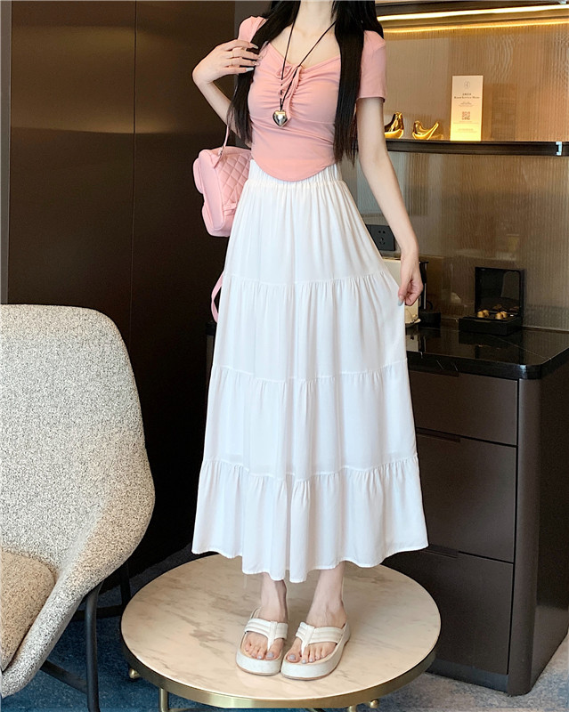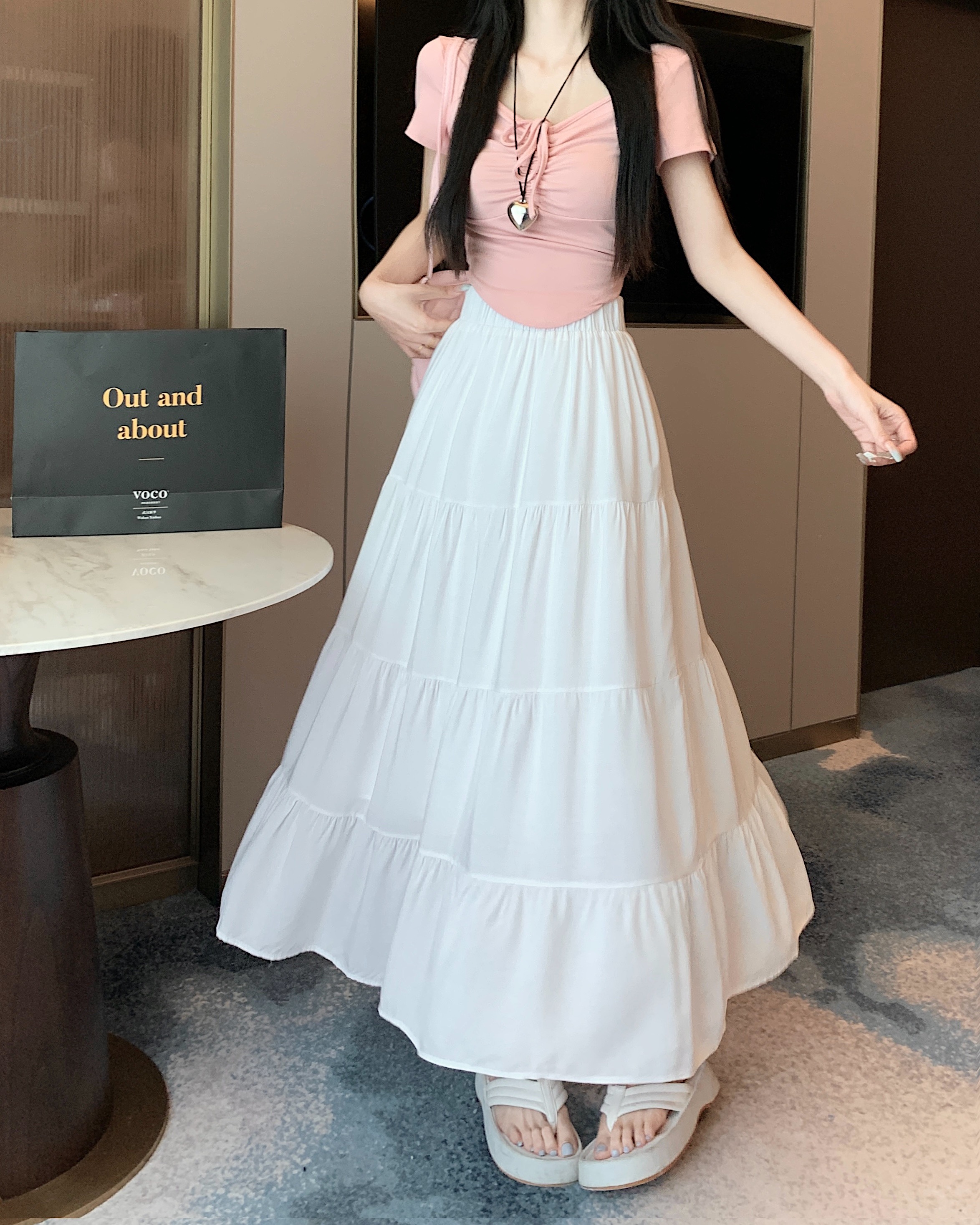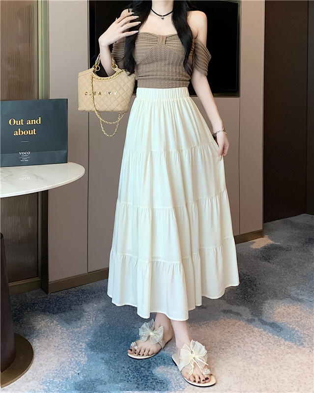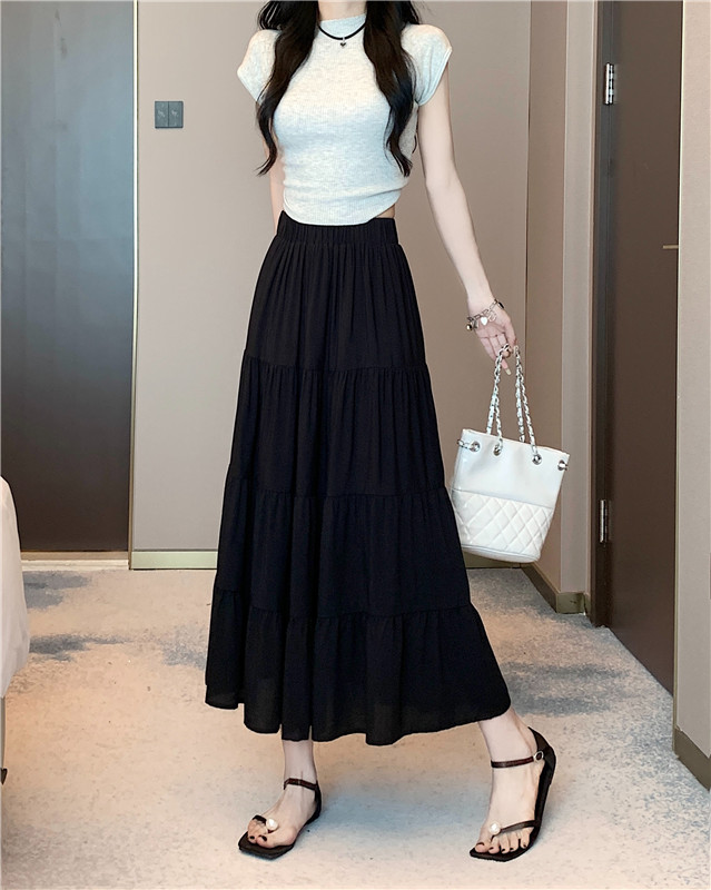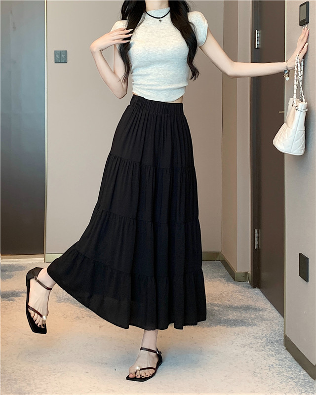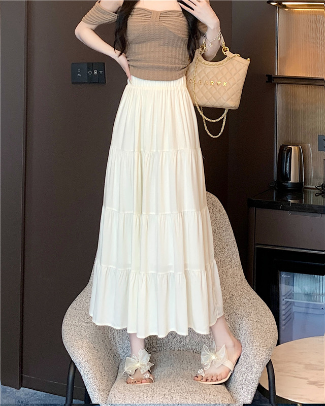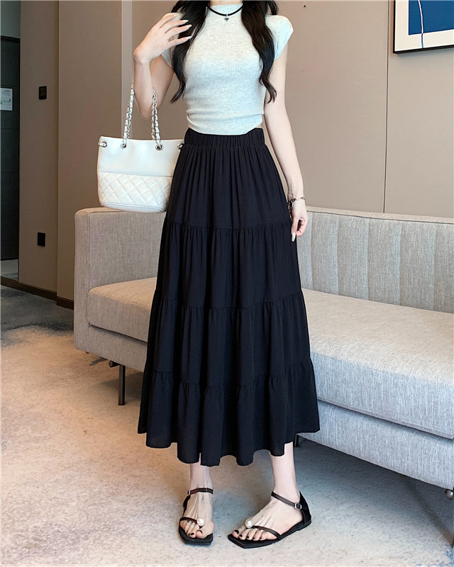 MY17500# 半身裙女韩版a字裙高腰显瘦拼接蛋糕裙百搭中长款裙子女裝貨源服裝批發