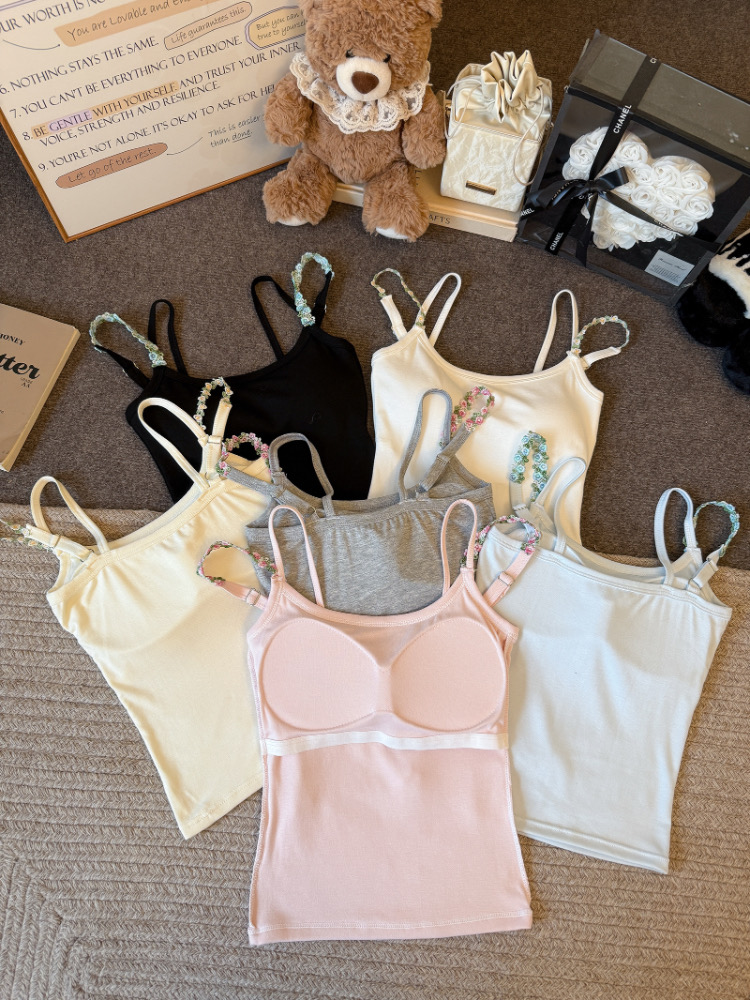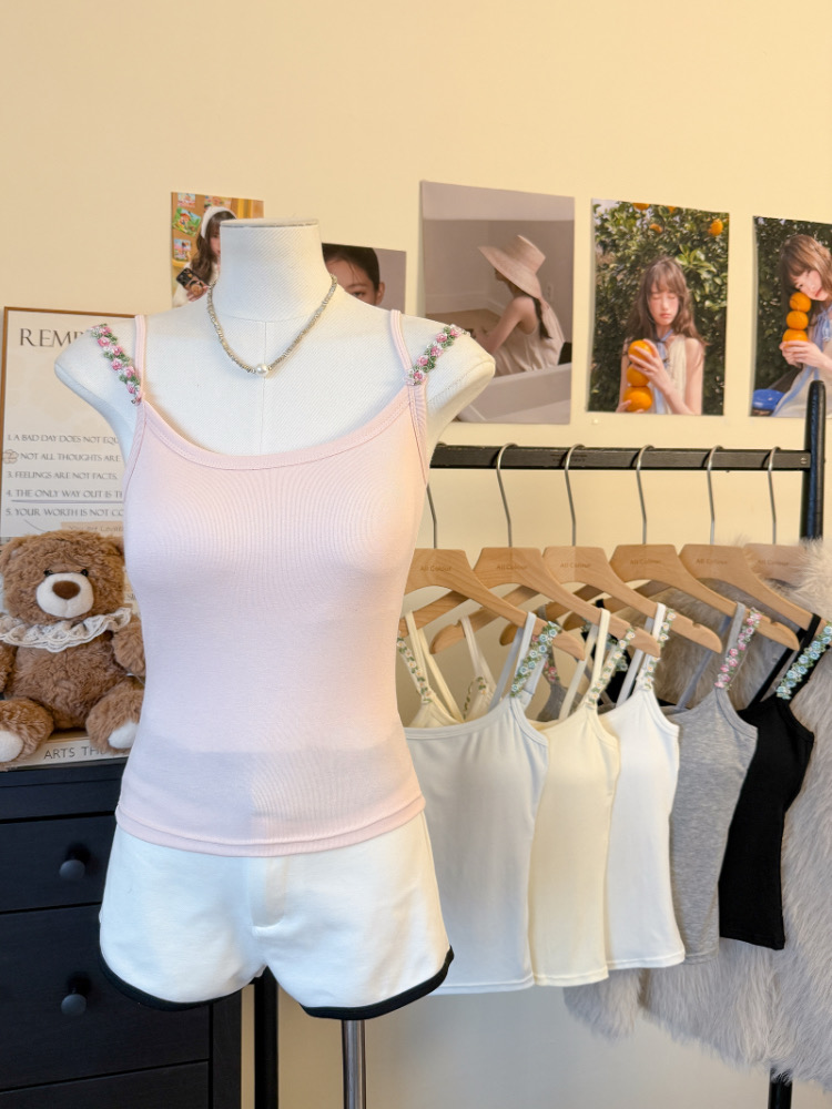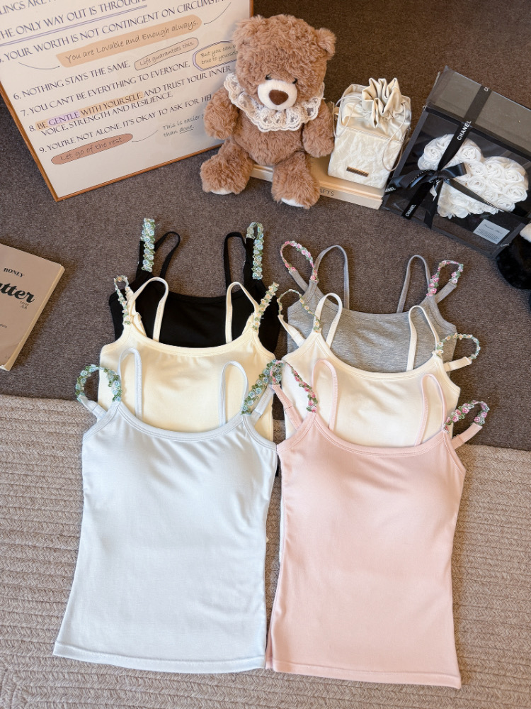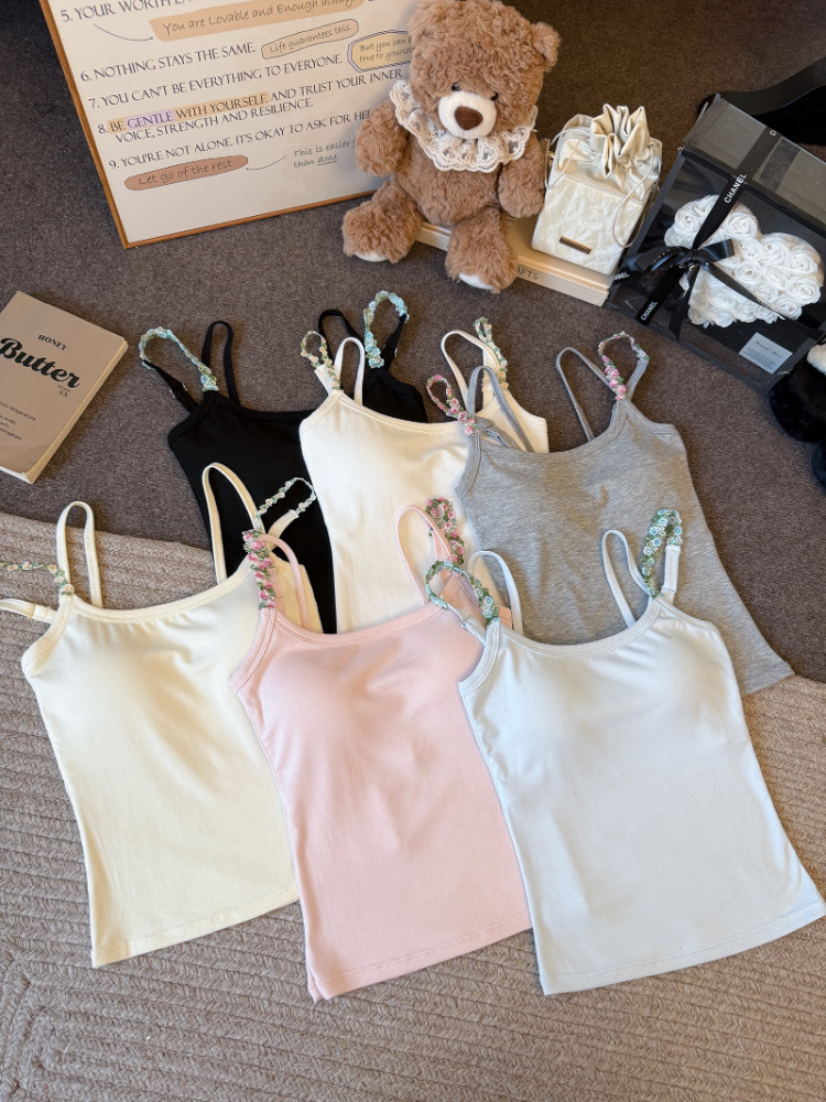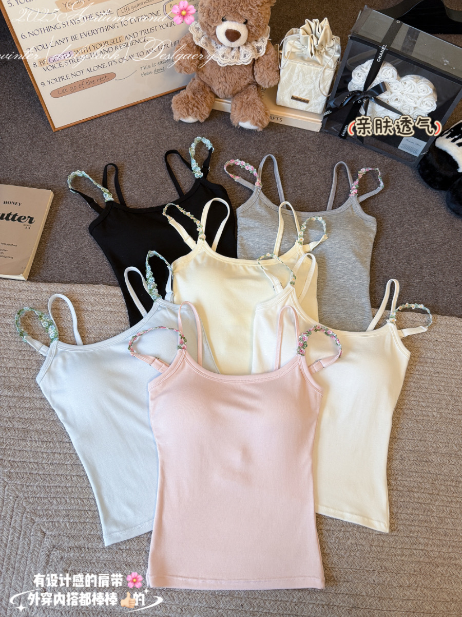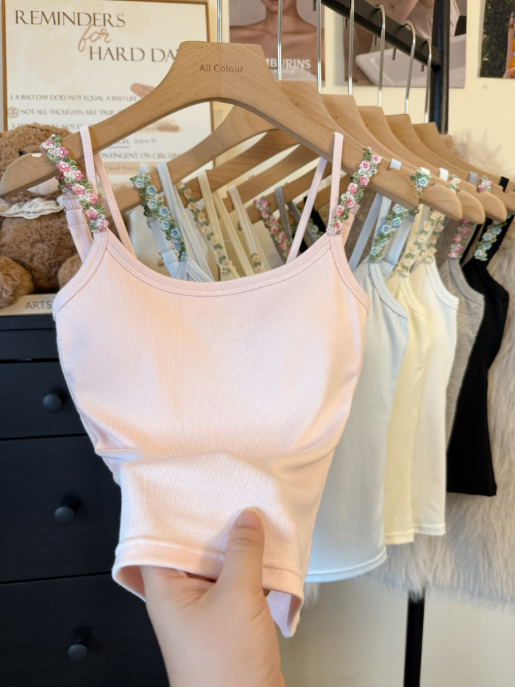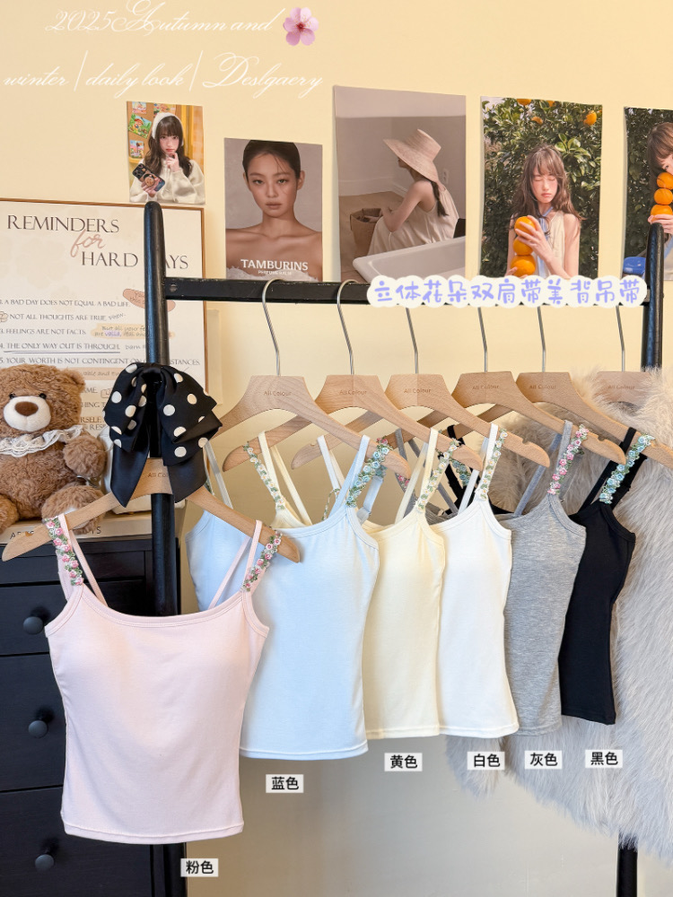 MY17501# 甜美花朵双肩带修身背心早带胸垫打底吊带上衣女裝貨源服裝批發