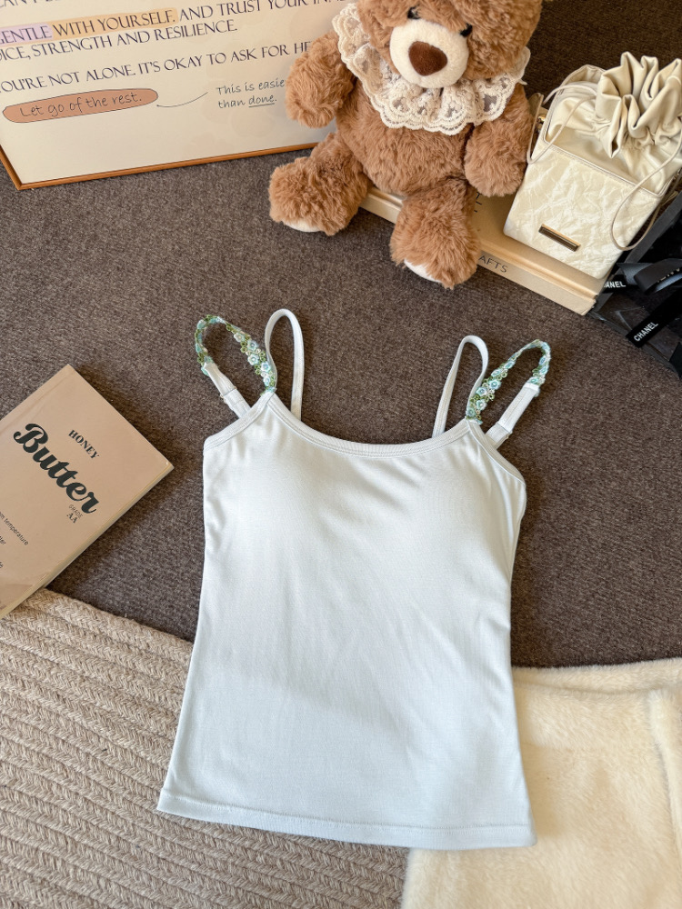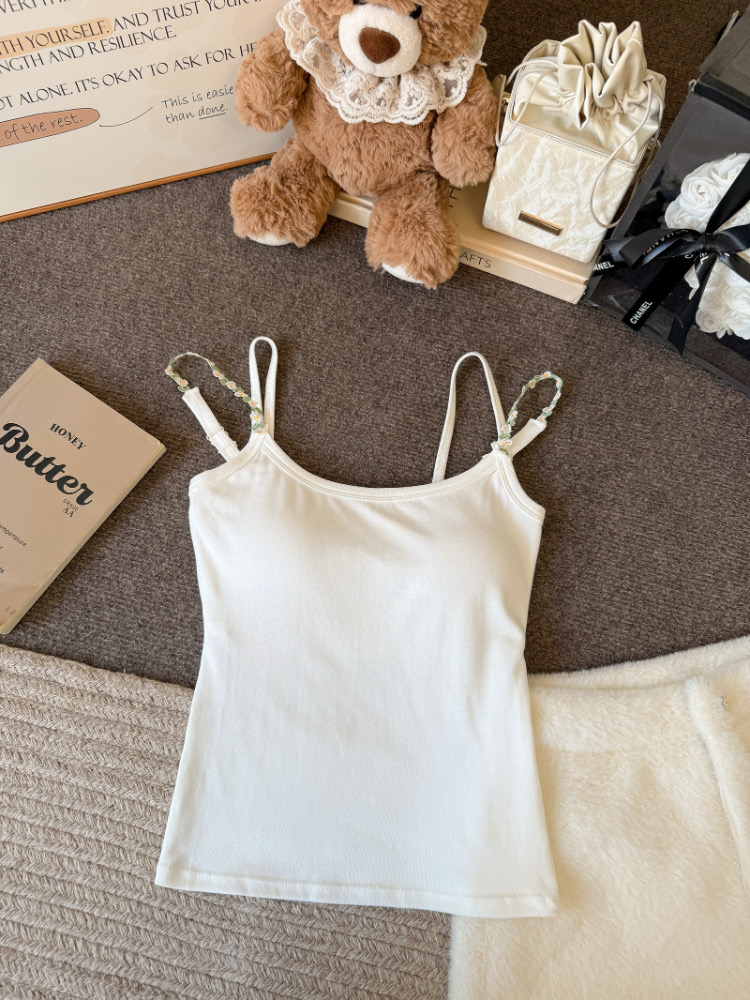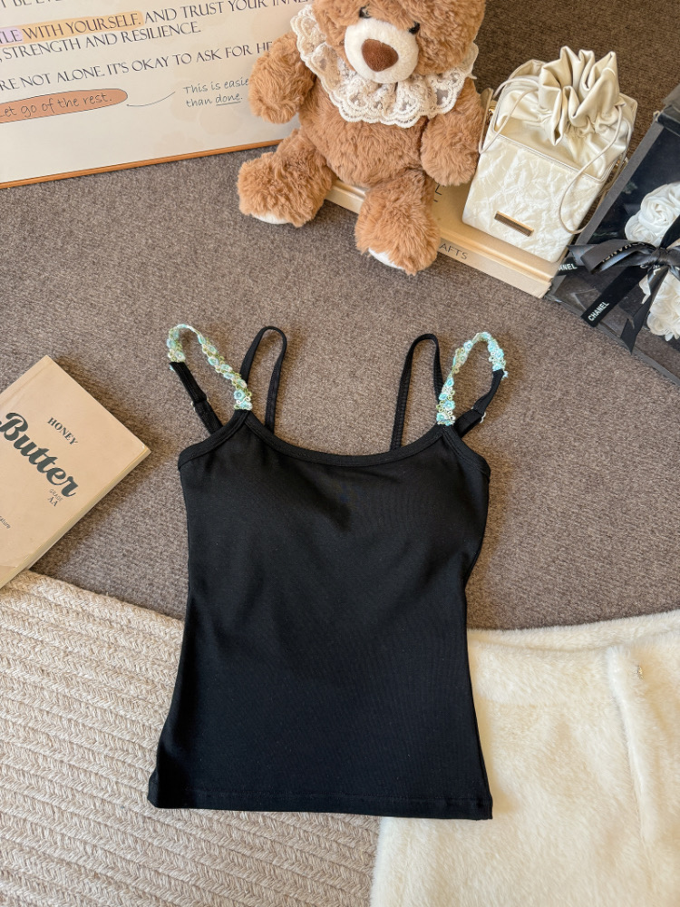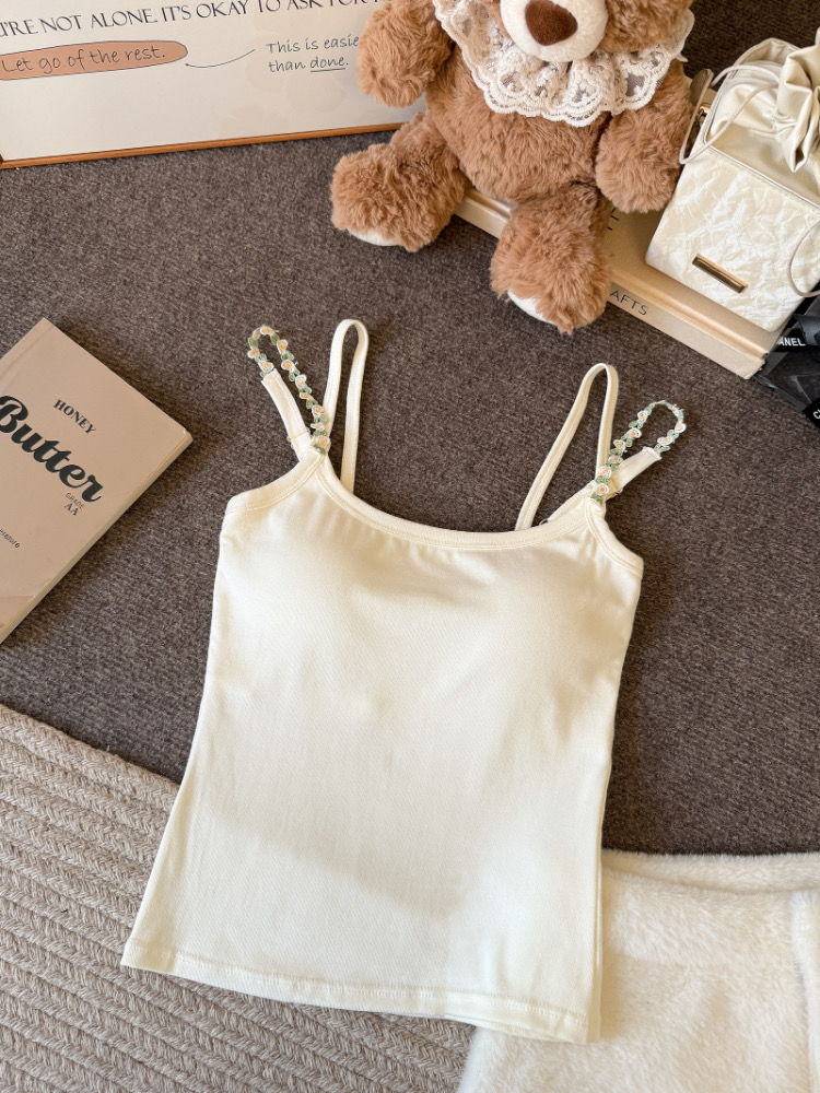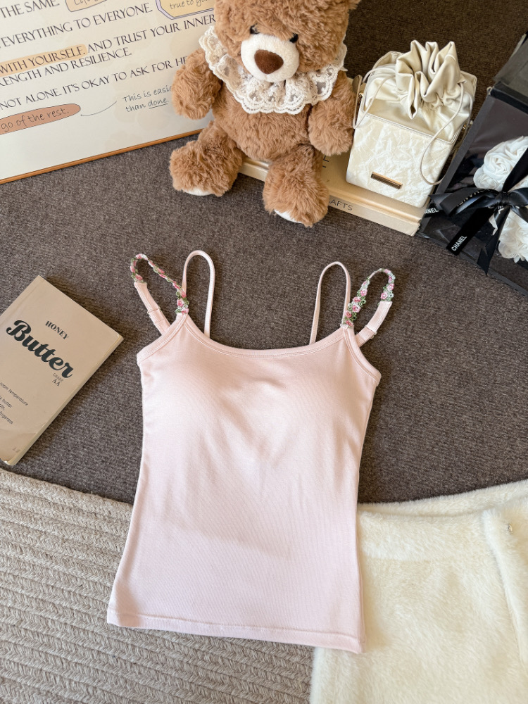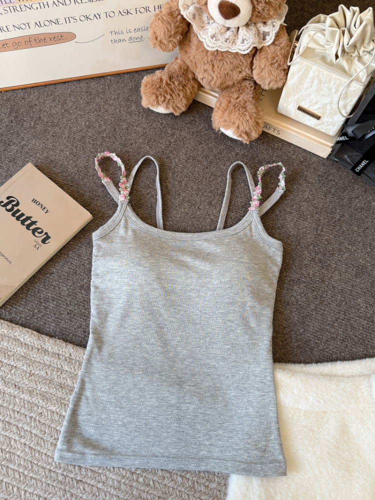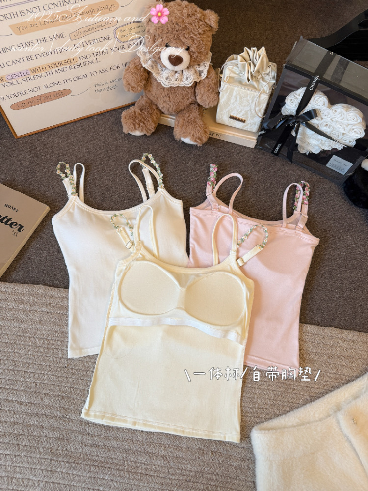 MY17501# 甜美花朵双肩带修身背心早带胸垫打底吊带上衣女裝貨源服裝批發