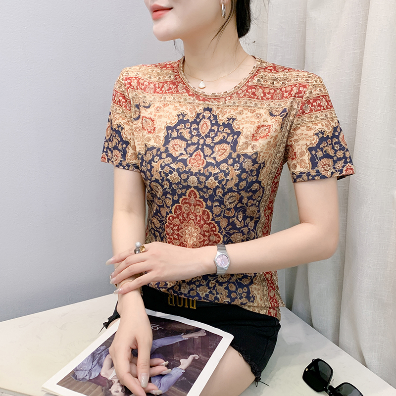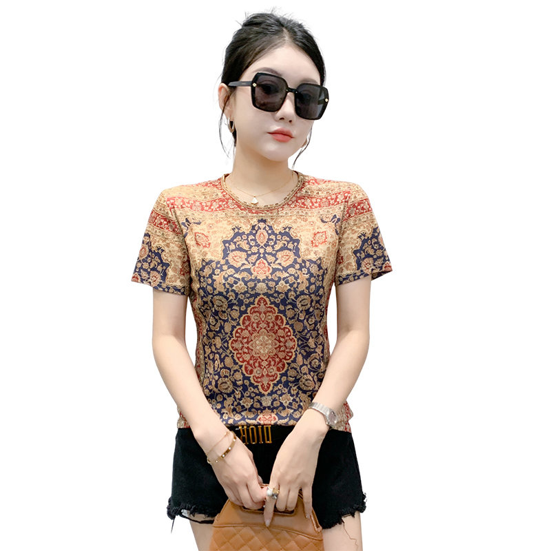MY17503# 新款时尚卡通定位印花短袖T恤打底衫修身上衣女女裝貨源服裝批發